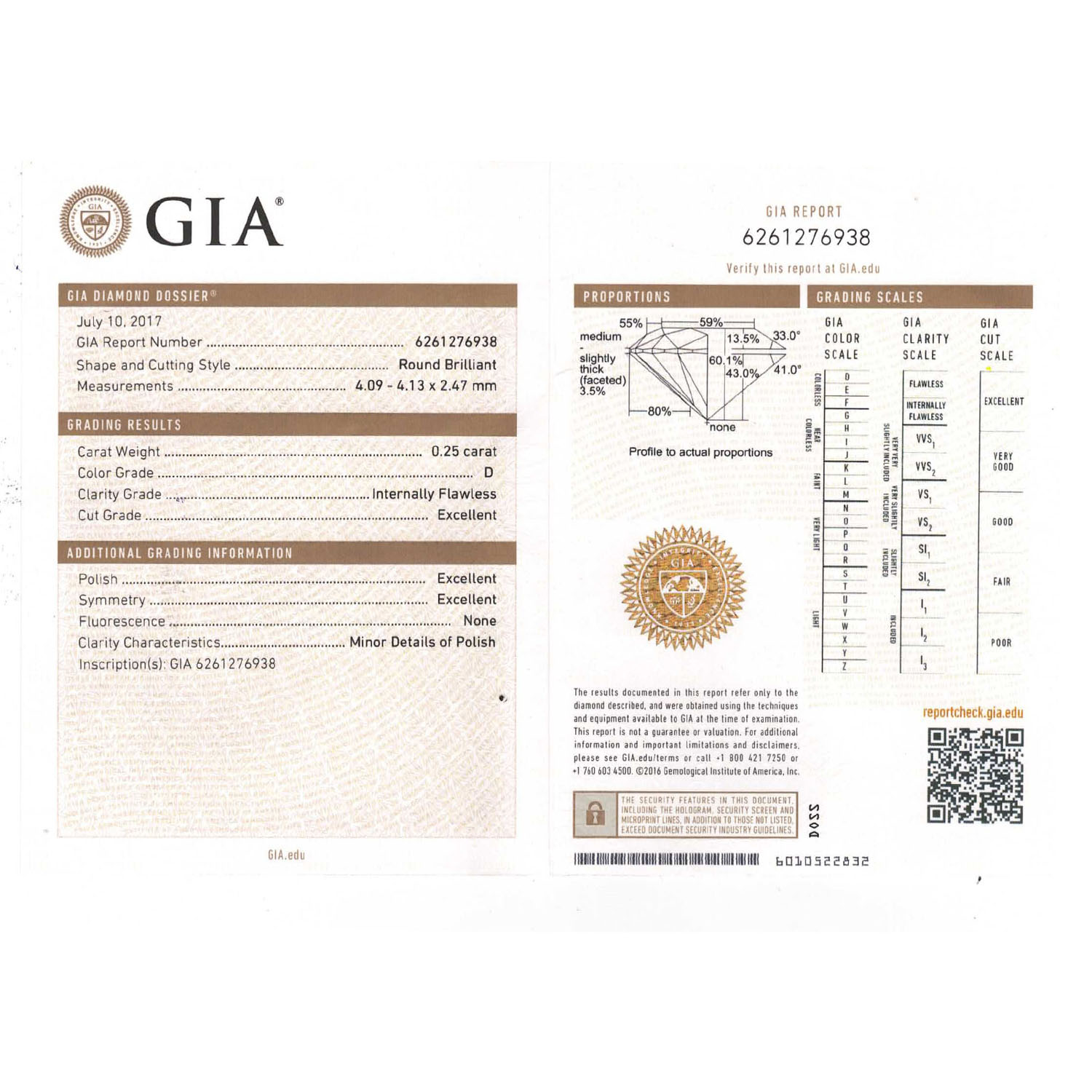 Loose brillant cut diamond 0.25 ct, EW (D)/IF, proportions: excellent, symmetry: excellent, cut: excellent, fluorescence: none, GIA certificate 6261276938 from 07/2017 included.