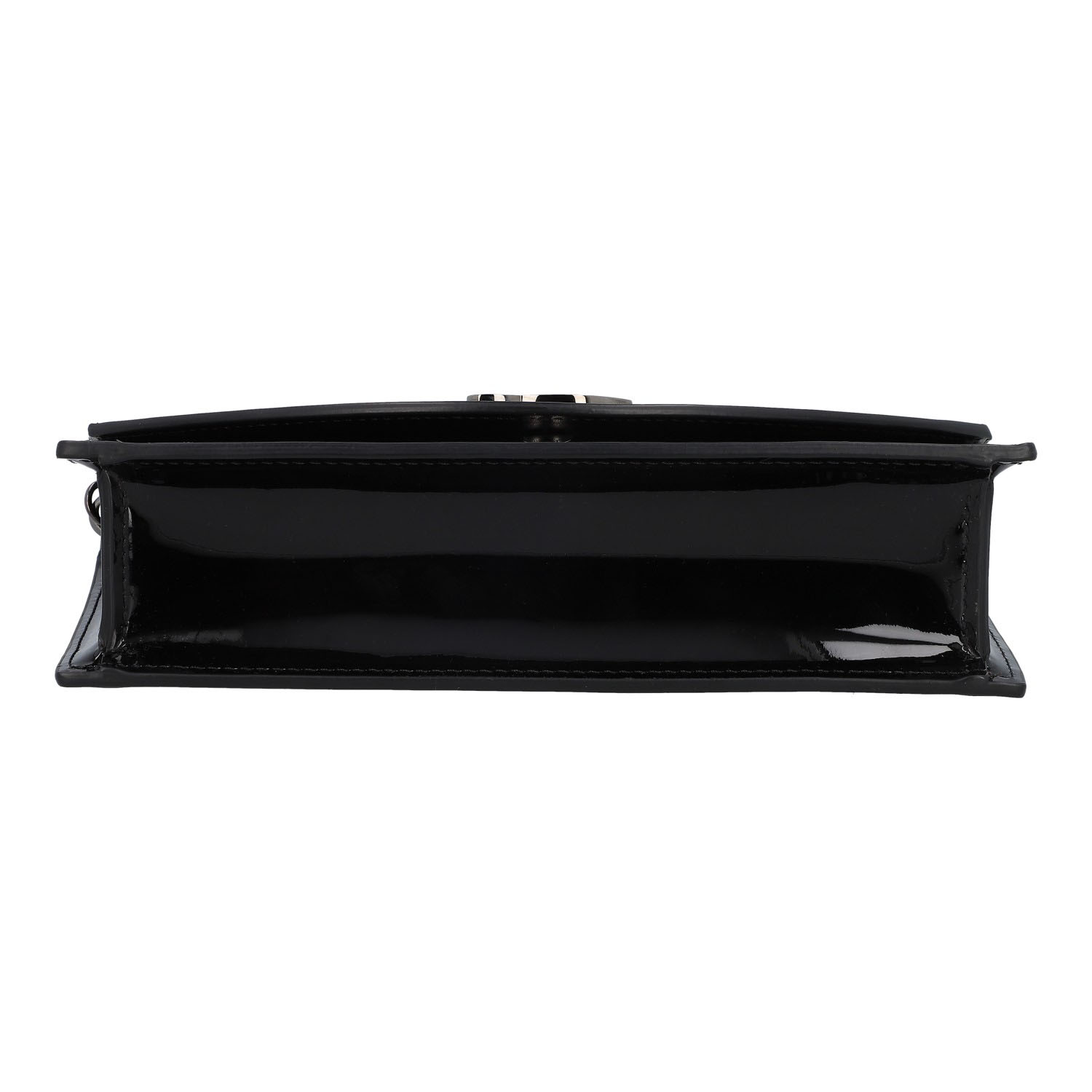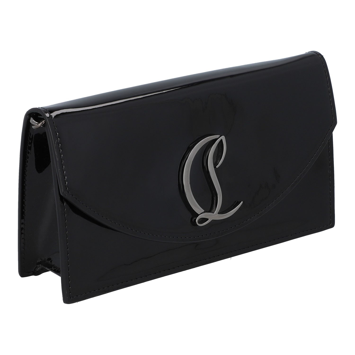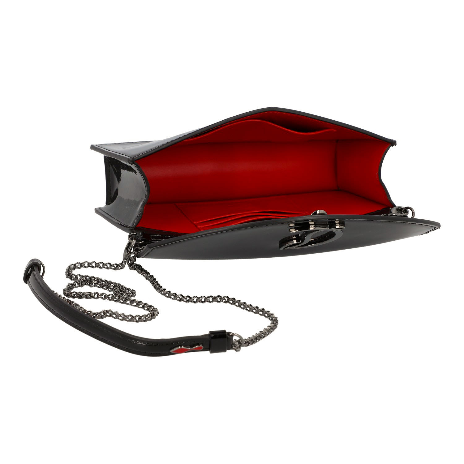 LOUBOUTIN shoulder bag 'LOUBI54', retail price: 1.190,-€. Black patent calfskin leather with dark grey hardware, logo on the flap, magnetic closure and removable chain strap with leather insert. Red interior with four compartments. Dust bag included. Signs of wear.