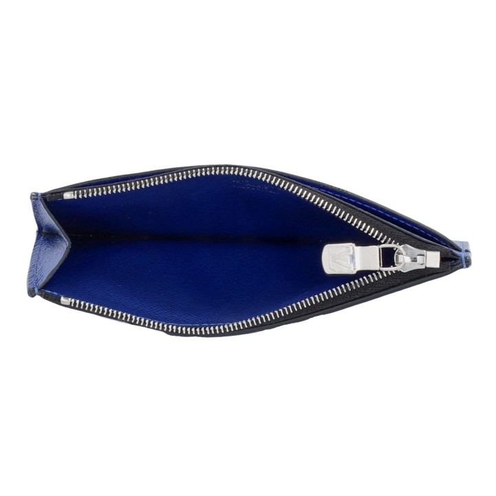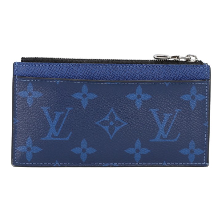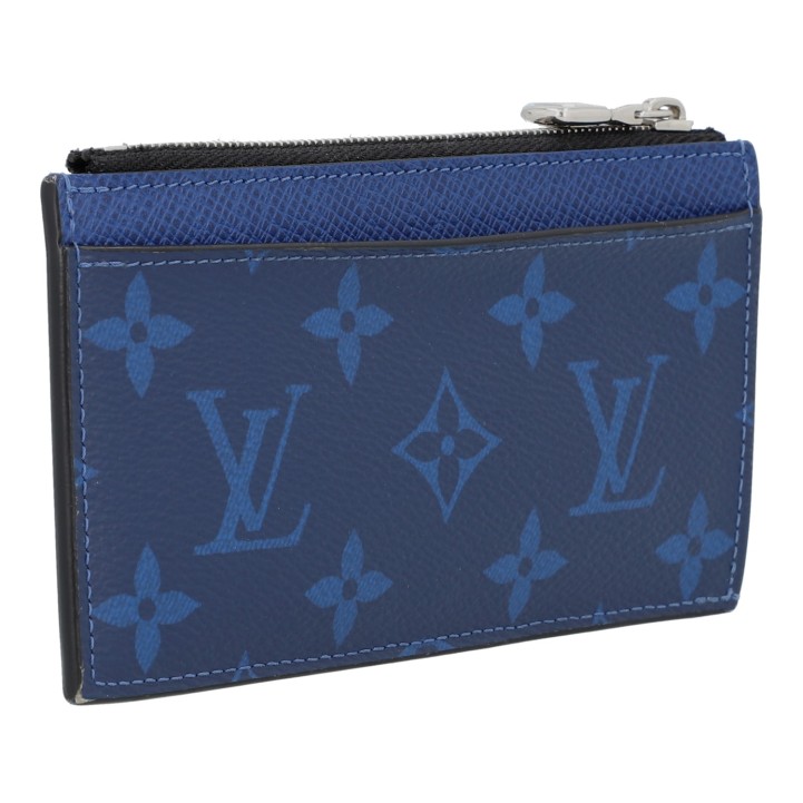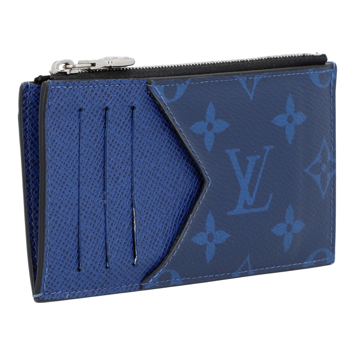 LOUIS VUITTON card case. Taigarama leather series in blue. Five card slots and one coin compartment with zip fastening. Box included. Signs of wear present.