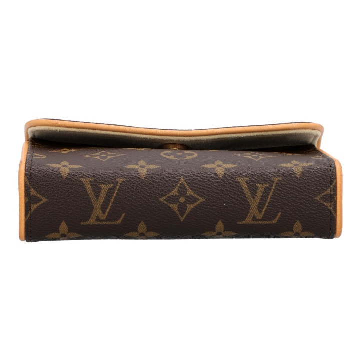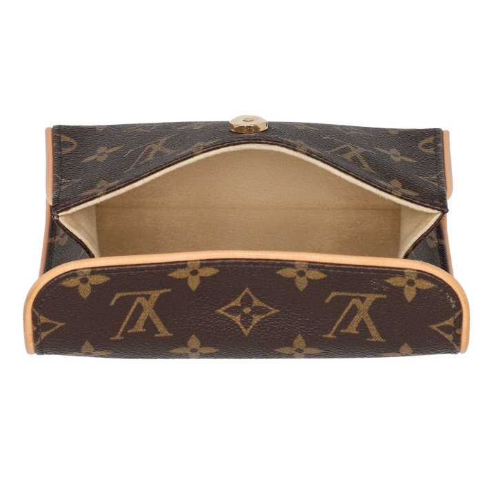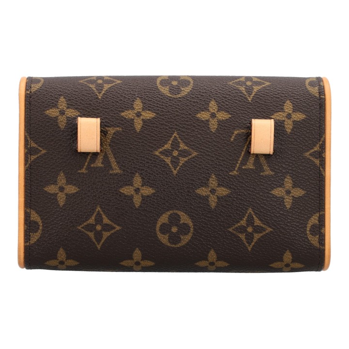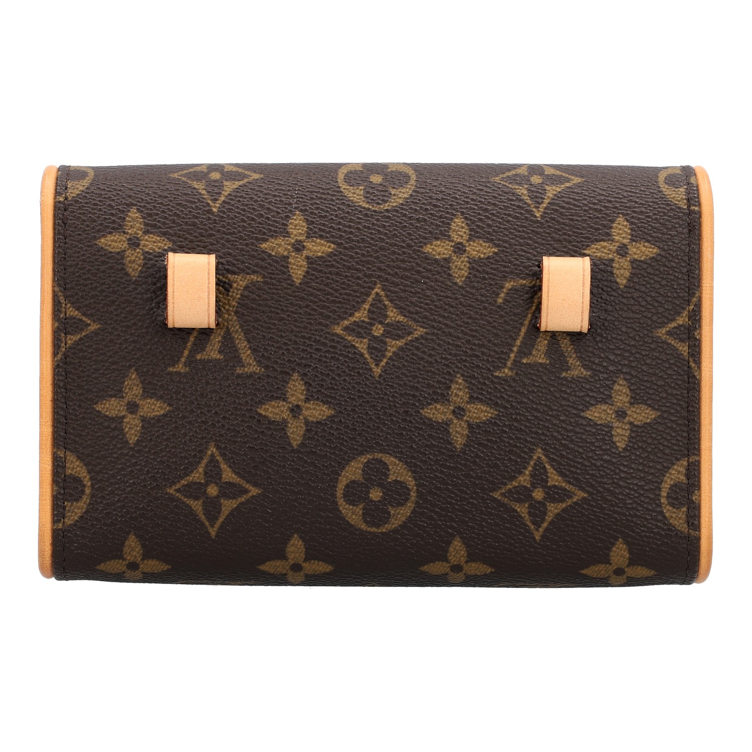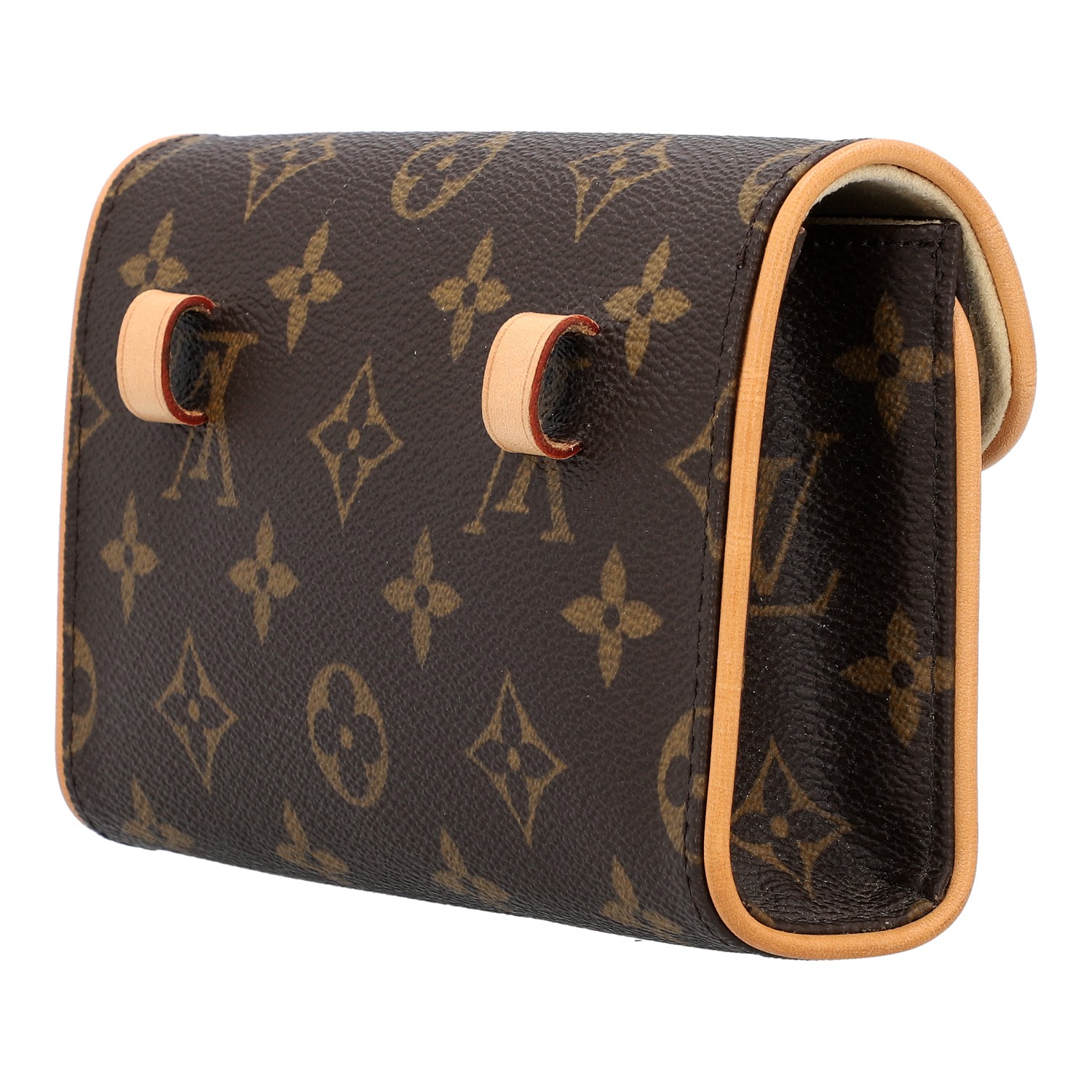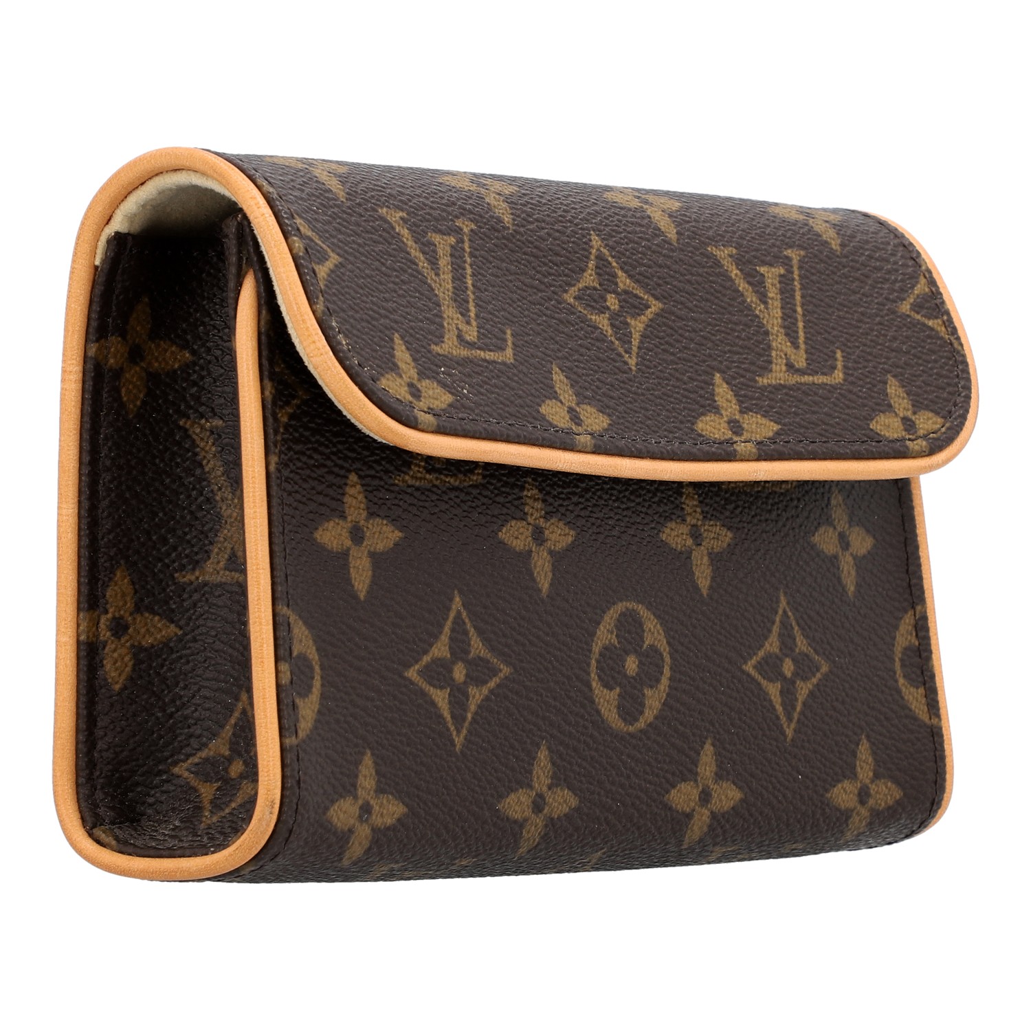 LOUIS VUITTON belt bag 'FLORENTINE'. Coll. 2005. Monogram canvas series with natural leather. Main compartment with flap and magnetic closure. Detachable shoulder strap. Good condition, classic patina present. 16.5x4x10cm.