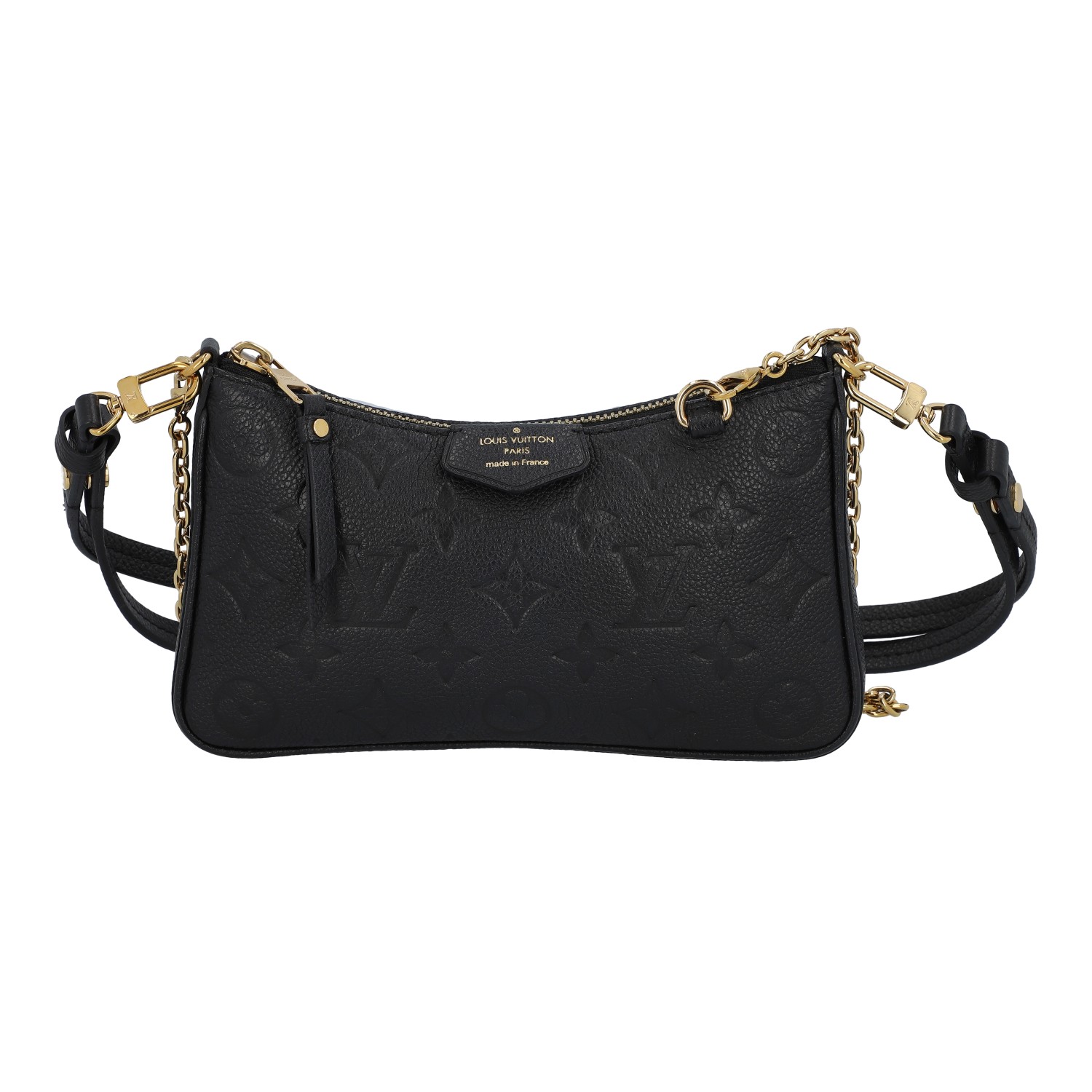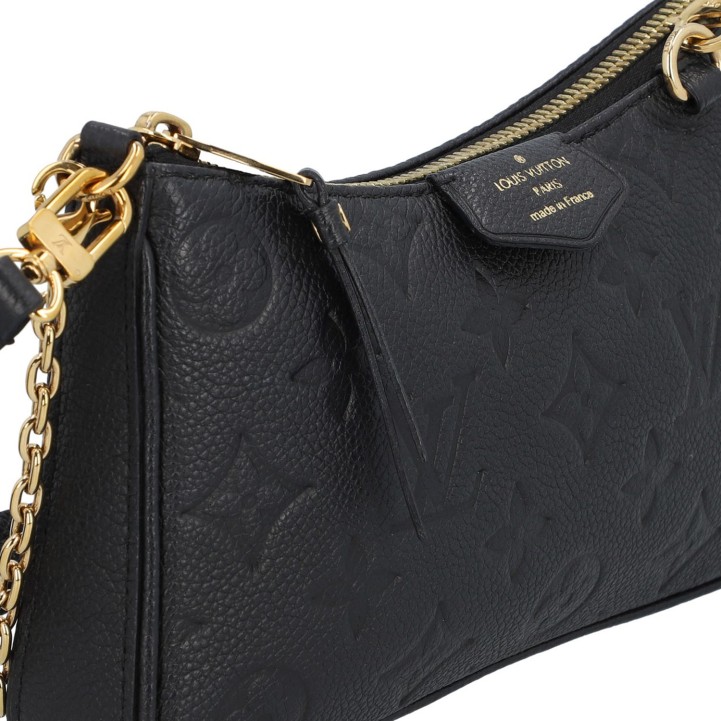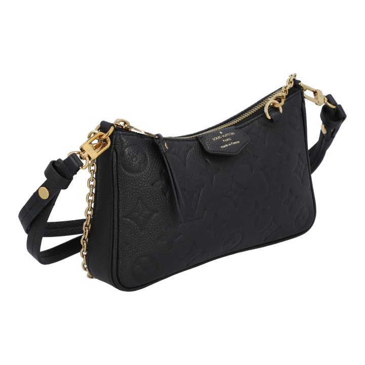LOUIS VUITTON Pochette 'EASY POUCH', retail price: 1.500,-€. Empreinte leather series with gold-coloured hardware, adjustable shoulder strap, chain strap and zip fastening. Striped textile interior. Discreet signs of wear. 19 x 11.5 x 3 cm.