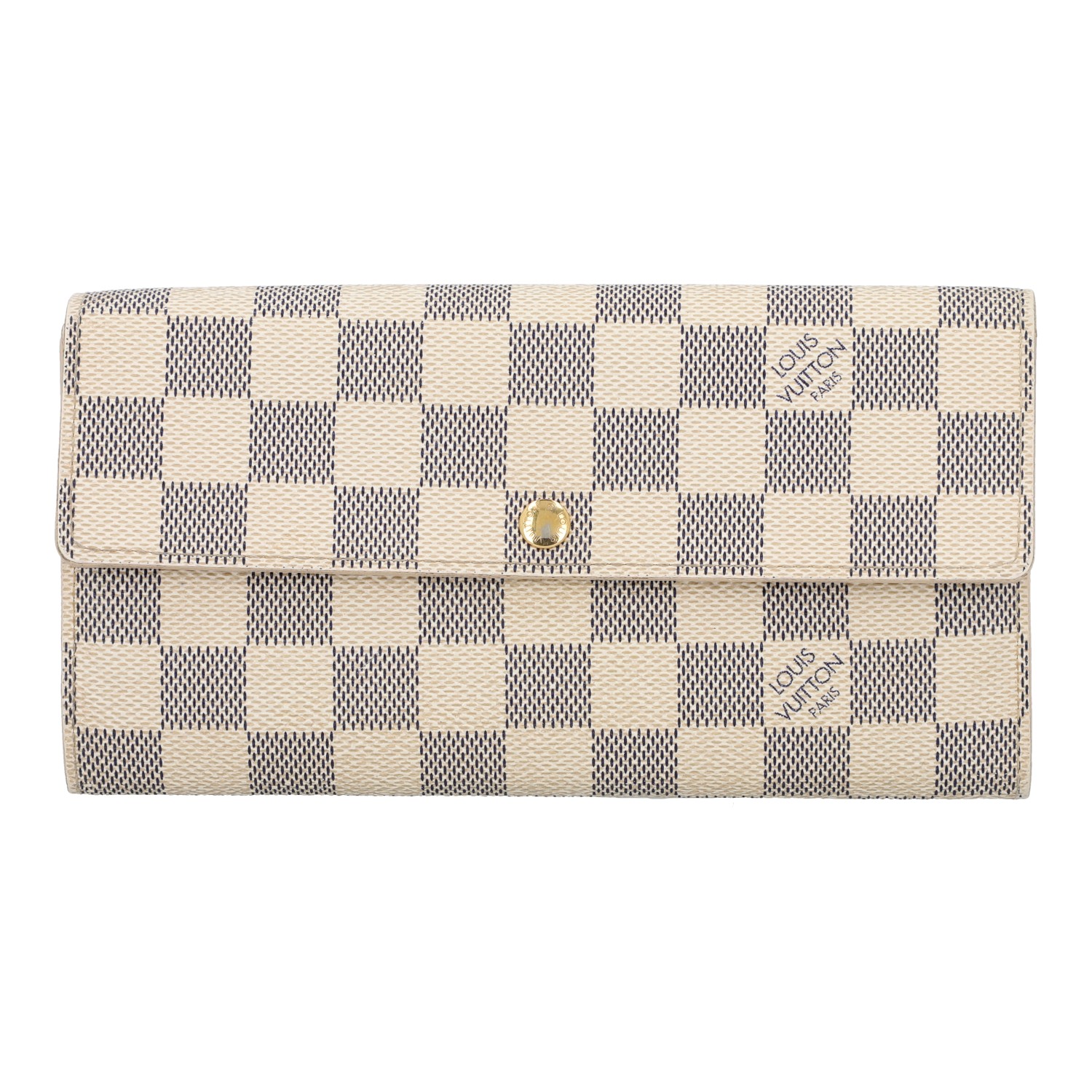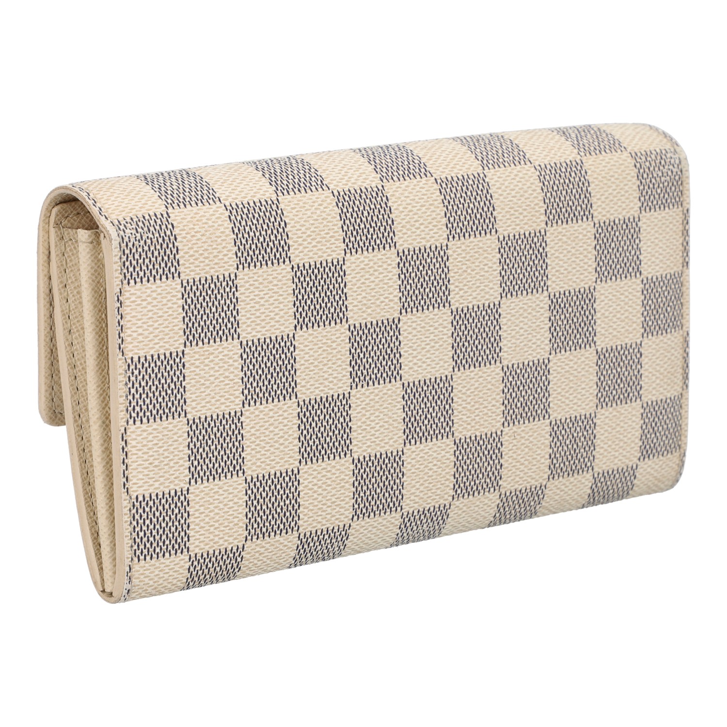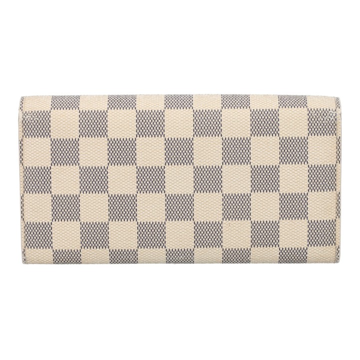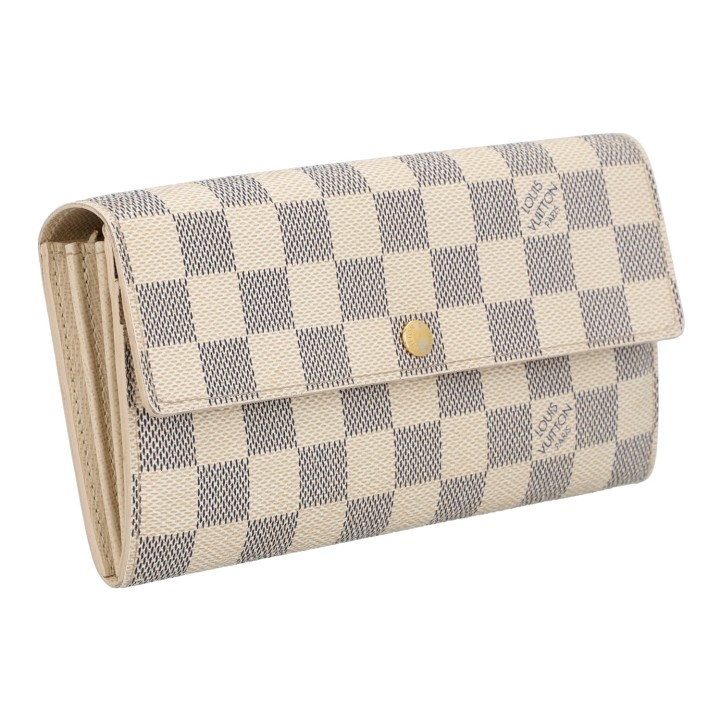 LOUIS VUITTON wallet 'SARAH', coll.: 2010. Current retail price: €560. Damier azur canvas with gold-coloured hardware and press stud closure. Interior with ten card slots, four large compartments, one with zip closure. Box and dust bag included. Various signs of wear.