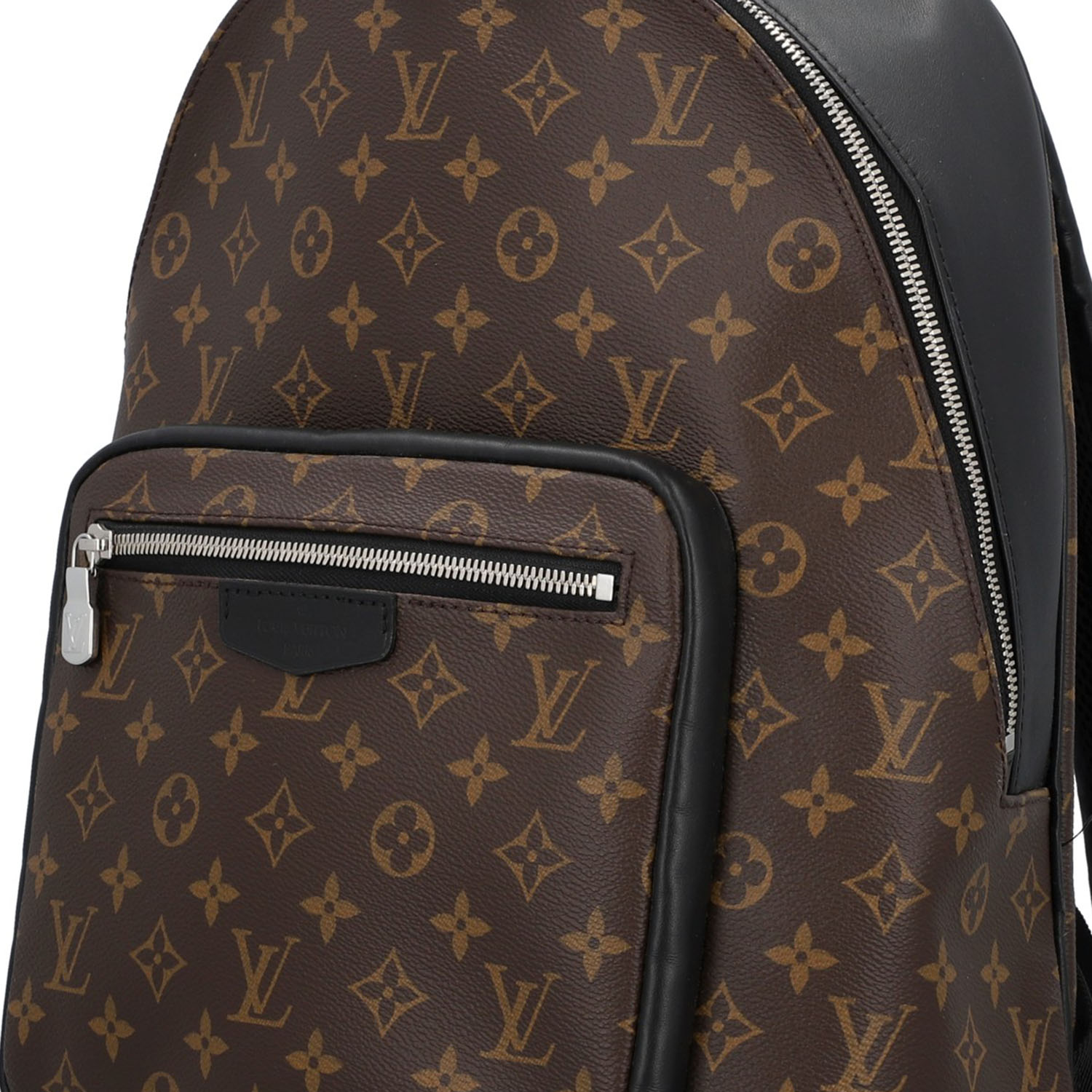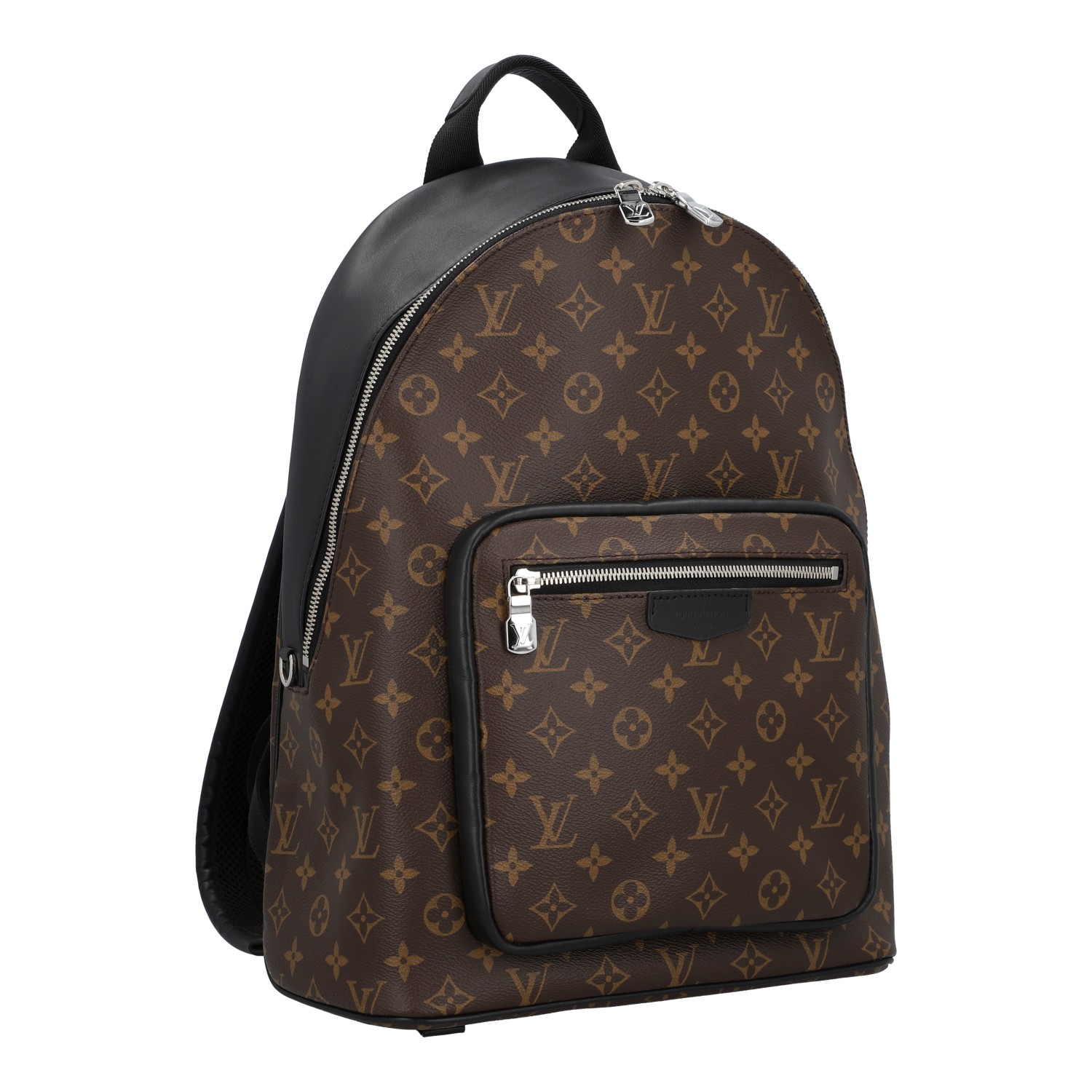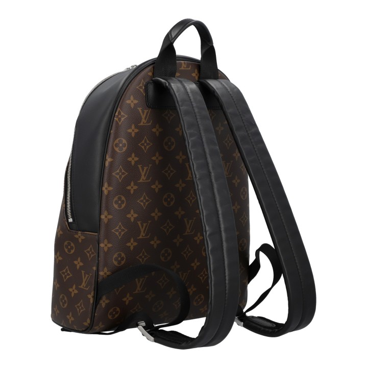 LOUIS VUITTON backpack 'JOSH'. Monogram Macassar canvas series with silver-coloured hardware and black leather details. Zipper on main and outer compartment, adjustable shoulder straps. Interior with three compartments. Dust bag included. Signs of wear present.