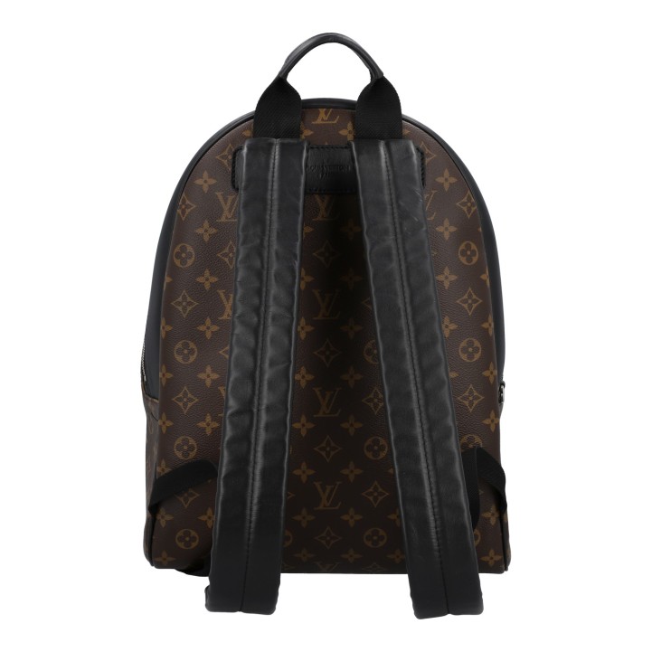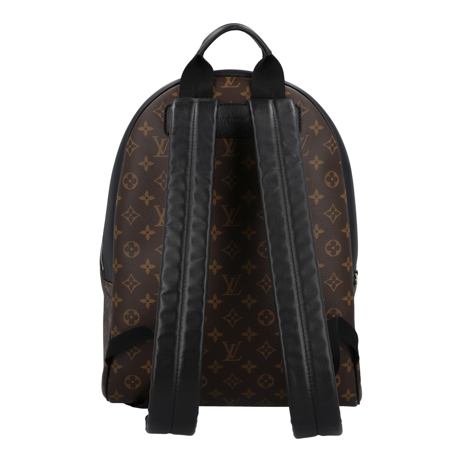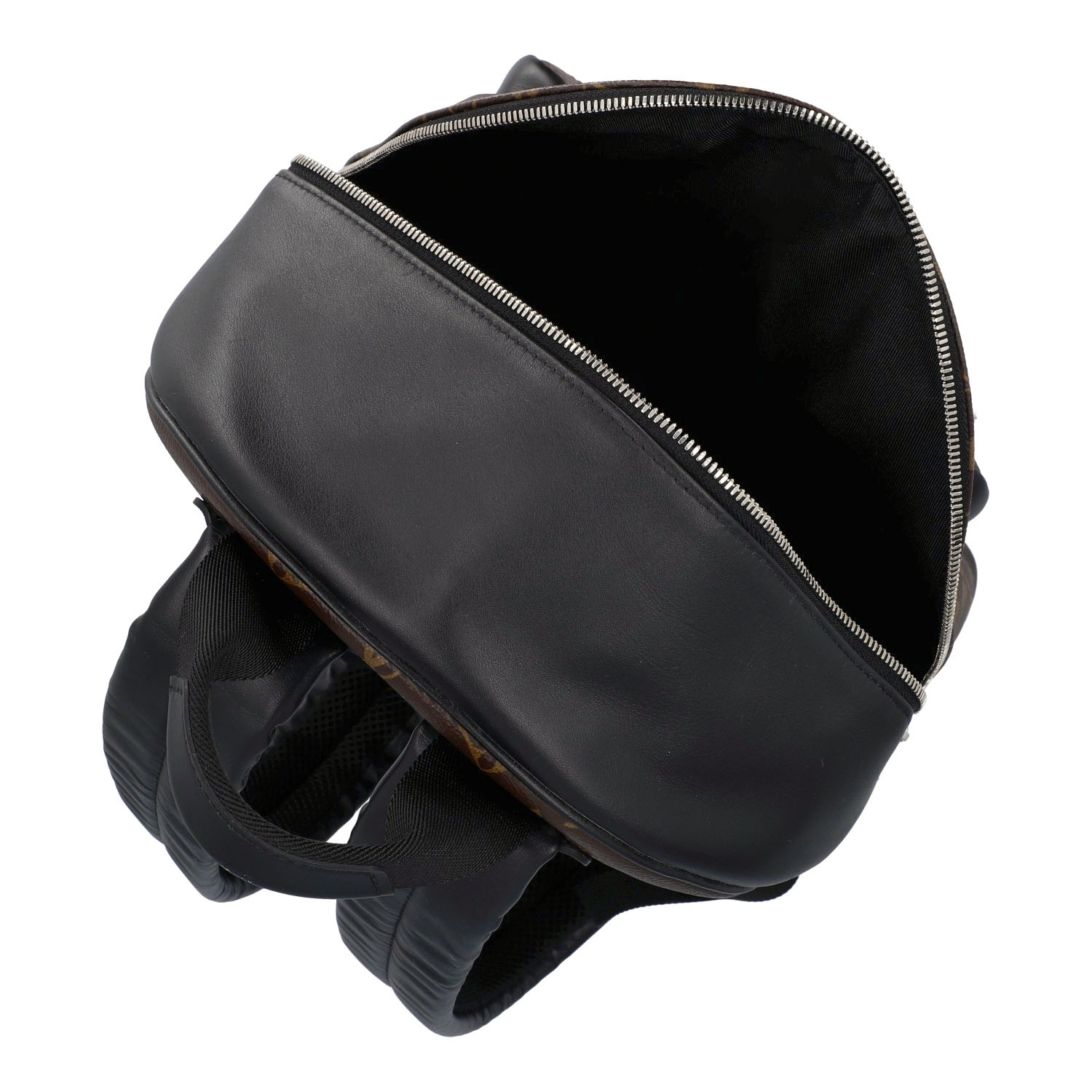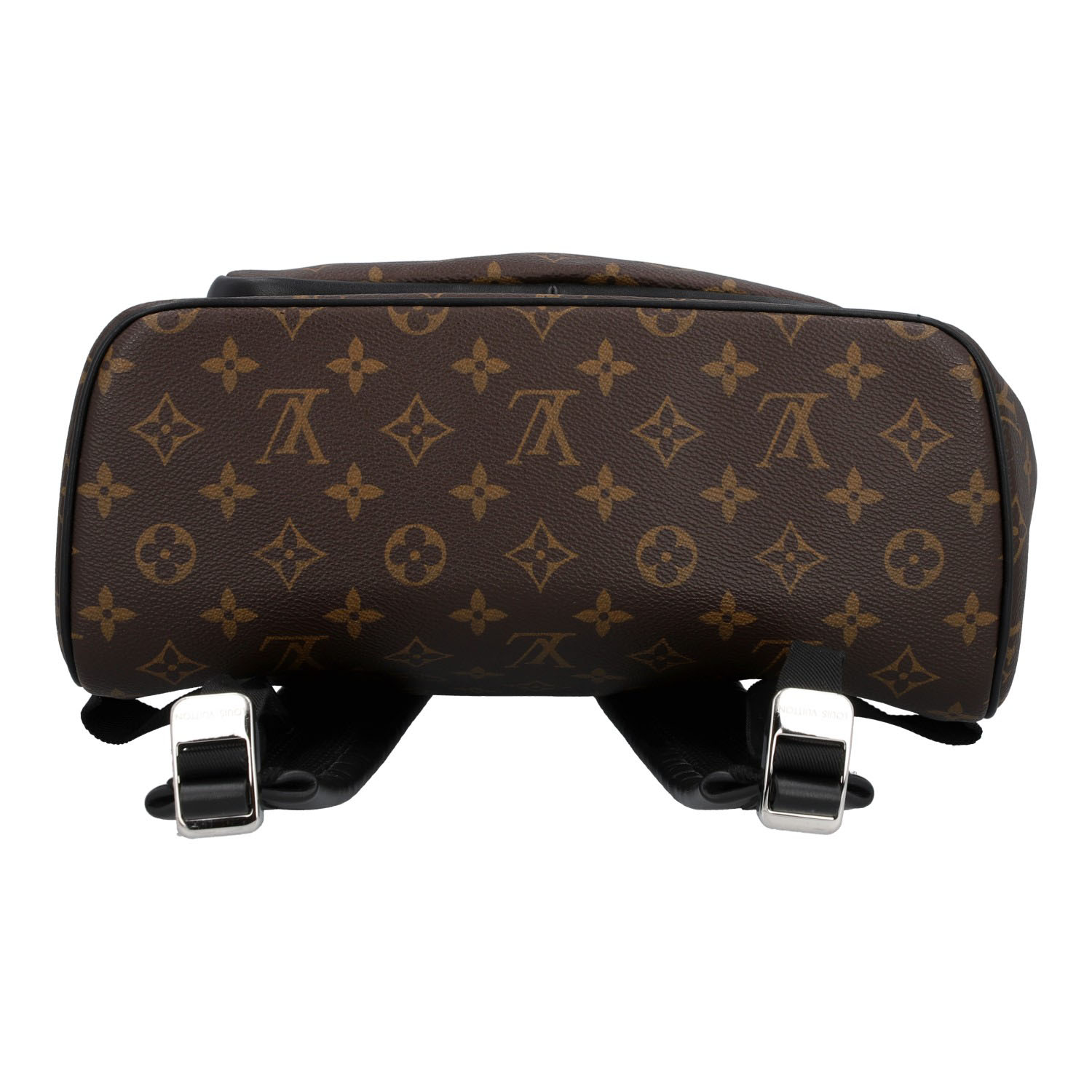 LOUIS VUITTON backpack 'JOSH'. Monogram Macassar canvas series with silver-coloured hardware and black leather details. Zipper on main and outer compartment, adjustable shoulder straps. Interior with three compartments. Dust bag included. Signs of wear present.