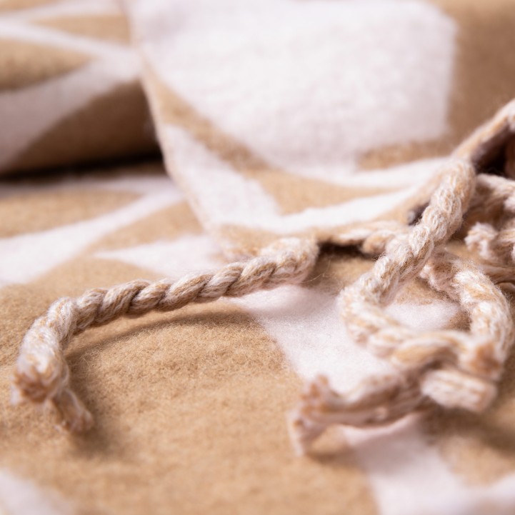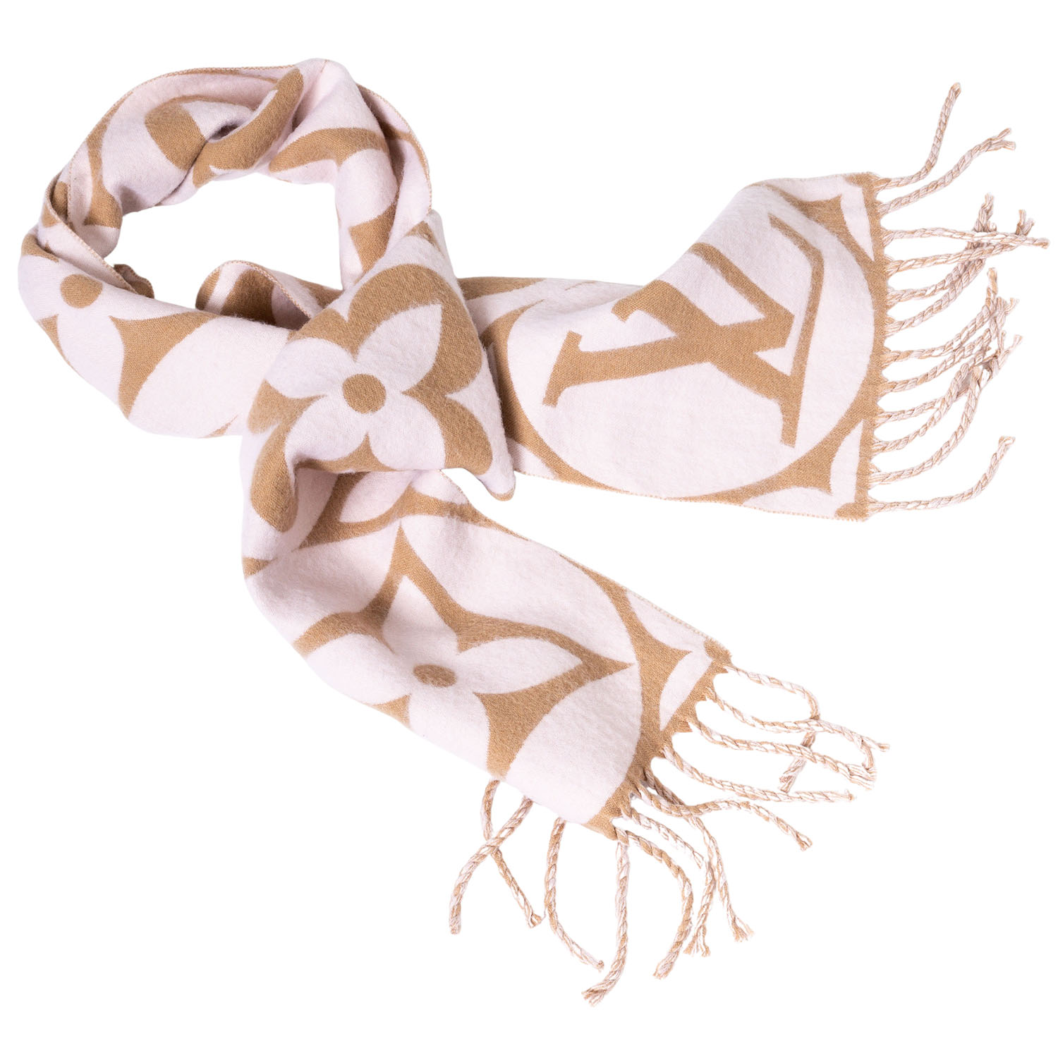 LOUIS VUITTON scarf 'MEDALLION'. Retail price €510. 100% wool in beige/pink with monogram pattern and fringed hem. Signs of wear and pilling present. Box included.