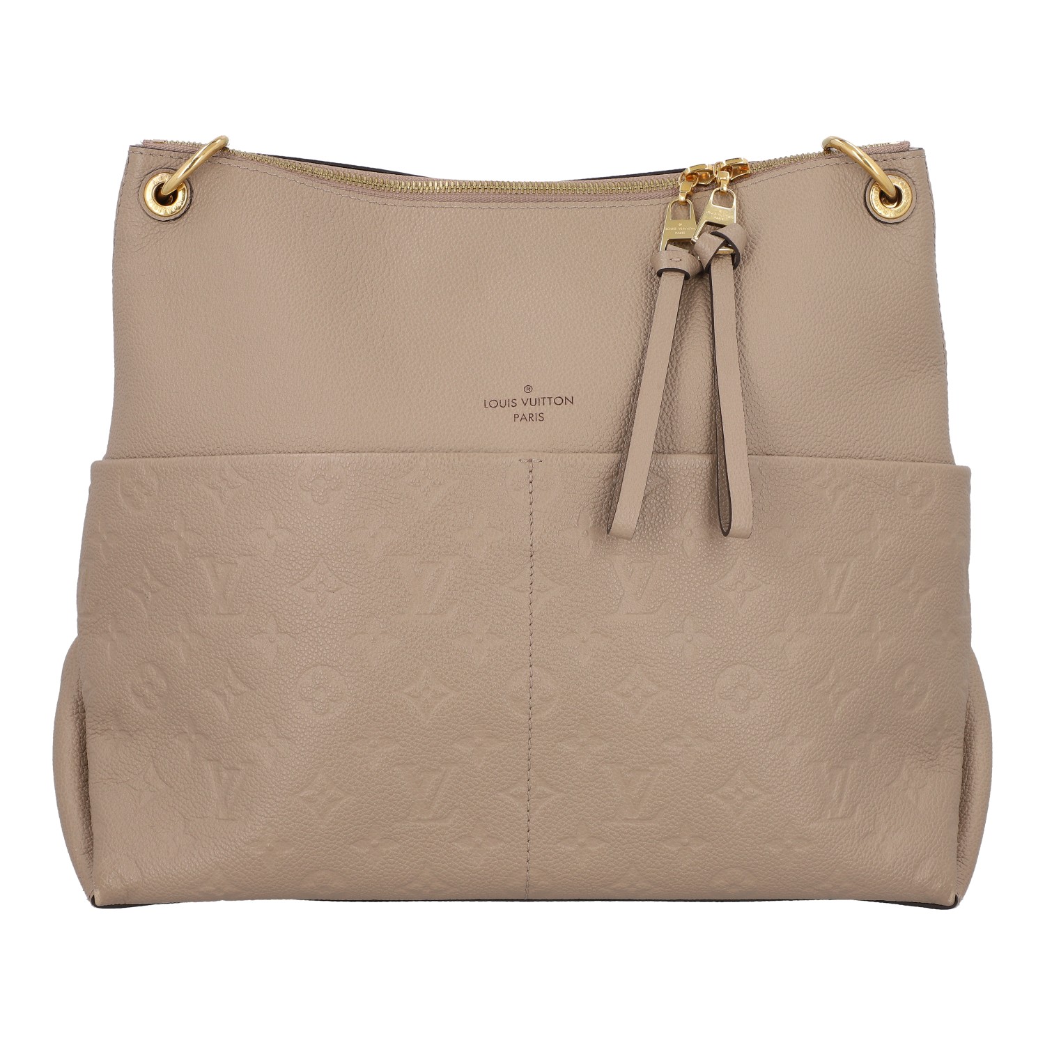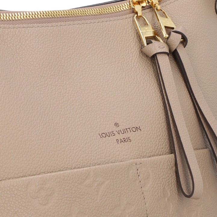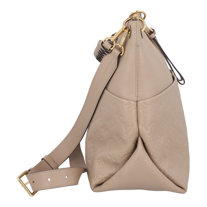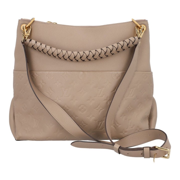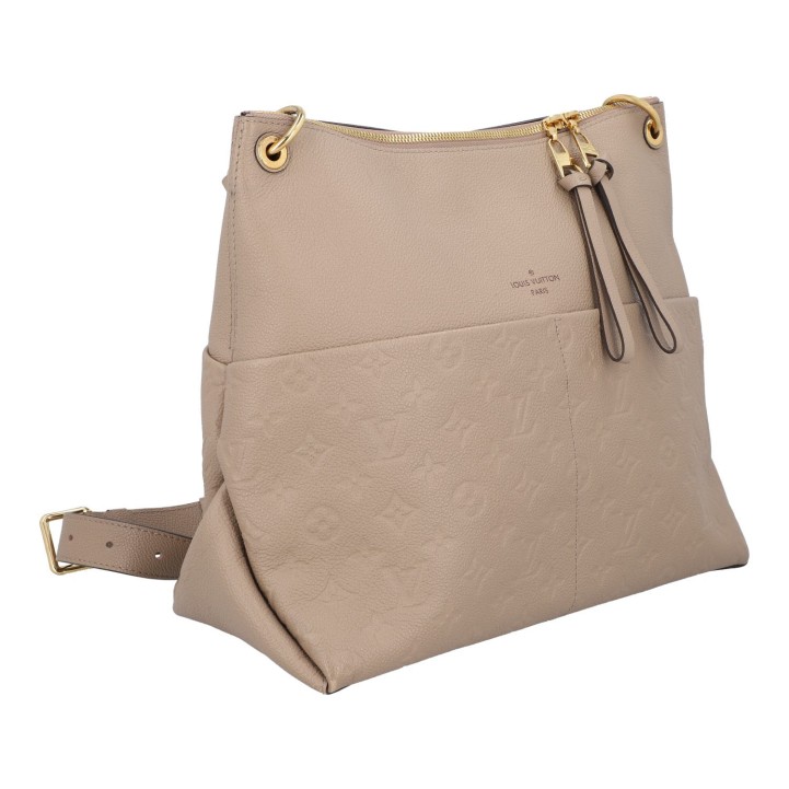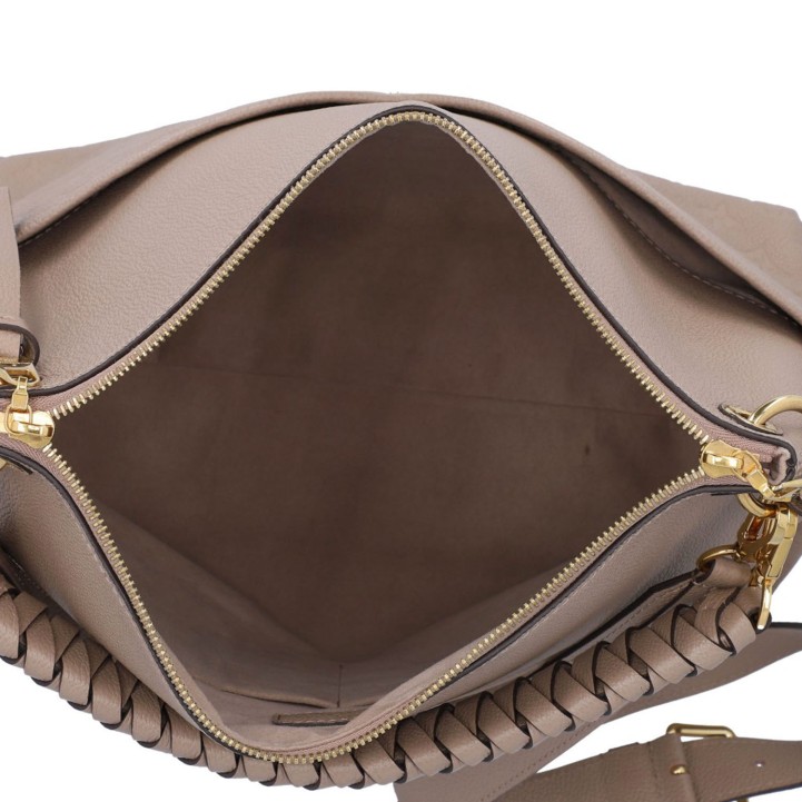 LOUIS VUITTON shoulder bag 'MAIDA', coll.: 2020. Mahina leather series in Galet with gold-coloured hardware, exterior compartment on the front, double zip, short and long removable shoulder strap. Microfibre interior with two compartments. Dust bag included. Signs of wear, abrasion on the edges, stains. 34 x 14 x 29 cm.