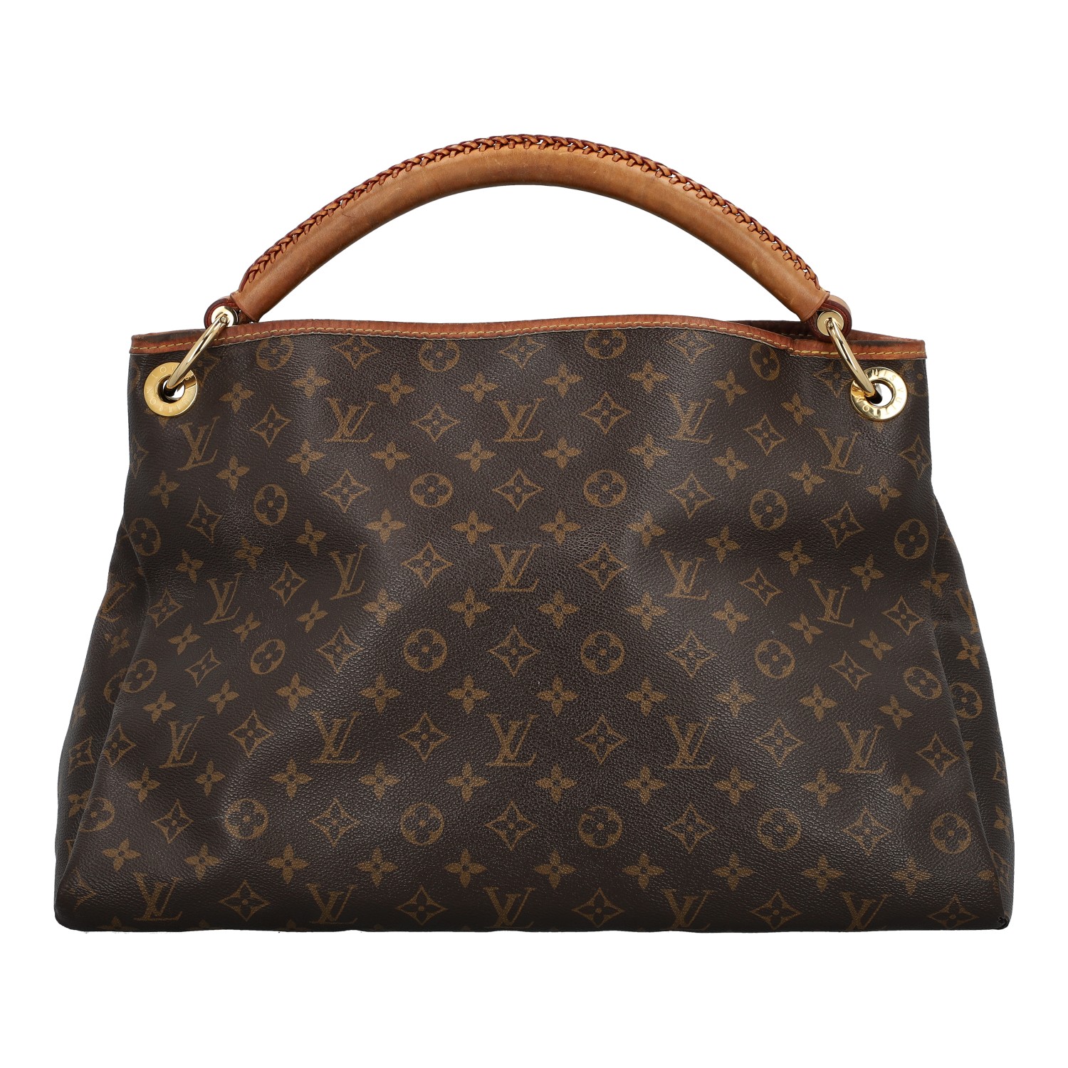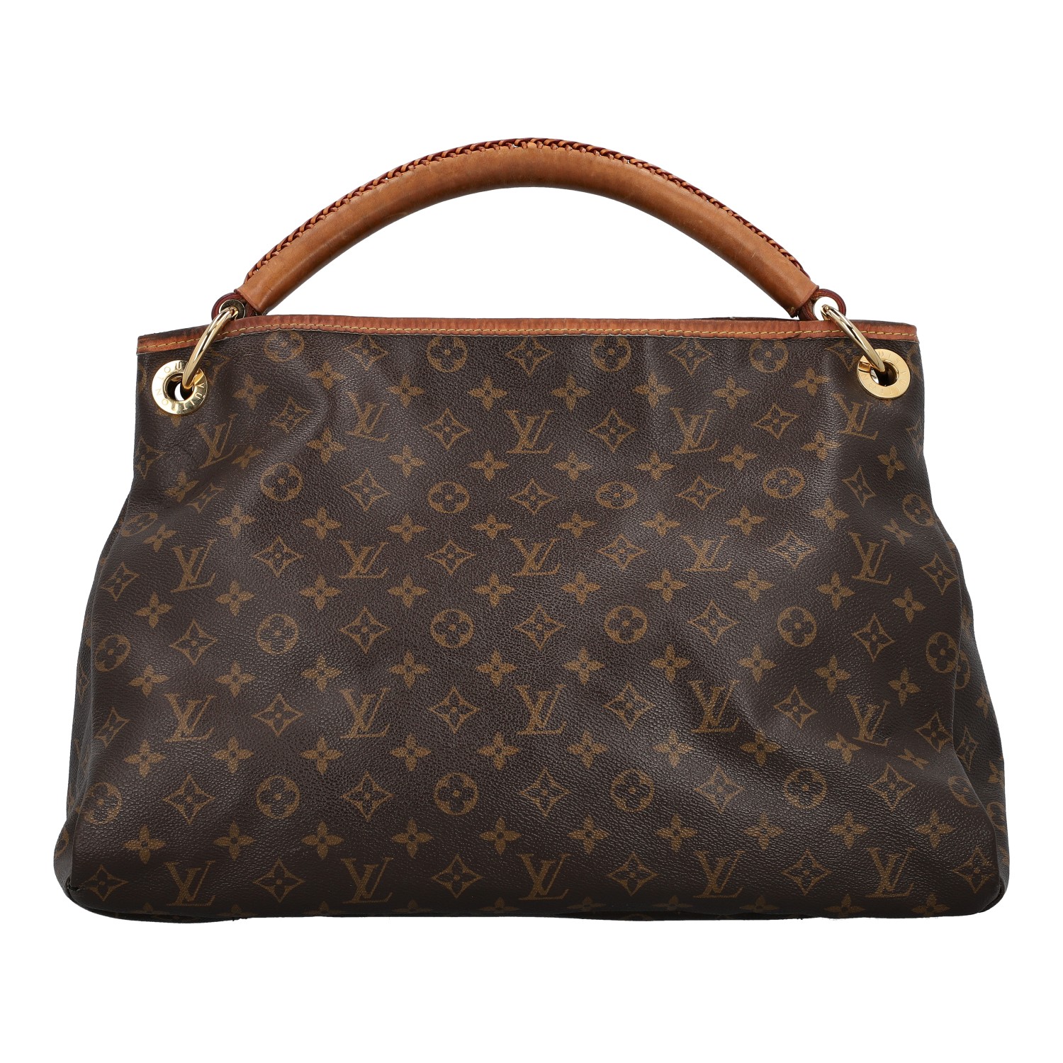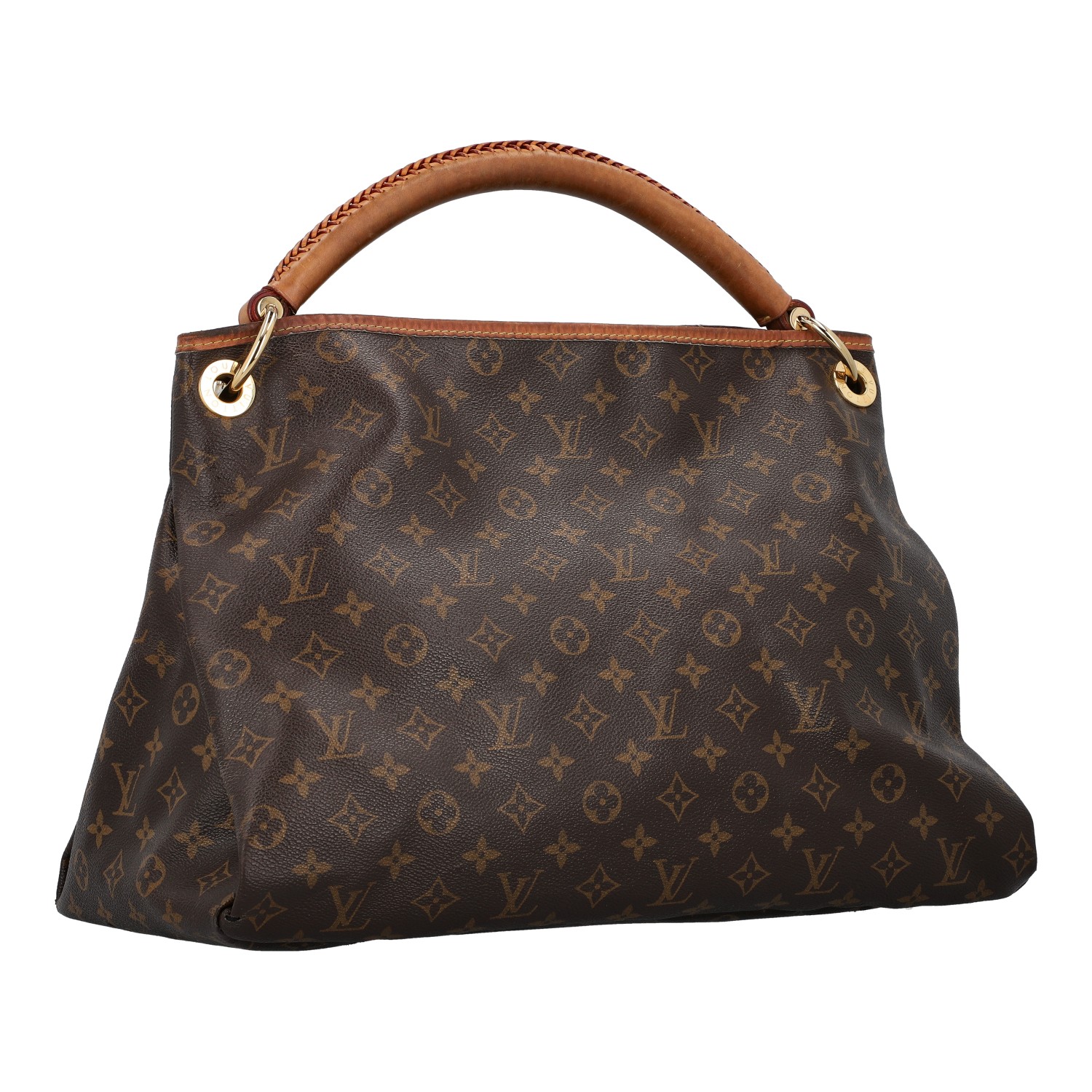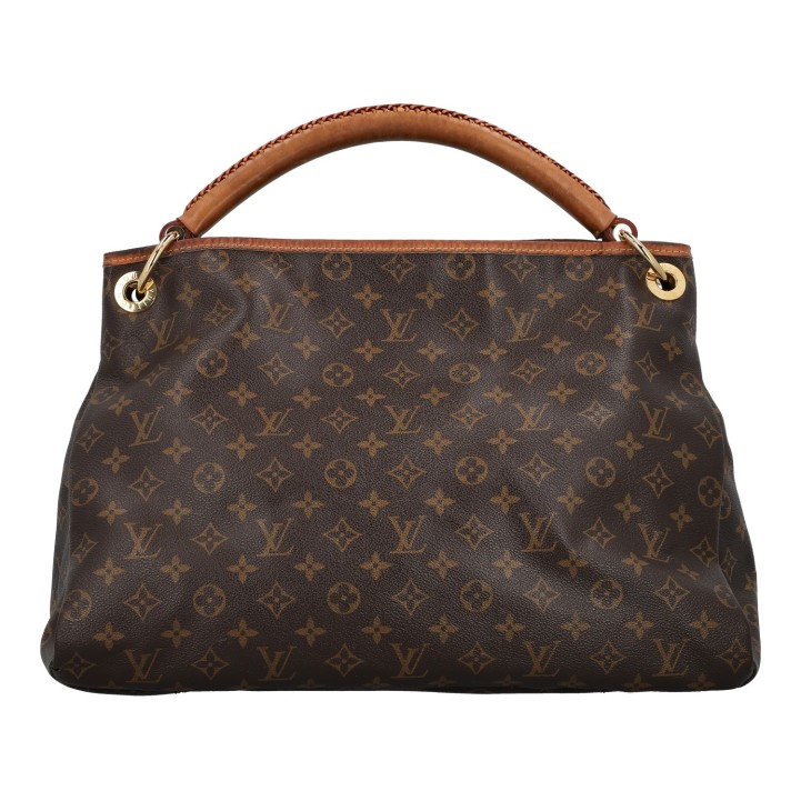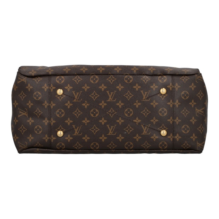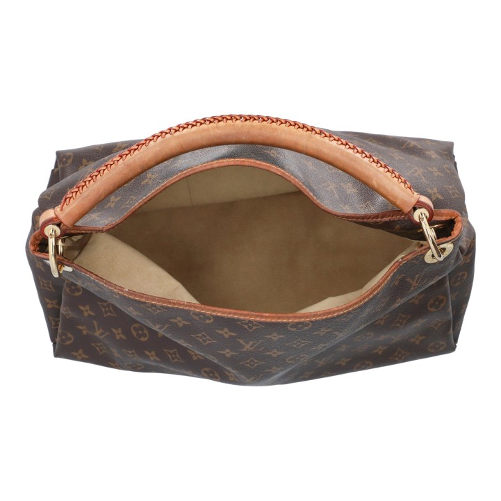 LOUIS VUITTON hobo bag 'ARTSY'. Monogram canvas series with cowhide leather details, gold-coloured hardware and shoulder strap. Interior with seven compartments. Monogram canvas series with cowhide leather details, gold-coloured hardware and shoulder strap. Interior with seven compartments. Dust bag enclosed. Signs of wear, heavy patina, inner lining has been replaced.. 42 x 18 x 32 cm.