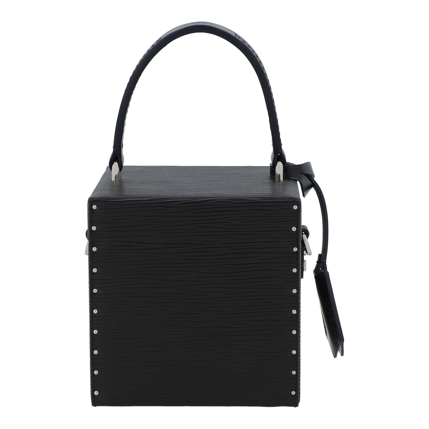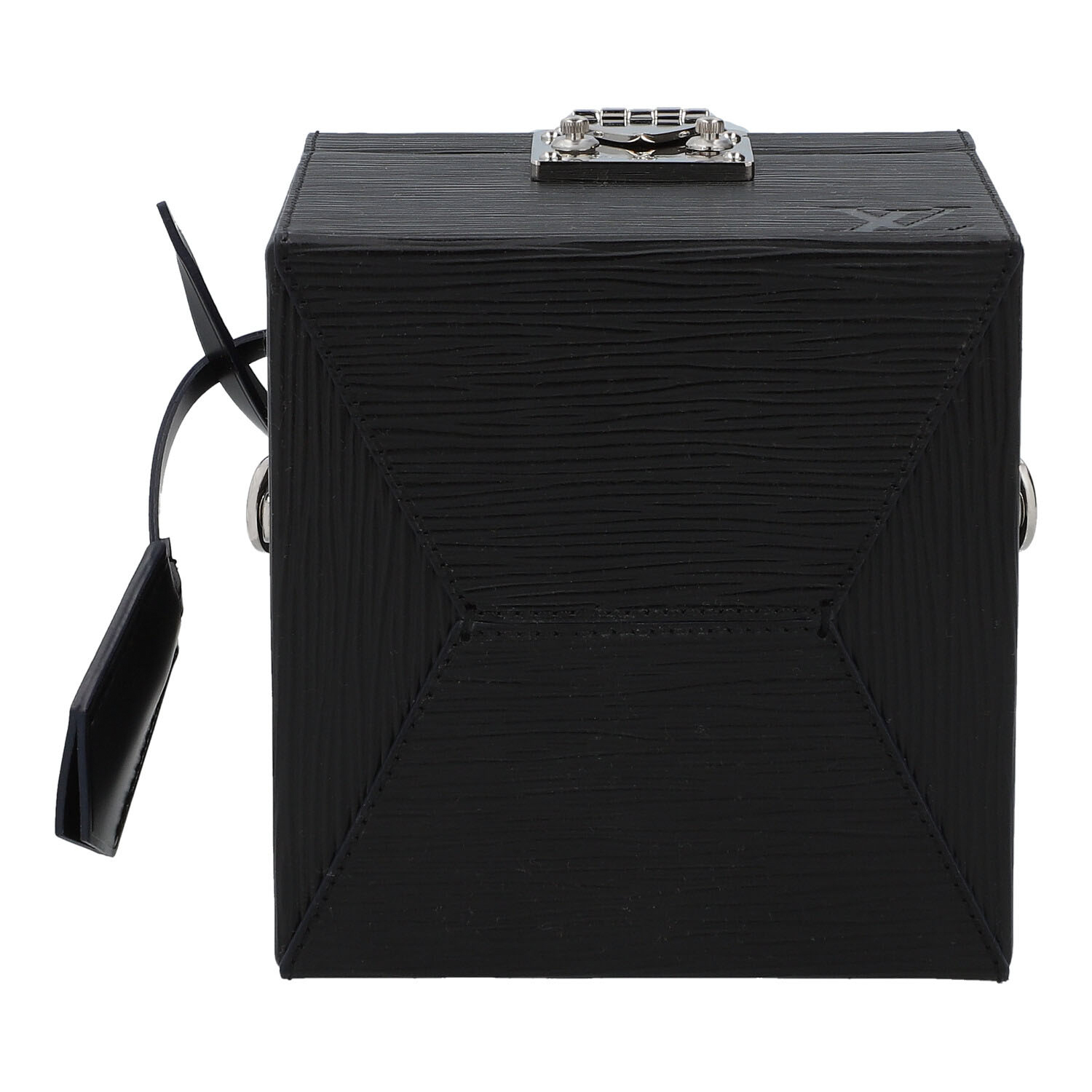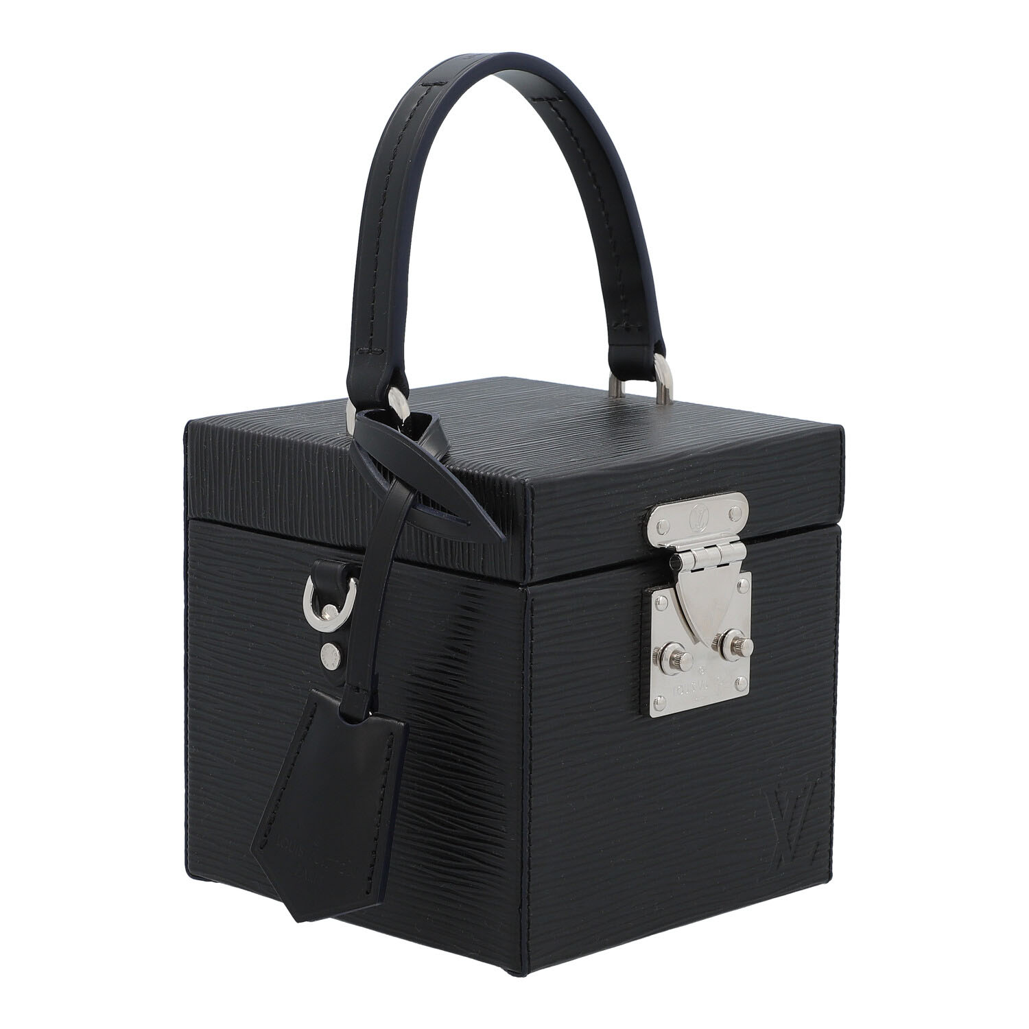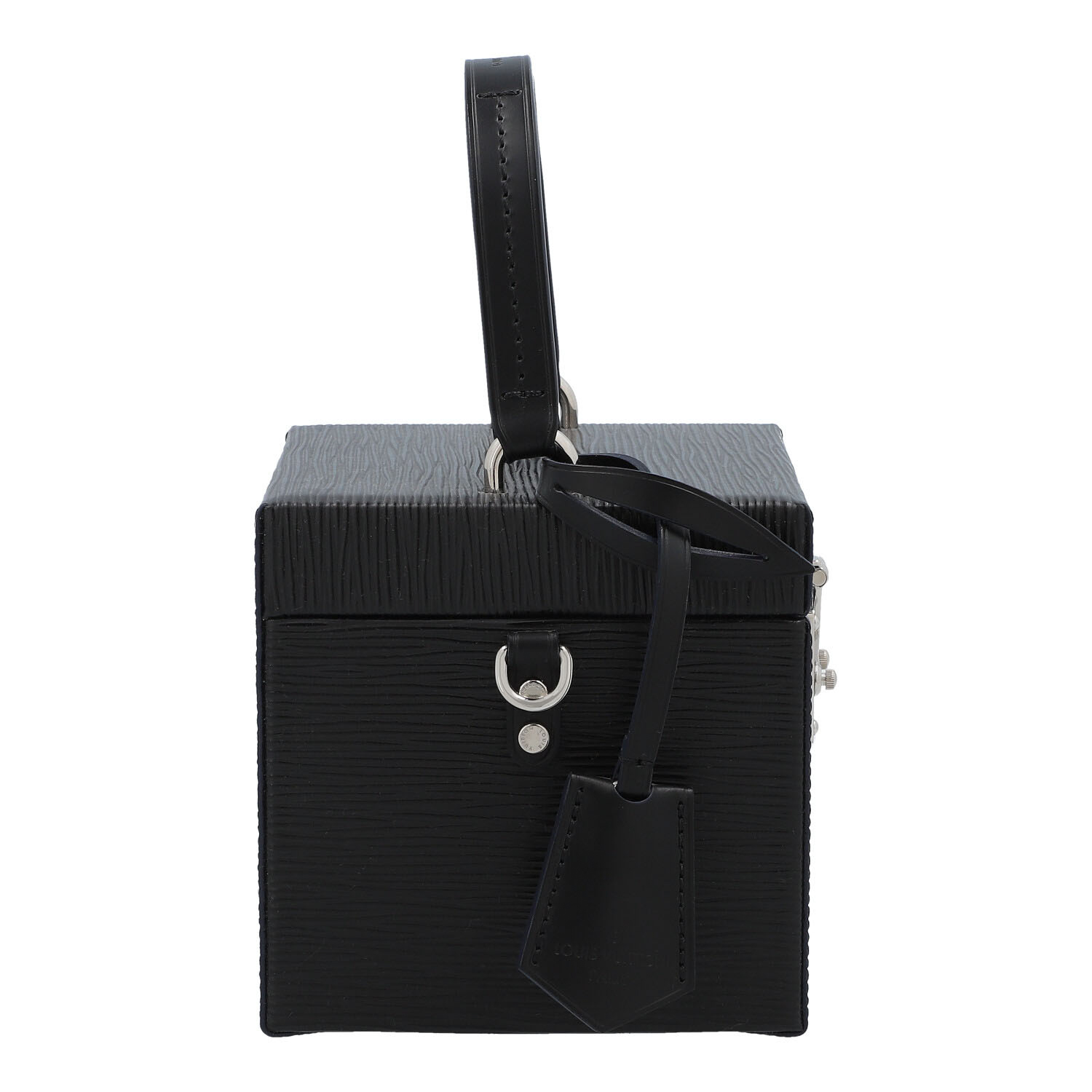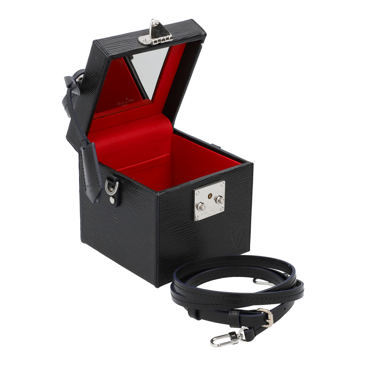 LOUIS VUITTON shoulder bag 'BLEECKER BOX'. Coll. 2018. epi leather series in black with silver-colored hardware and a leather lining in red. With integrated mirror. Shoulder strap and clochette enclosed. Very good condition. 12x12x12cm.