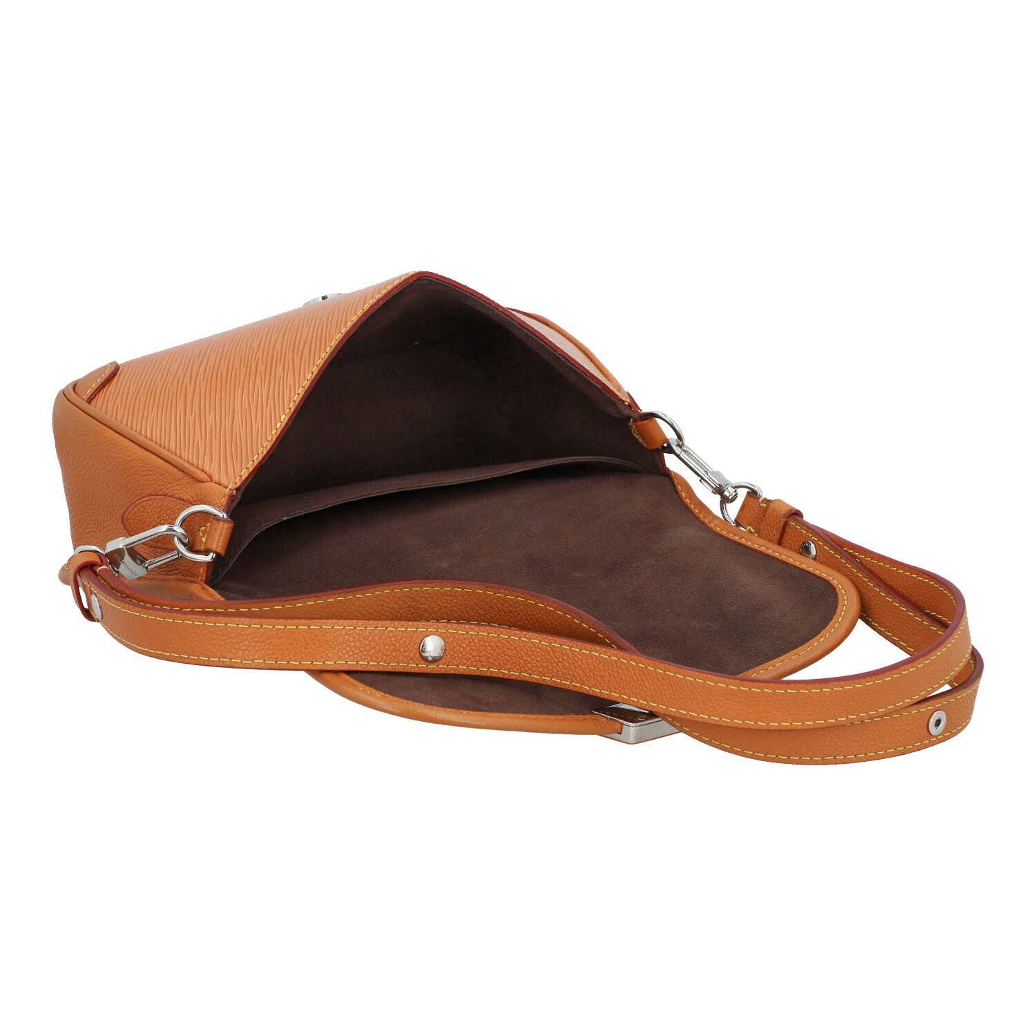 LOUIS VUITTON shoulder bag 'BUCI'. Retail price 1.950€. Epi leather series in light brown with silver-coloured hardware. Flap with large logo application, lining in brown. Adjustable and detachable shoulder strap. Dust bag enclosed. Signs of wear.