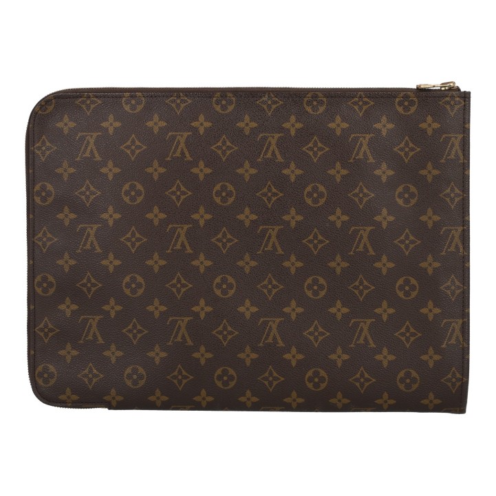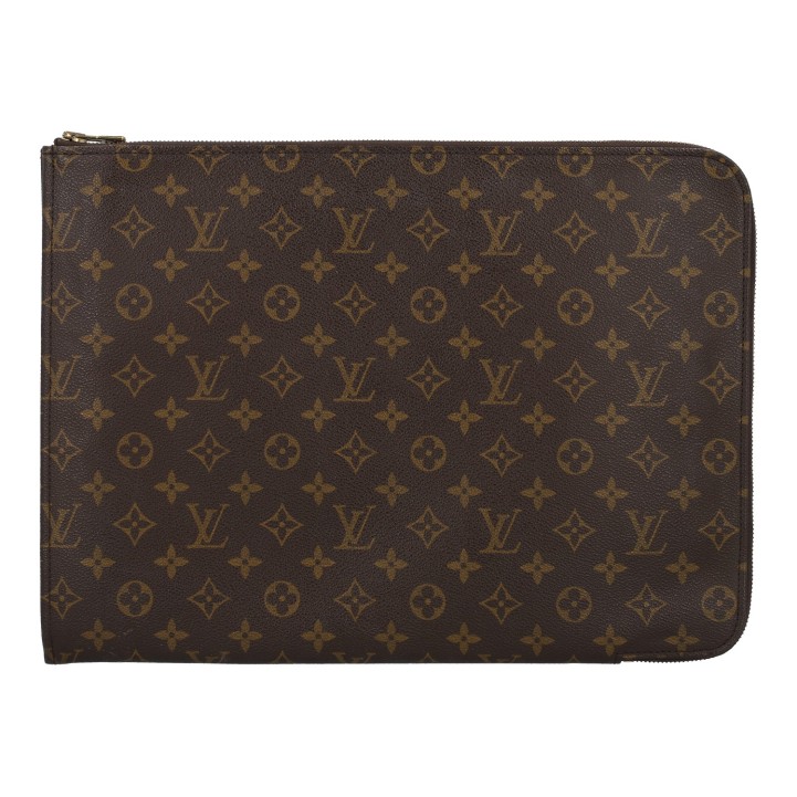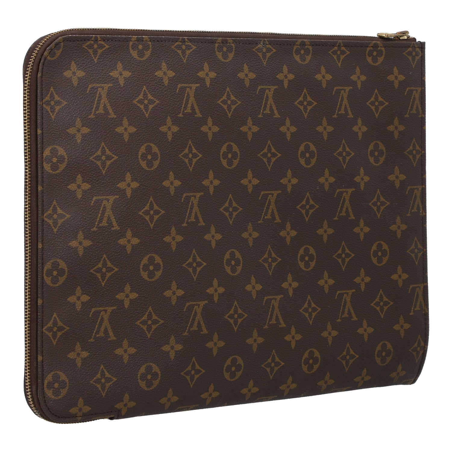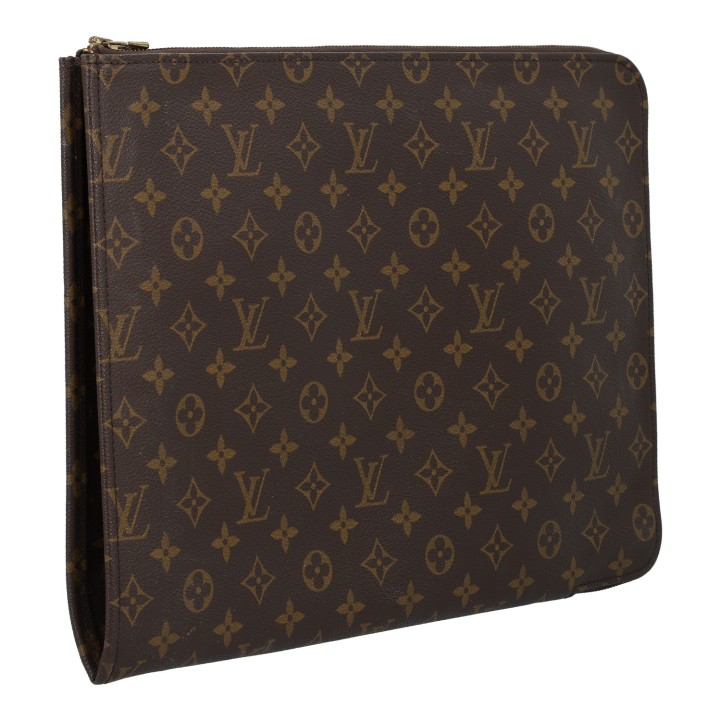 LOUIS VUITTON VINTAGE document folder, 1990 collection. Monogram Canvas series with all-around zipper and brown leather interior. Dimensions approx. 28x38cm. Good condition.