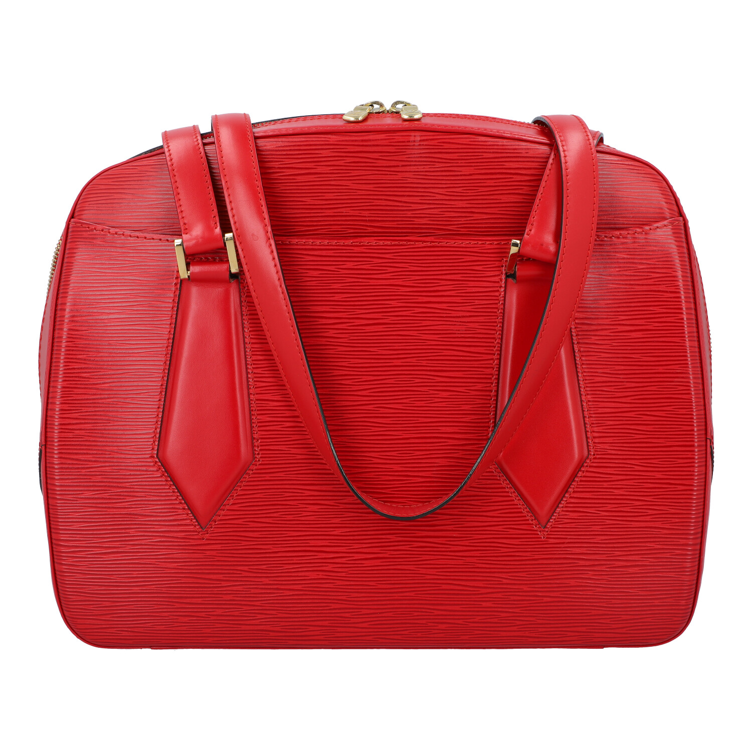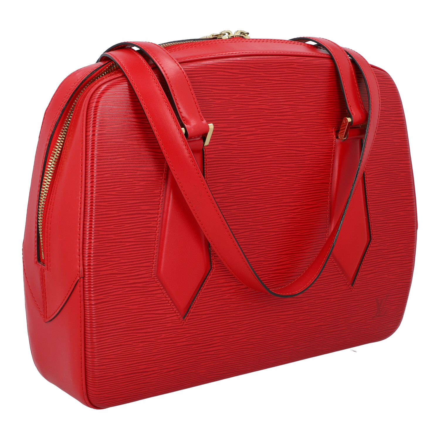 LOUIS VUITTON VINTAGE shoulder bag 'VOLTAIRE'. Coll. 1998 Epi leather series in red with gold-coloured hardware. One outer compartment, main compartment with all-round zip and small inner compartment. Slight signs of age, otherwise in very good condition. 33x9x27cm.