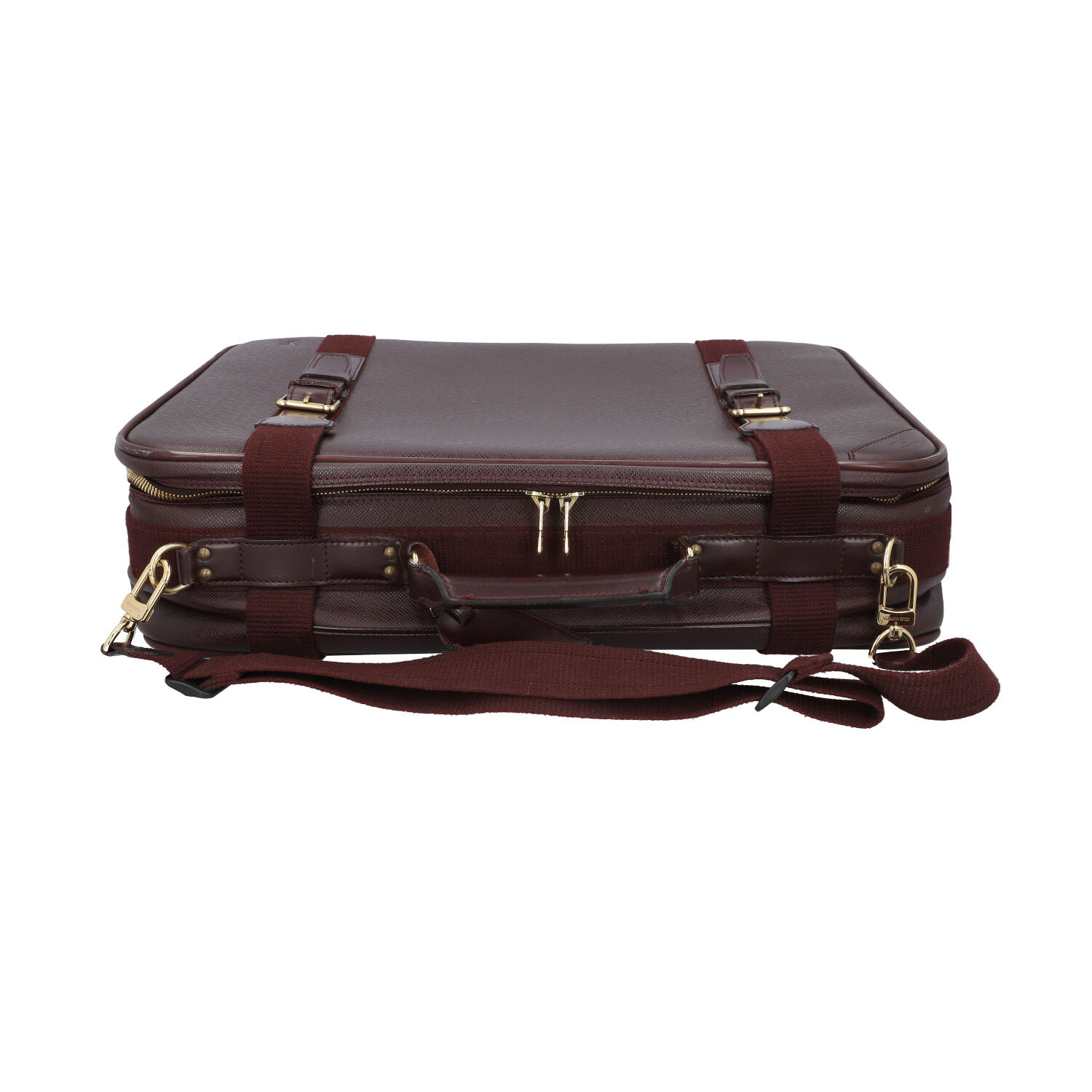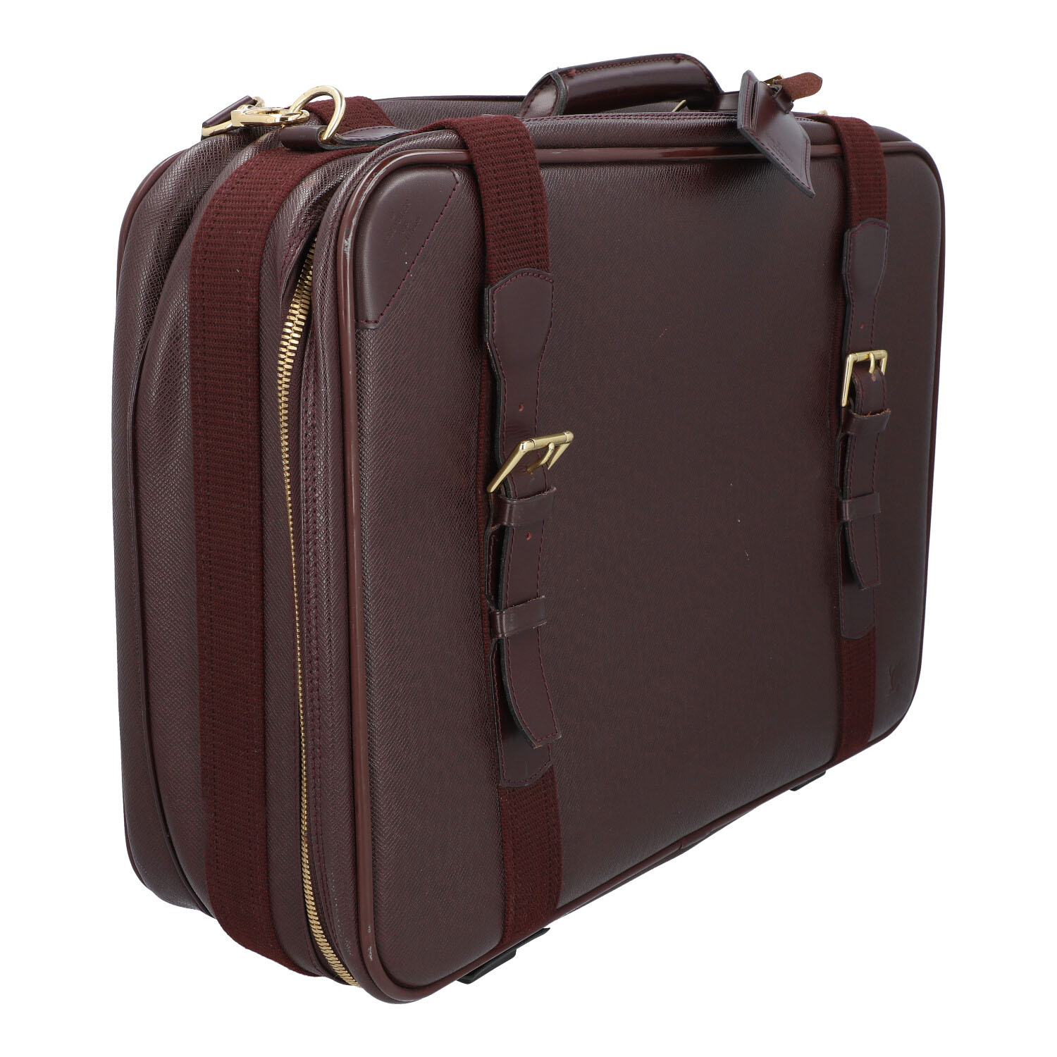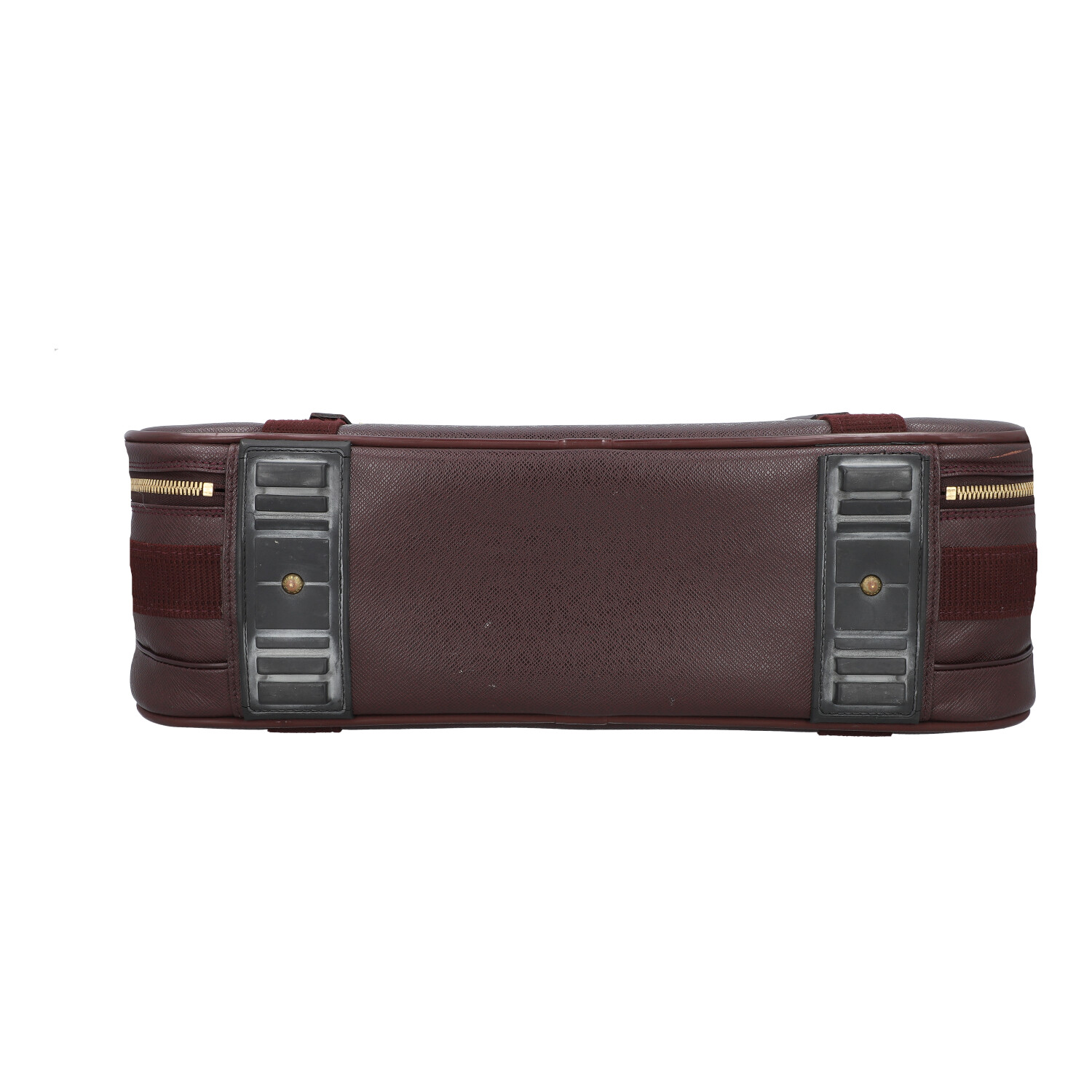 LOUIS VUITTON VINTAGE travel bag 'SATELLITE 53'. Coll. 1997. Taiga leather series in Bordeaux with gold-colored hardware and textile straps. Classic, slight signs of wear. Well-kept condition. Dimensions approx. 53x15x37cm.
