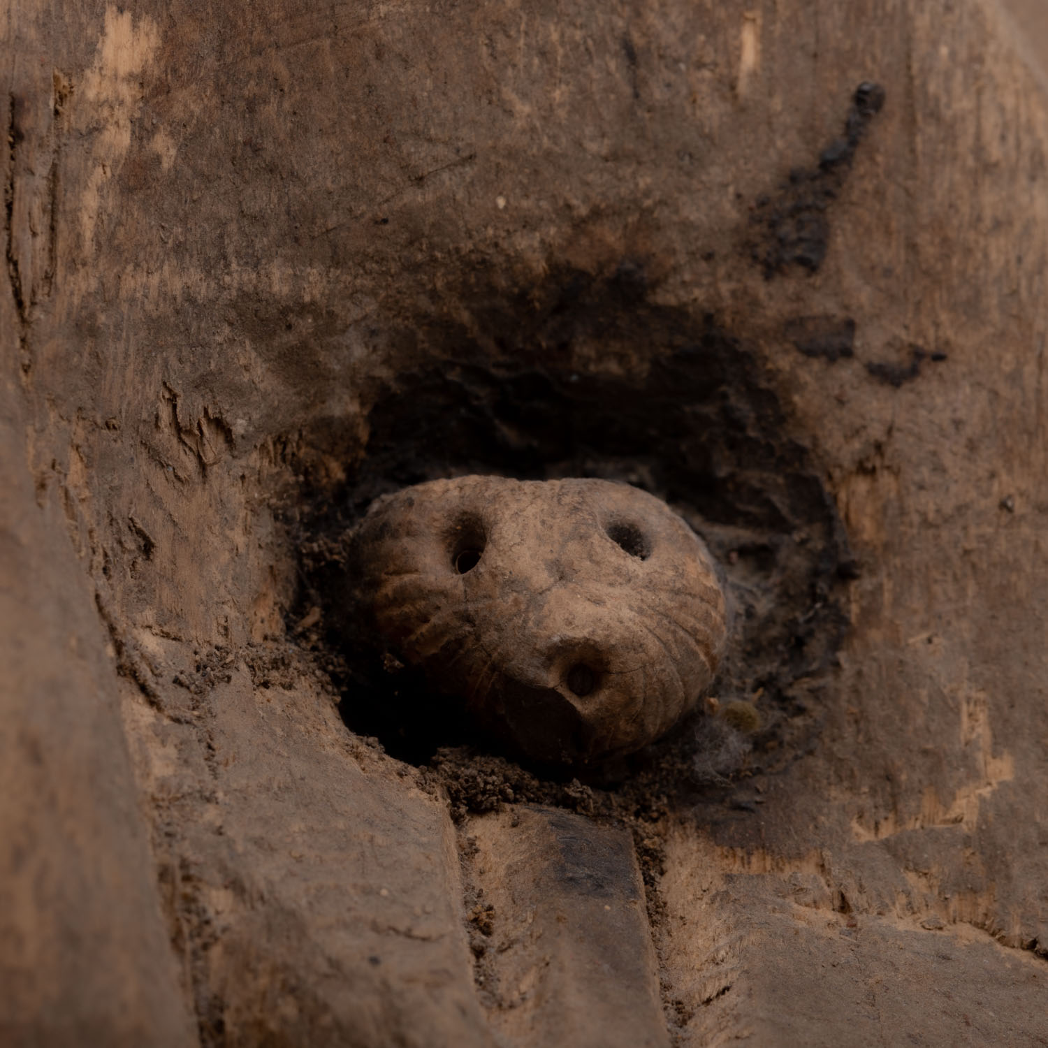 Vessel in the shape of a head with ram horns. Probably CONGO.
