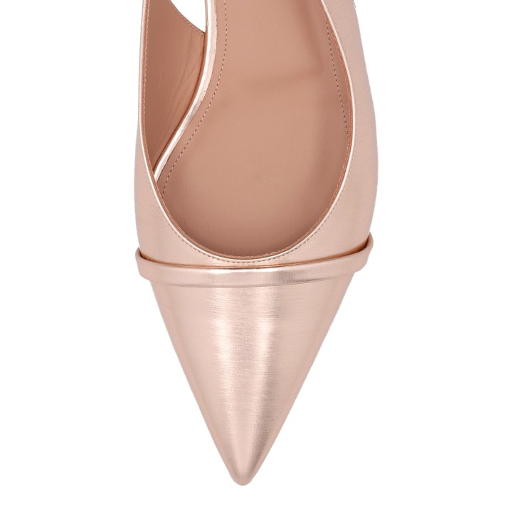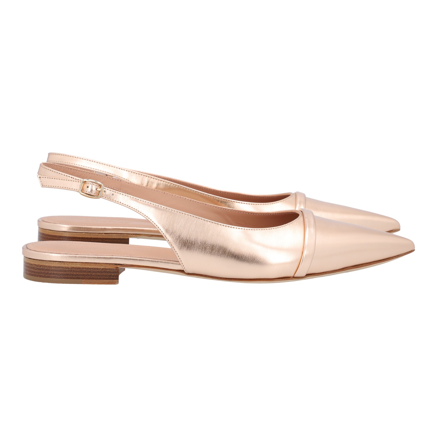 MALONE SOULIERS slipper, size 41. Rose gold-colored leather, simple design with pointed toe. In good condition.