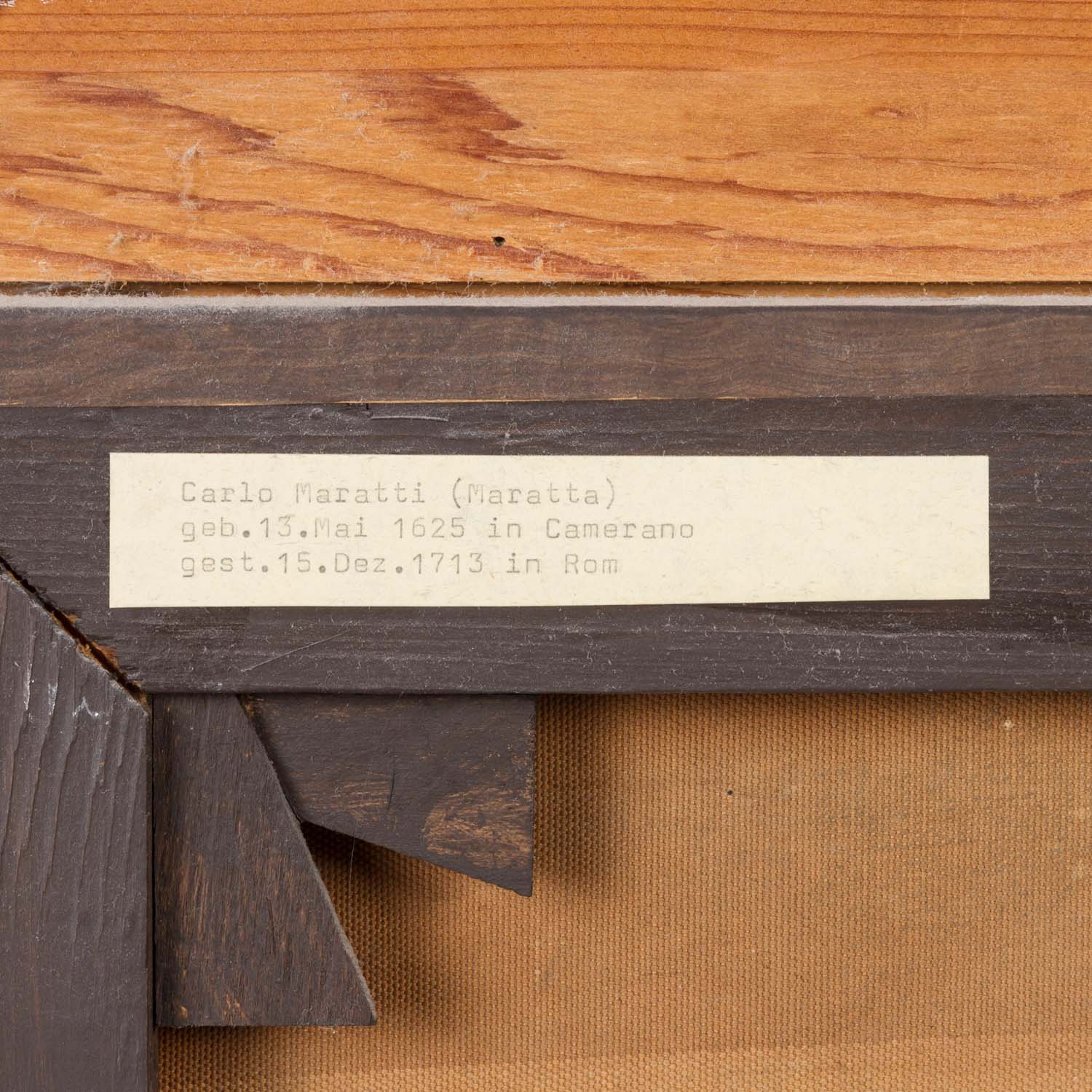 MARATTI, Carlo, ATTRIBUIERT (also Maratta, 1625-1713) "Madonna" Oil on canvas, photocopy of an expert opinion from 1930: "Verdict on the Madonna painting by Carlo Maratta 1625-1710...... owned by the Eickhoff-Bochum family" HxW: 63/49 cm. Frame, relined, restored and retouched, craquelure.