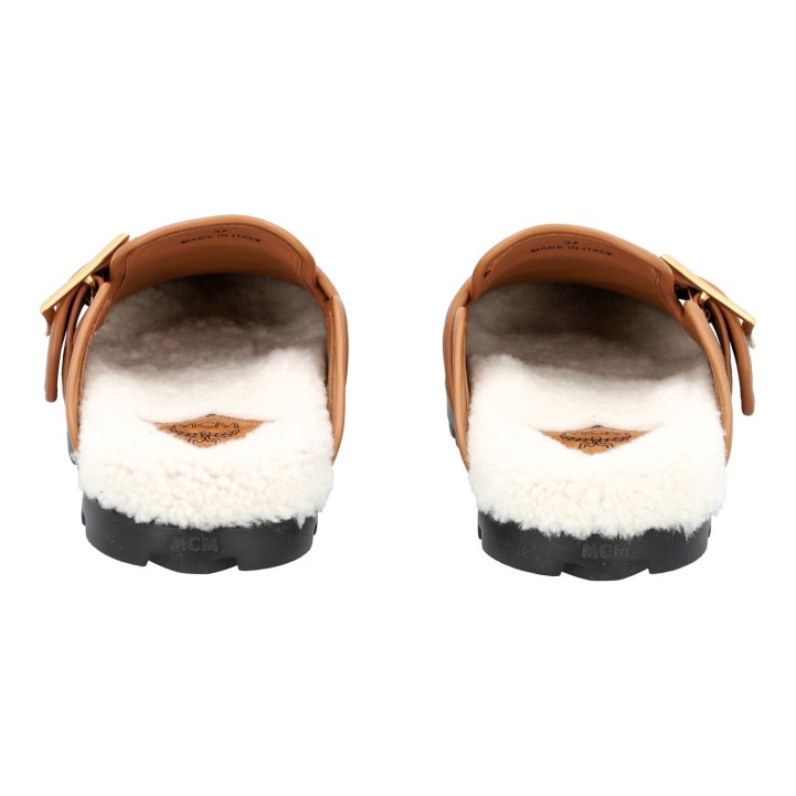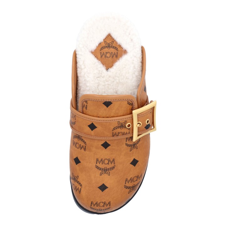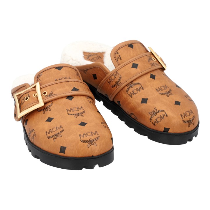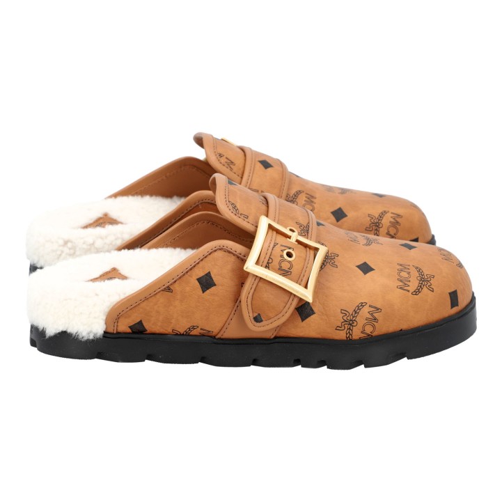 MCM mules, size 37. Visetos series in cognac colors with lined interior and rubberized outsole in black. Box included. Very good condition.