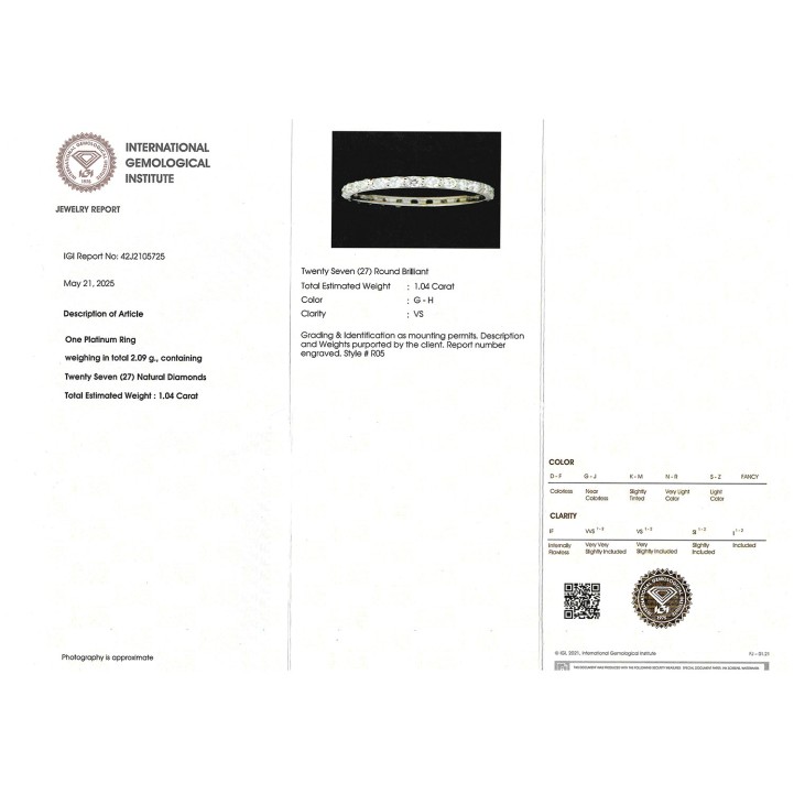 Memory ring with 27 brilliant-cut diamonds totaling approx. 1.04 ct, RW-WHITE (G-H)/VS, PT, 2.1 g, RW: 54, 21st century, minimal signs of wear, incl. IGI jewelry report (05/2025).