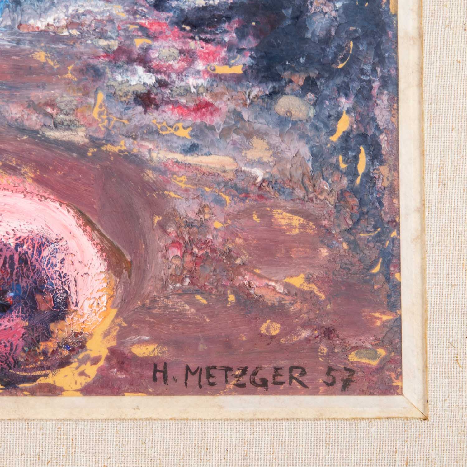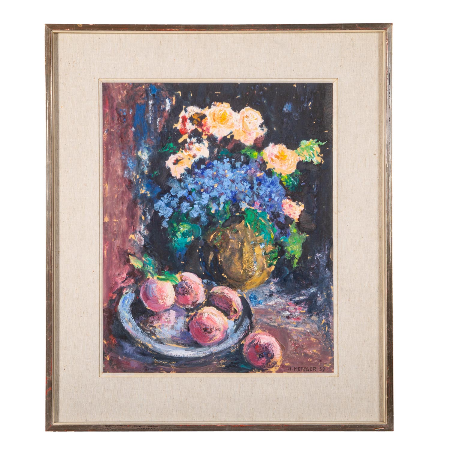 METZGER, HERMANN (1896-1971) 'Bouquet of Flowers and Plate with Apples' 1957