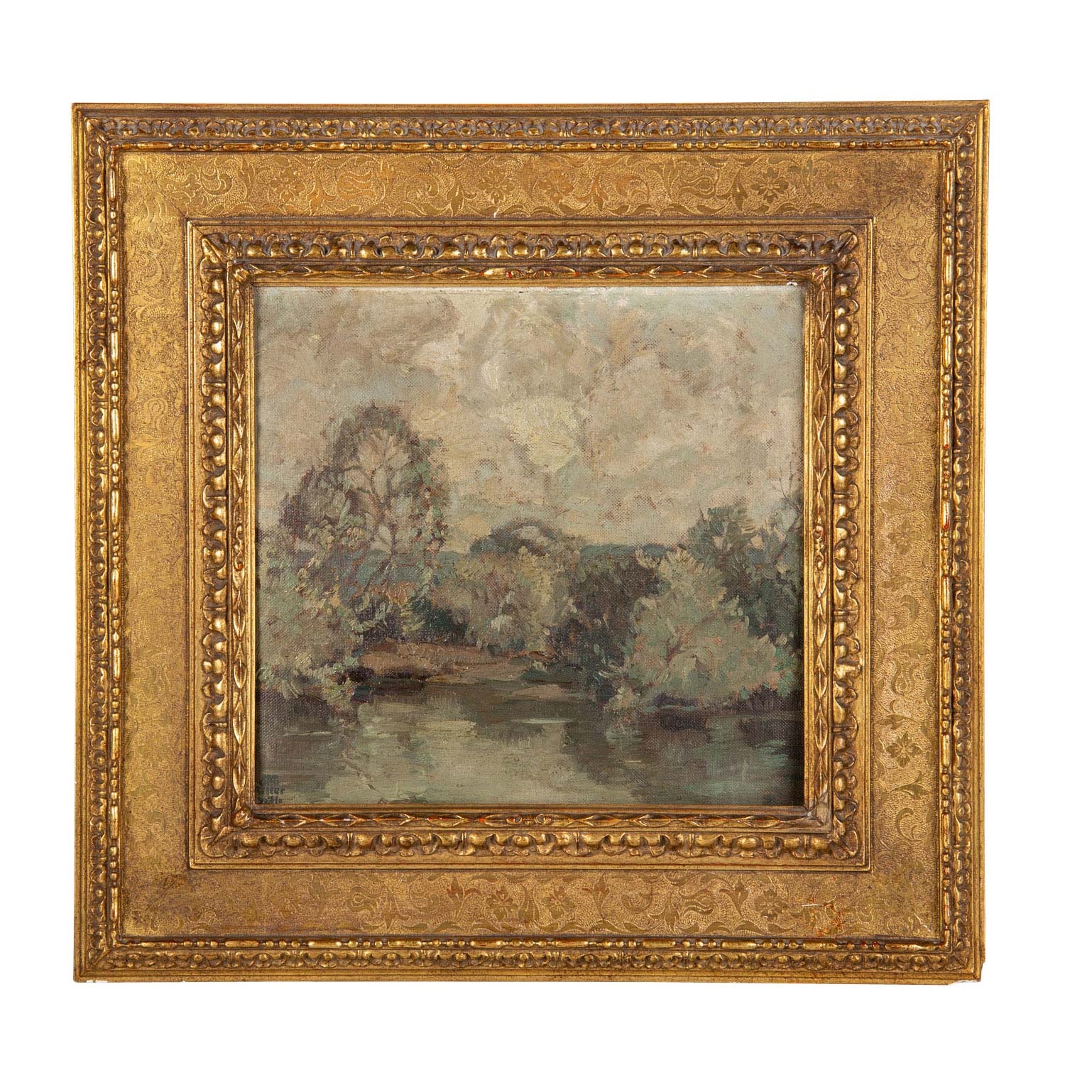 Oil on cardboard, HxW: 32/33 cm. Normal signs of age, frame, HxW: 52/54 cm.