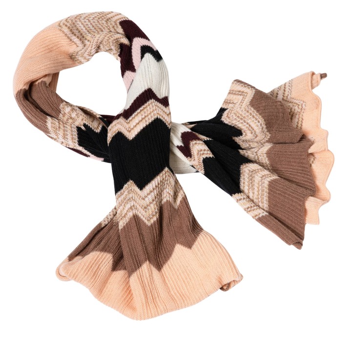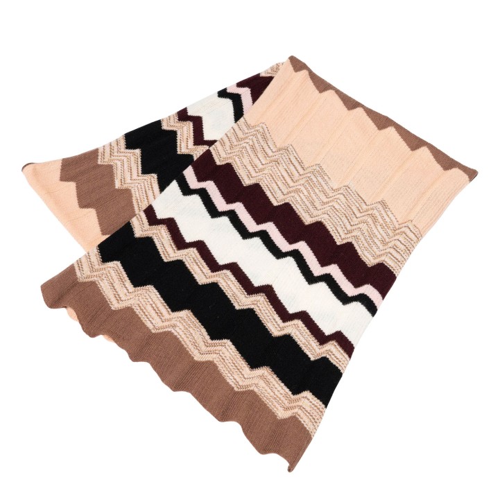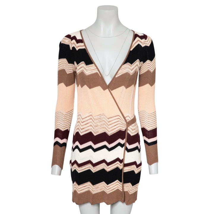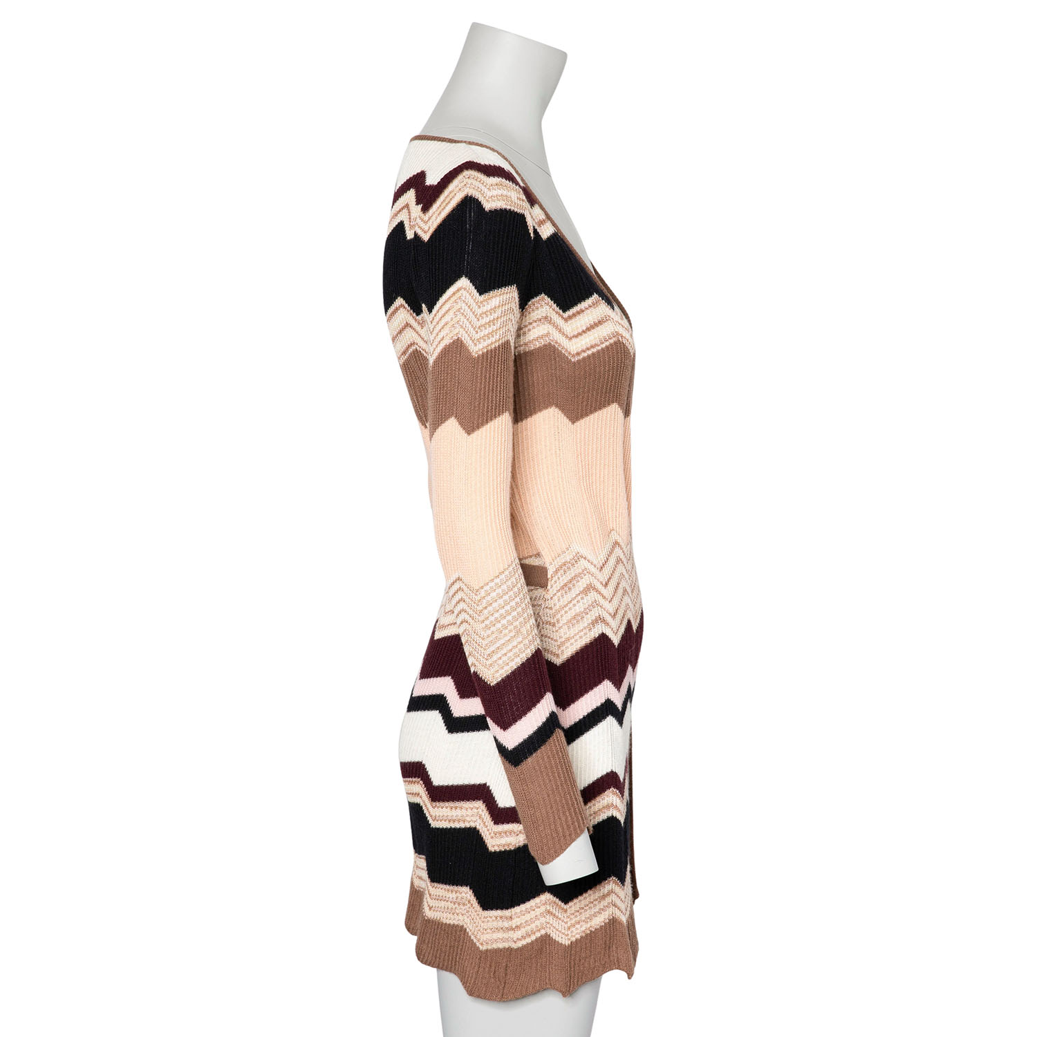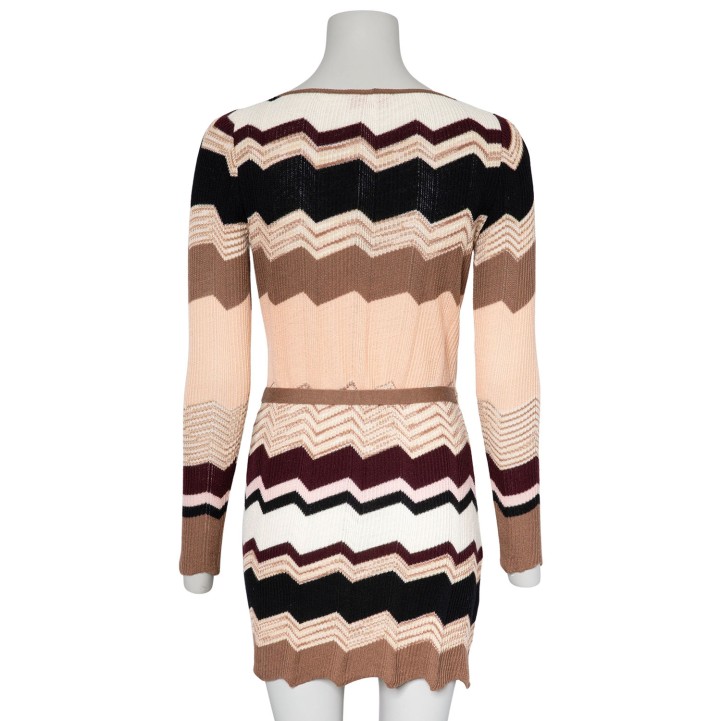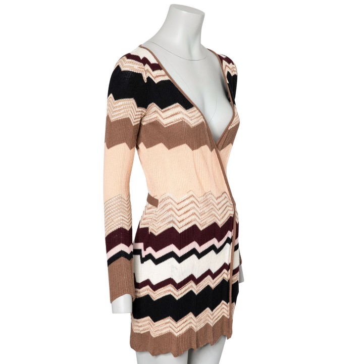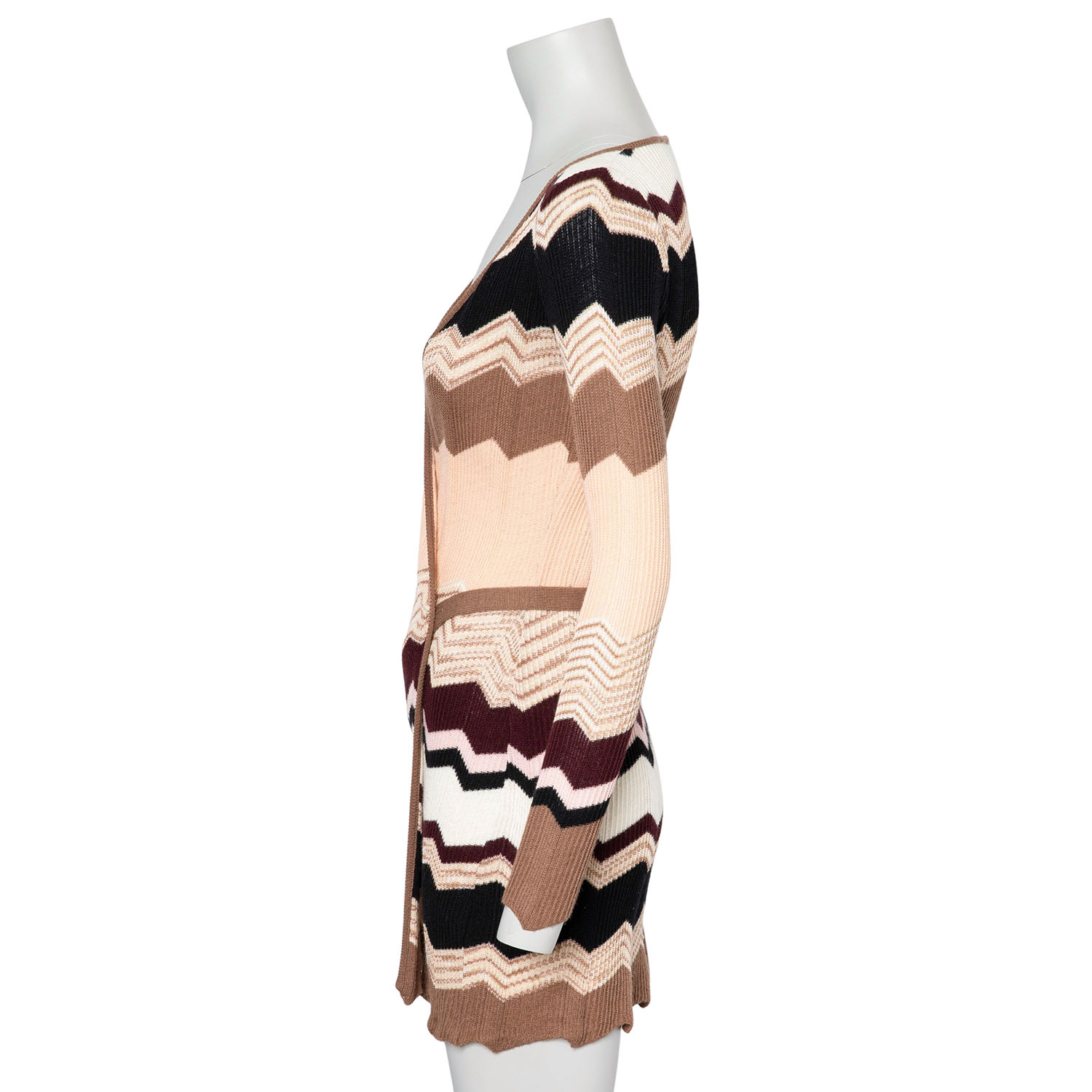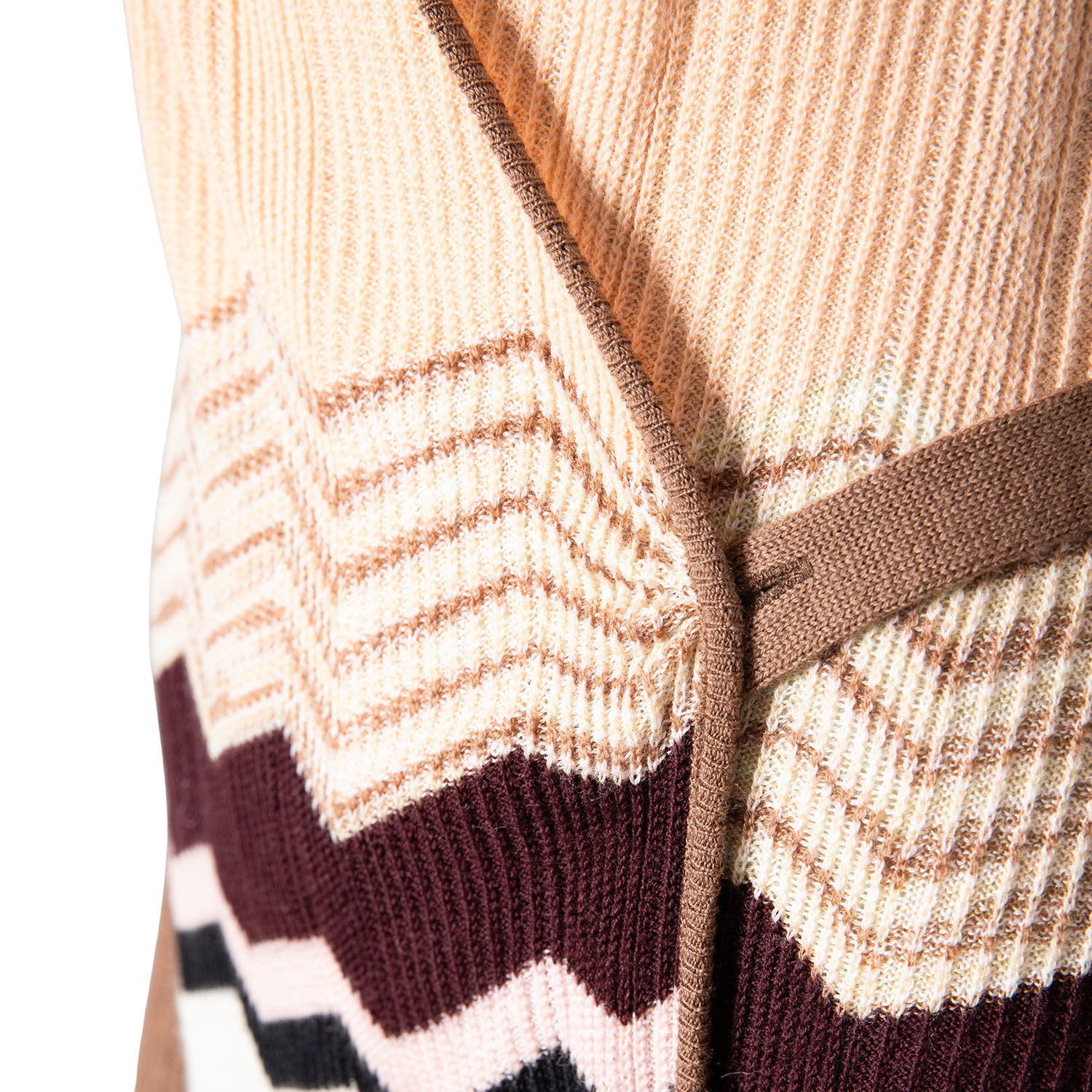 MISSONI cardigan, size M. Fine knit with classic multicolor pattern. Integrated belt. Scarf included. Good condition.
