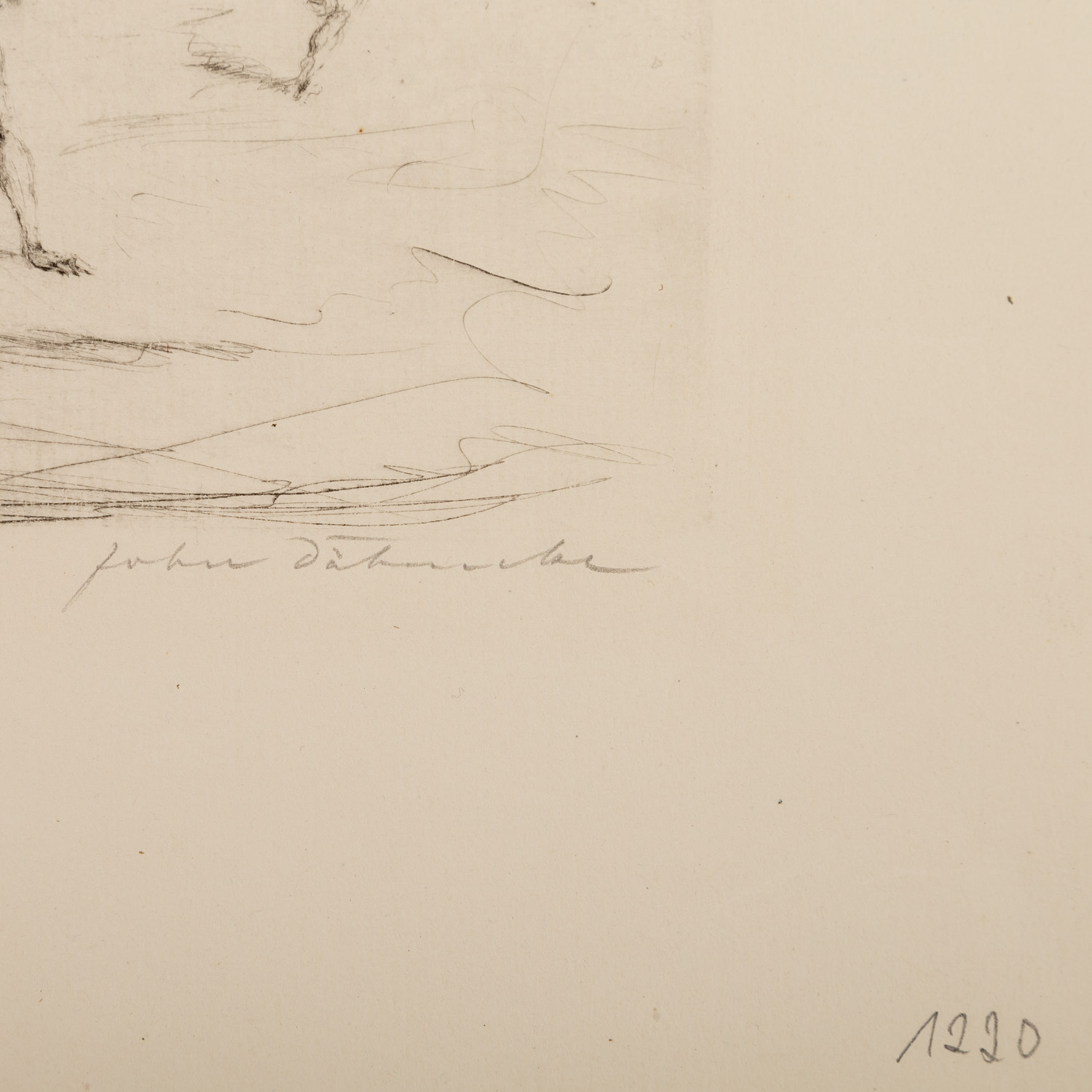 Mixed lot of 3 drawings and graphics: DÄHMCKE, STEINBECK, WENCK, 1920s / 30s, 1x JOHN DÄHMCKE (1887-1969), ""robbery"", etching / laid paper (watermark on the edge: Johann Wilhelm), signed by hand in pencil, in pencil num. 49-50, inscribed at the lower edge, HxW: plate approx. 12.5x19 cm, sheet approx. 23x31 cm; 1x ALBERT STEINBECK (1897-?),