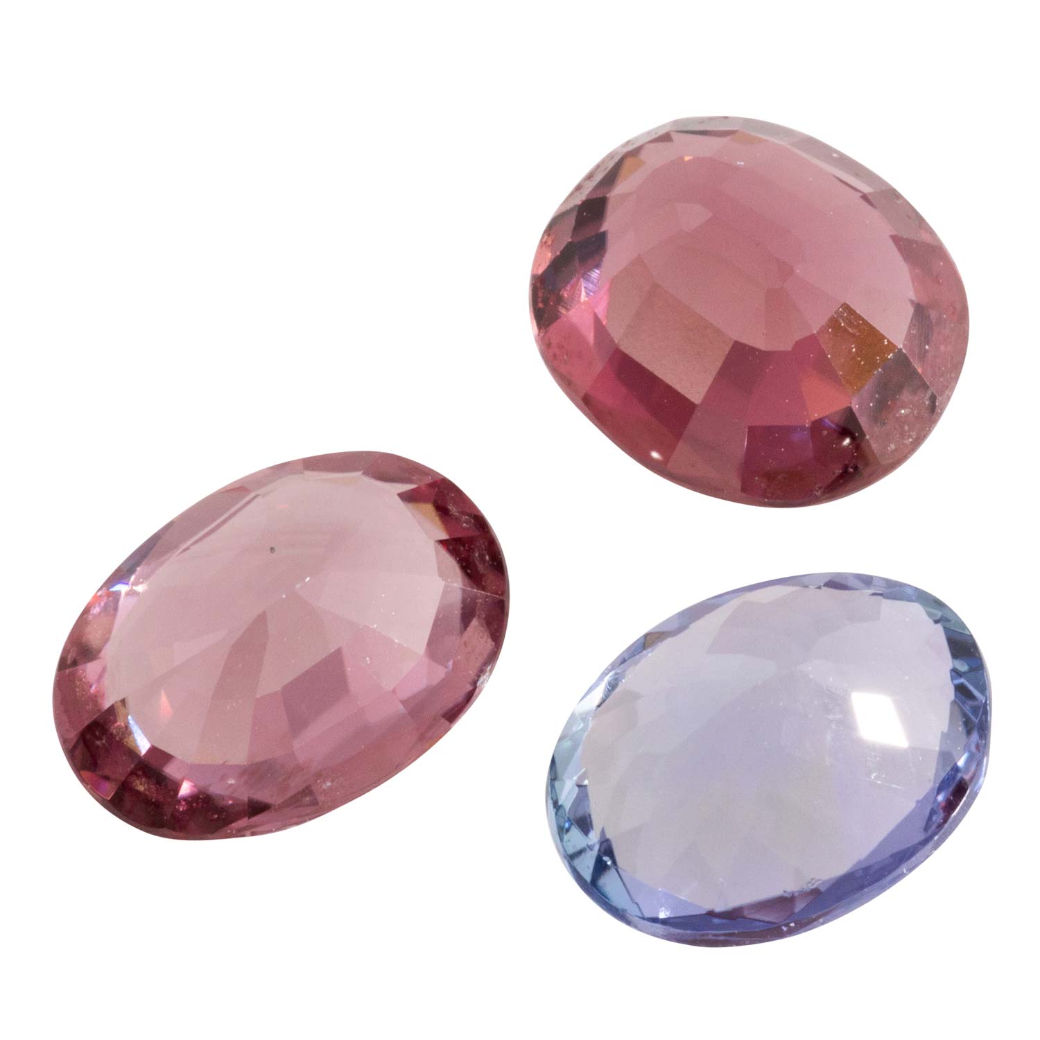 Bundle of 3 oval fac. spinels, totall. c. 4.8 ct, different hues, few nat. growth features, partly distinct pleochroism, good condition. Replacement value: c. 60 € per ct. All stones without detailed gemological testing!