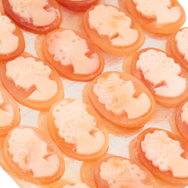 Lot of 71 shell gems, each approx. 15 x 10 mm, slight differences in color and thickness. All stones without detailed gemological testing!