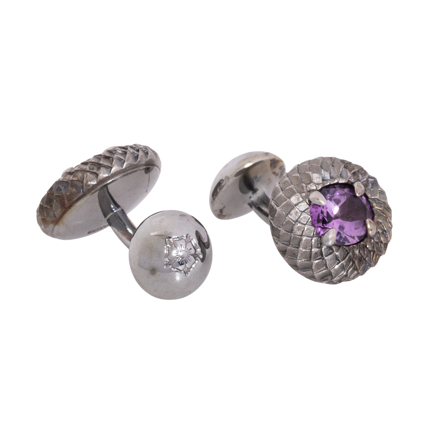 MK-011-08-M01 Pair of cufflinks India bronze black rhodium-plated with amethyst;