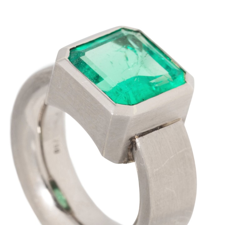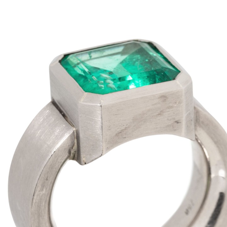 Modern ring, bes, with Colombian emerald 5.05 ct.