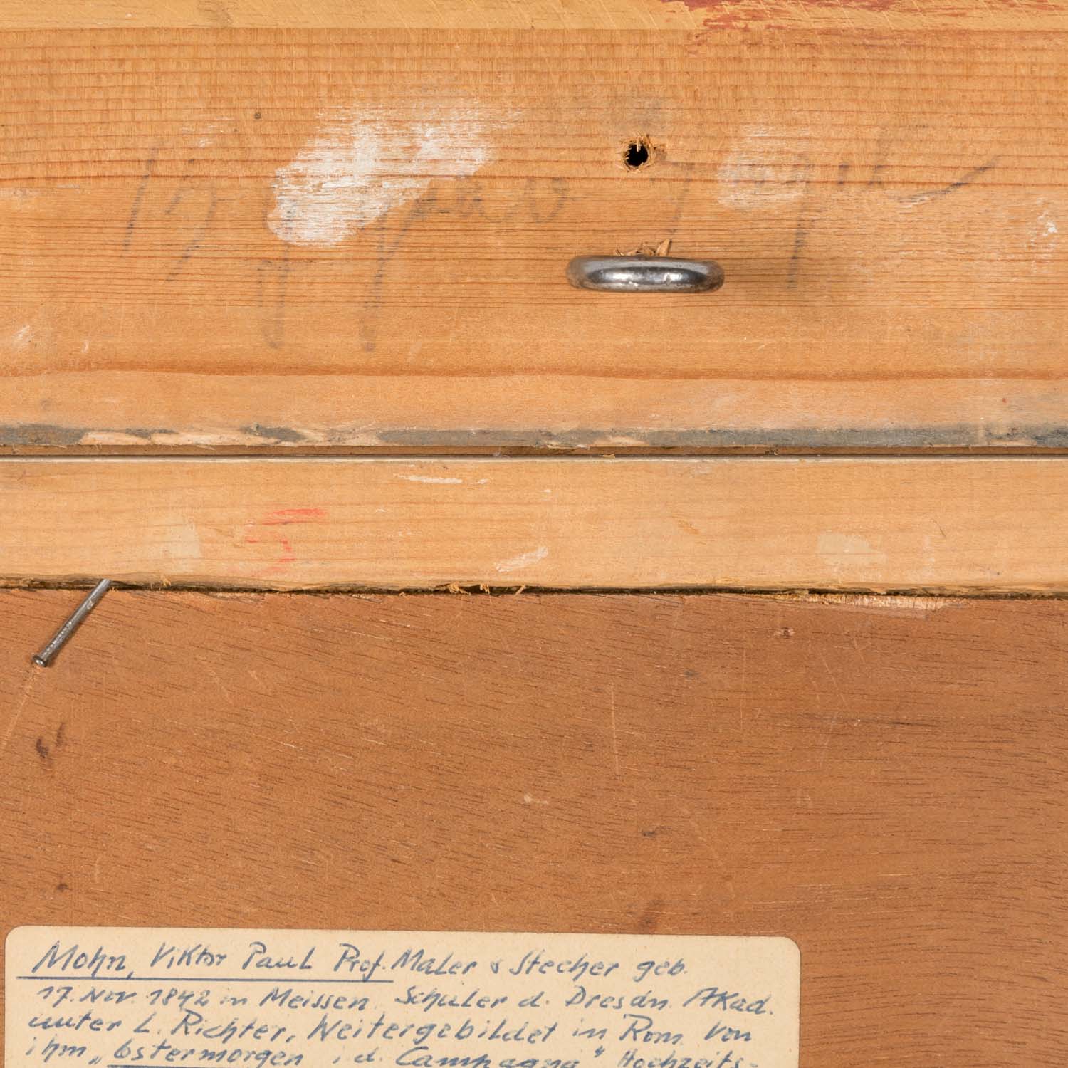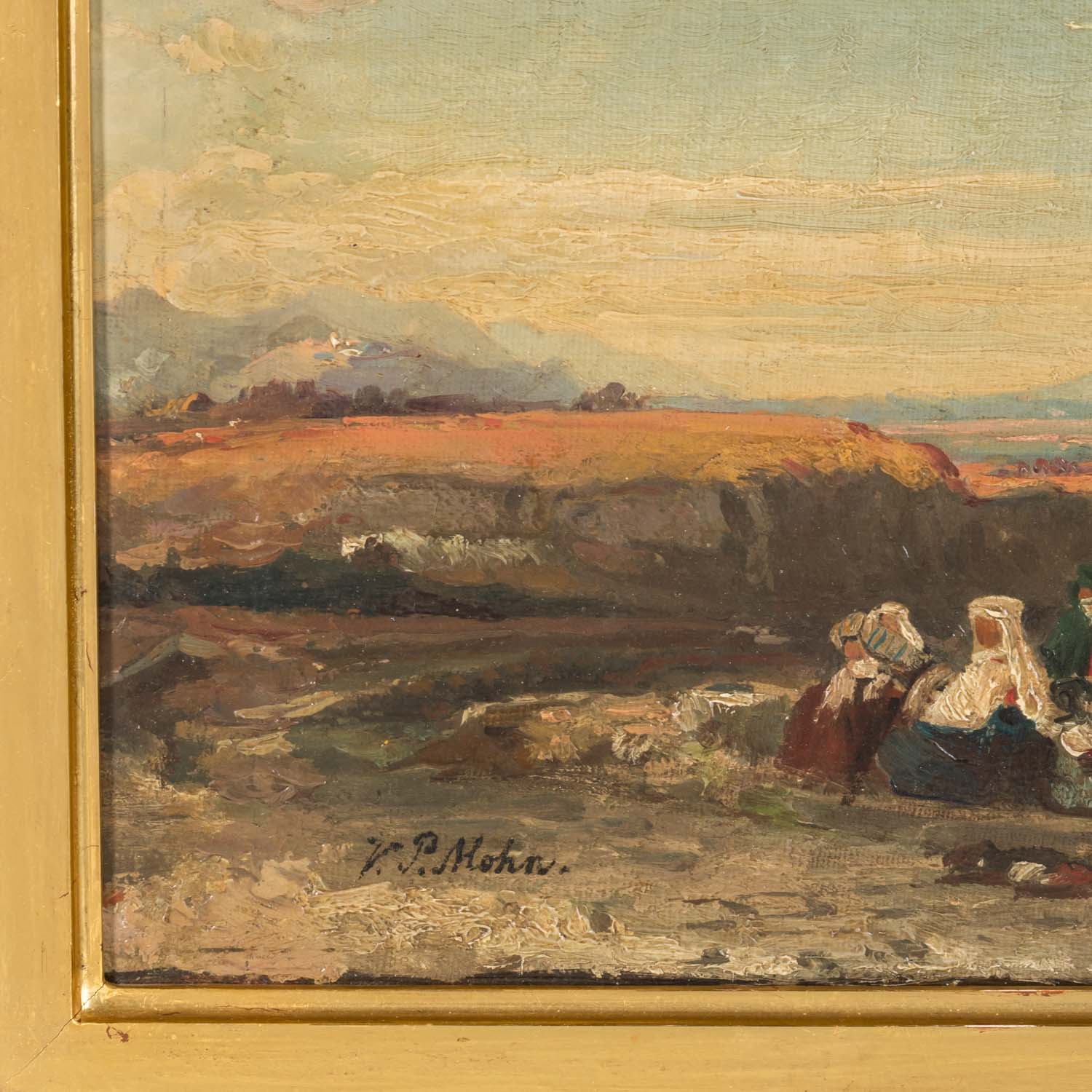 Oil on canvas, this mounted on wood, signed ‘V.P. Mohn’, HxW: 23/33 cm. Frame, HxW: 40/50 cm.