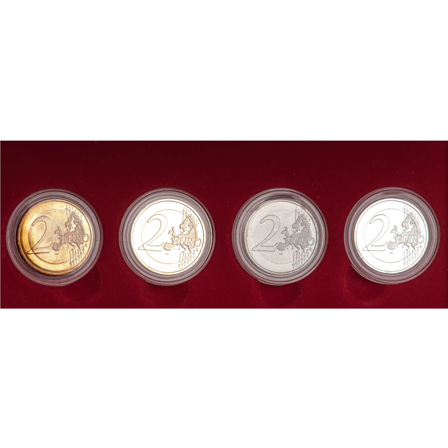 Monaco - 4-piece set with €2 commemorative coins 2012, each FDC, in capsules, refined with gold, rose gold, ruthenium and platinum; in original packaging with certificate. Edition: 500 pieces.