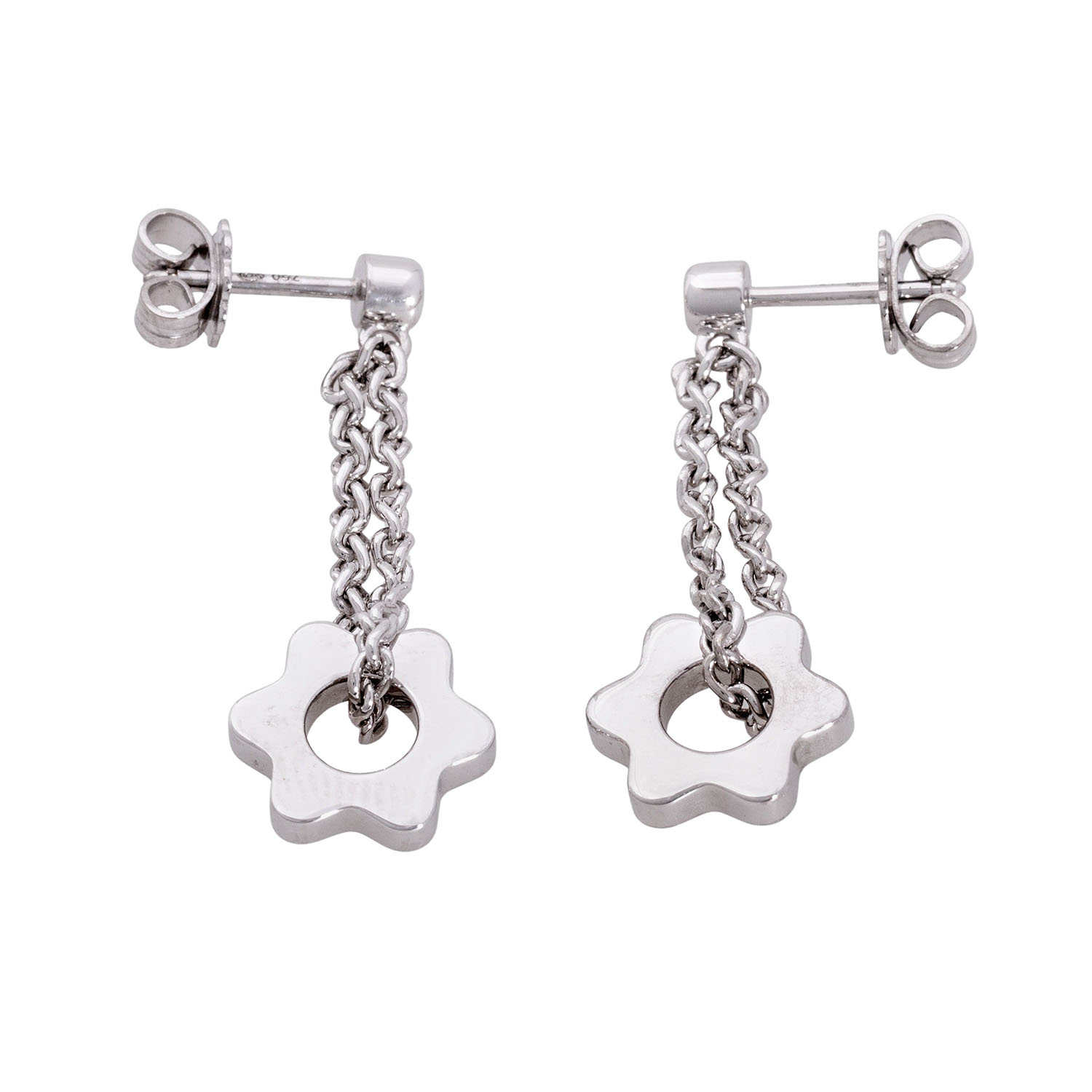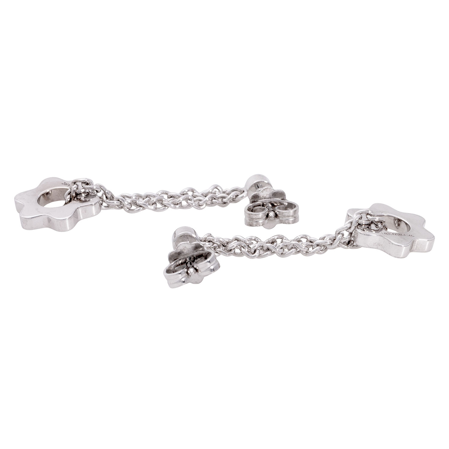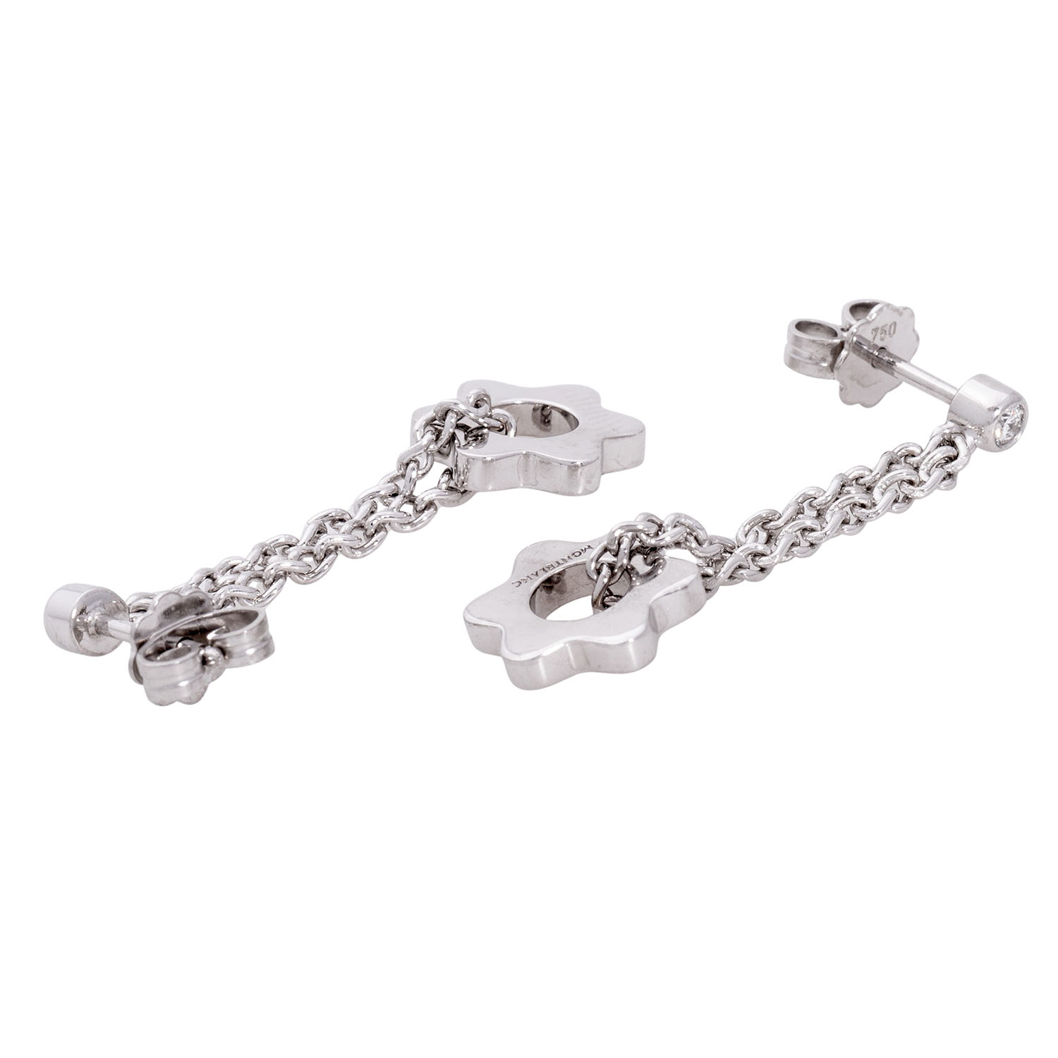 MONTBLANC pair of ear studs 'Logo Star' with 2 brillant-cut diamonds totalling approx. 0.16 ct, very good colour and clarity, 18K white gold, 7.6 g, L: approx. 36.3 mm, W: approx. 3.5 - 11.9 mm, 21st century, minor signs of wear, with hallmark 'MONTBLANC'.