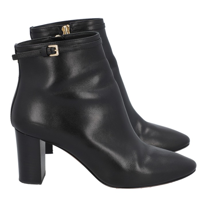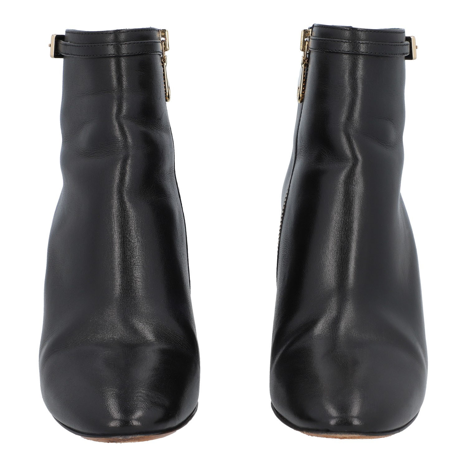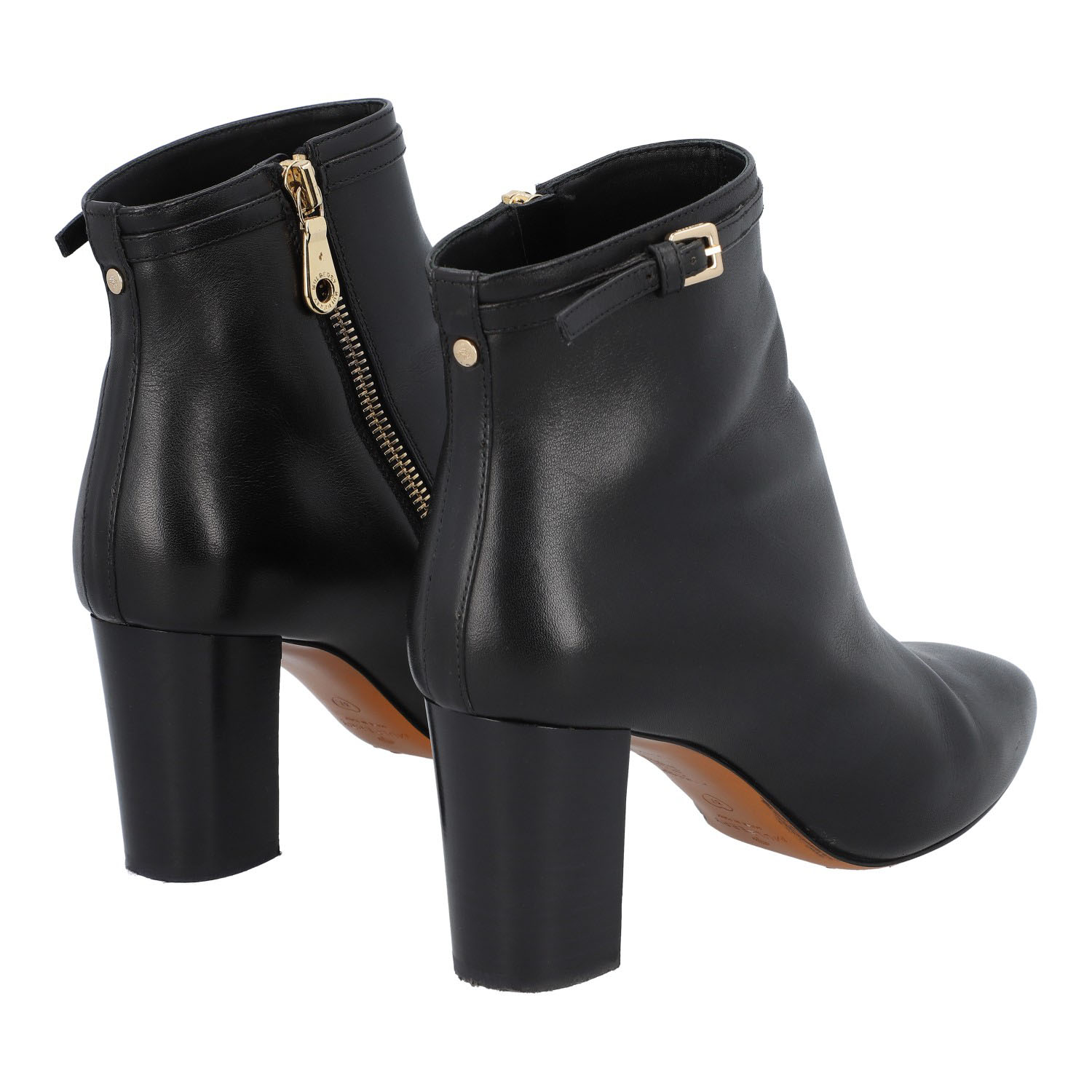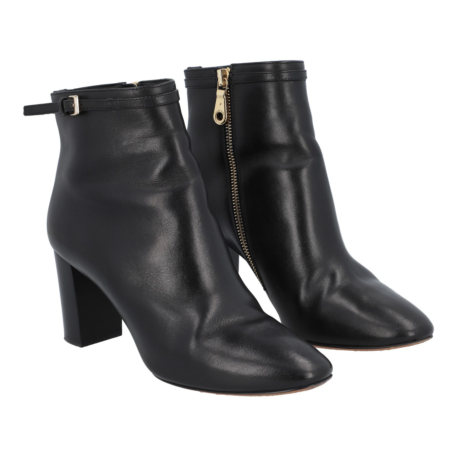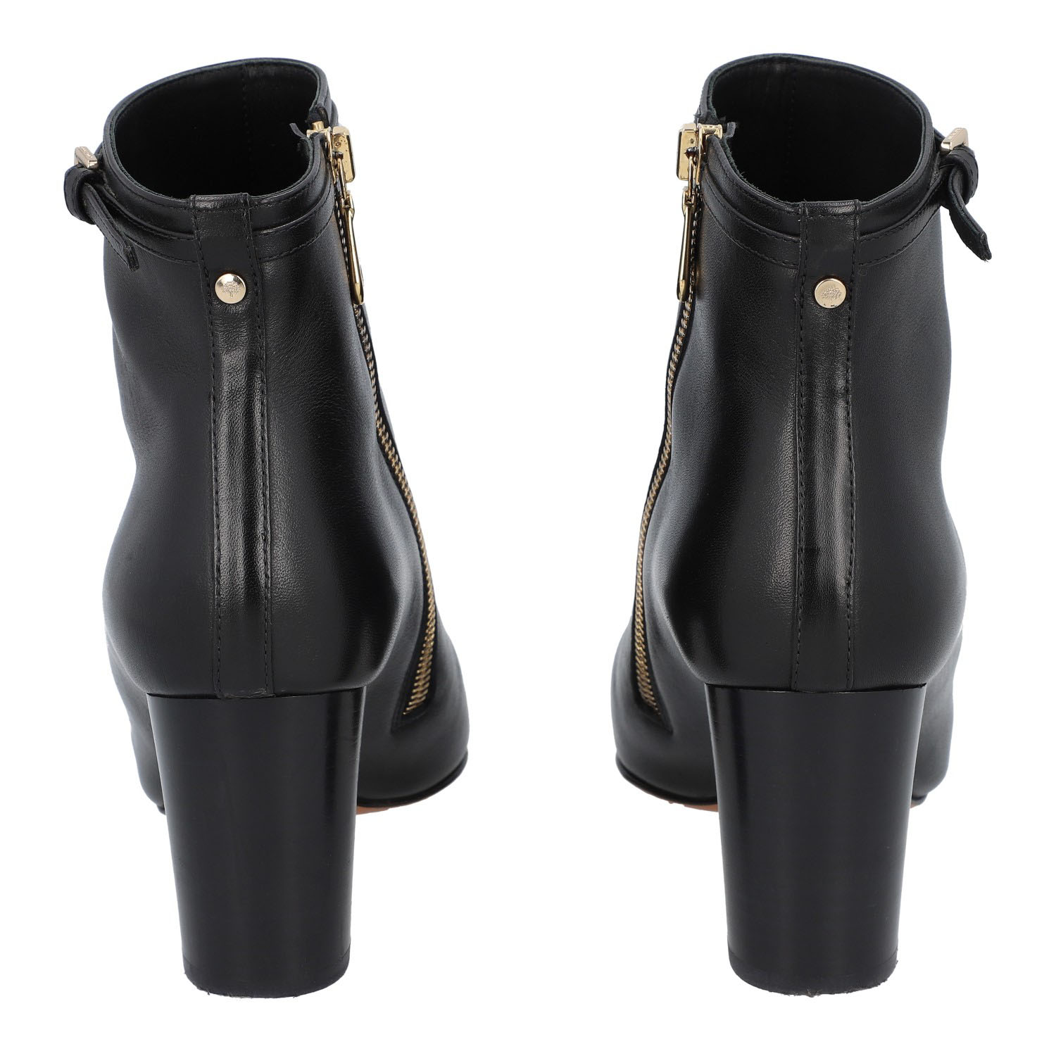 MULBERRY boots, size 37. Classic ankle boots made of black leather with gold-colored hardware. Side zipper. Heel height approx. 7.5 cm. Slight signs of wear.