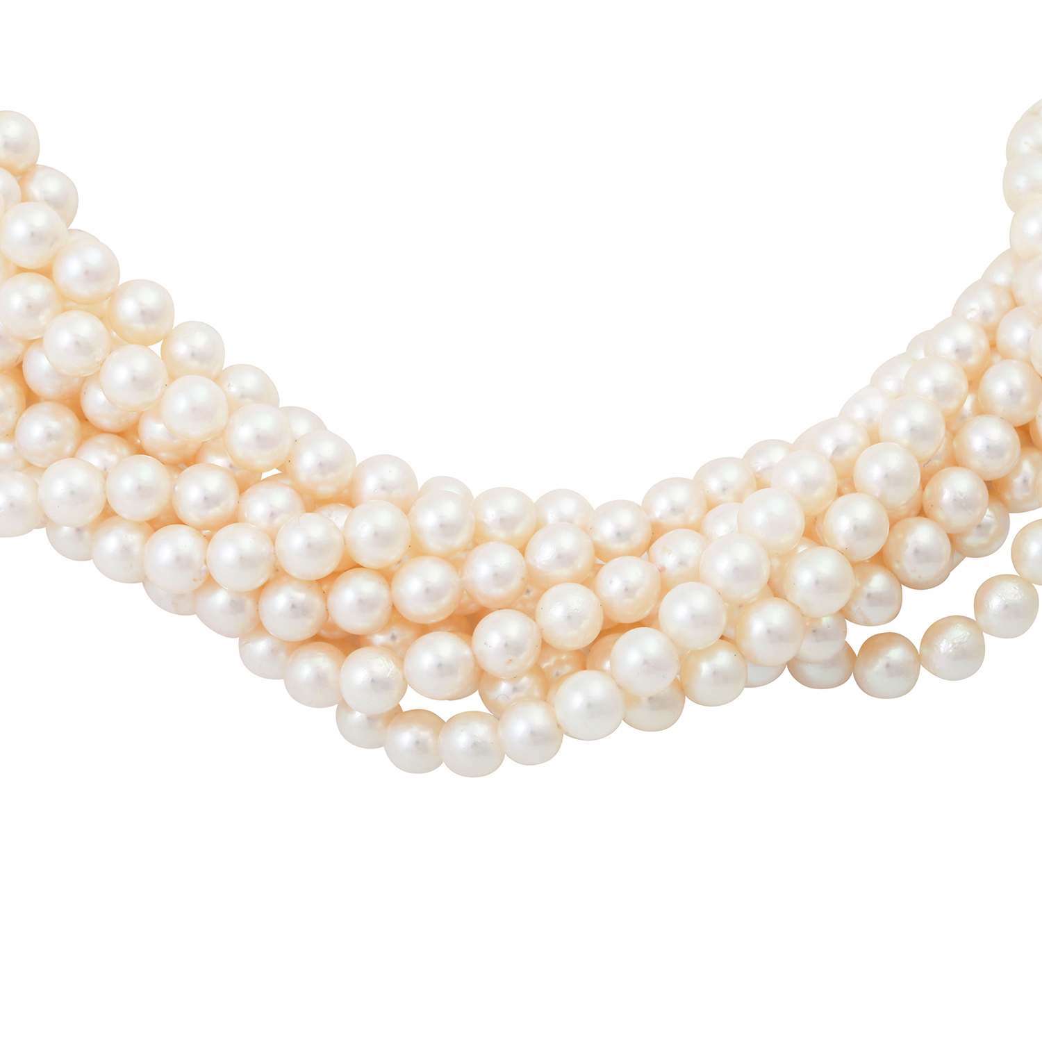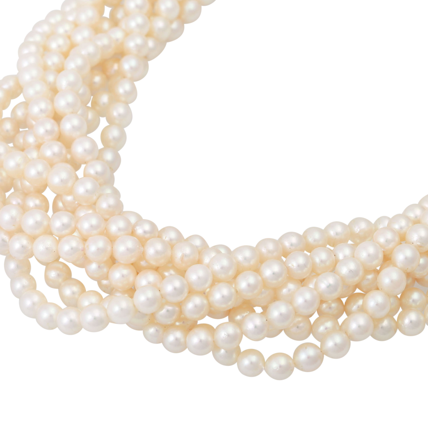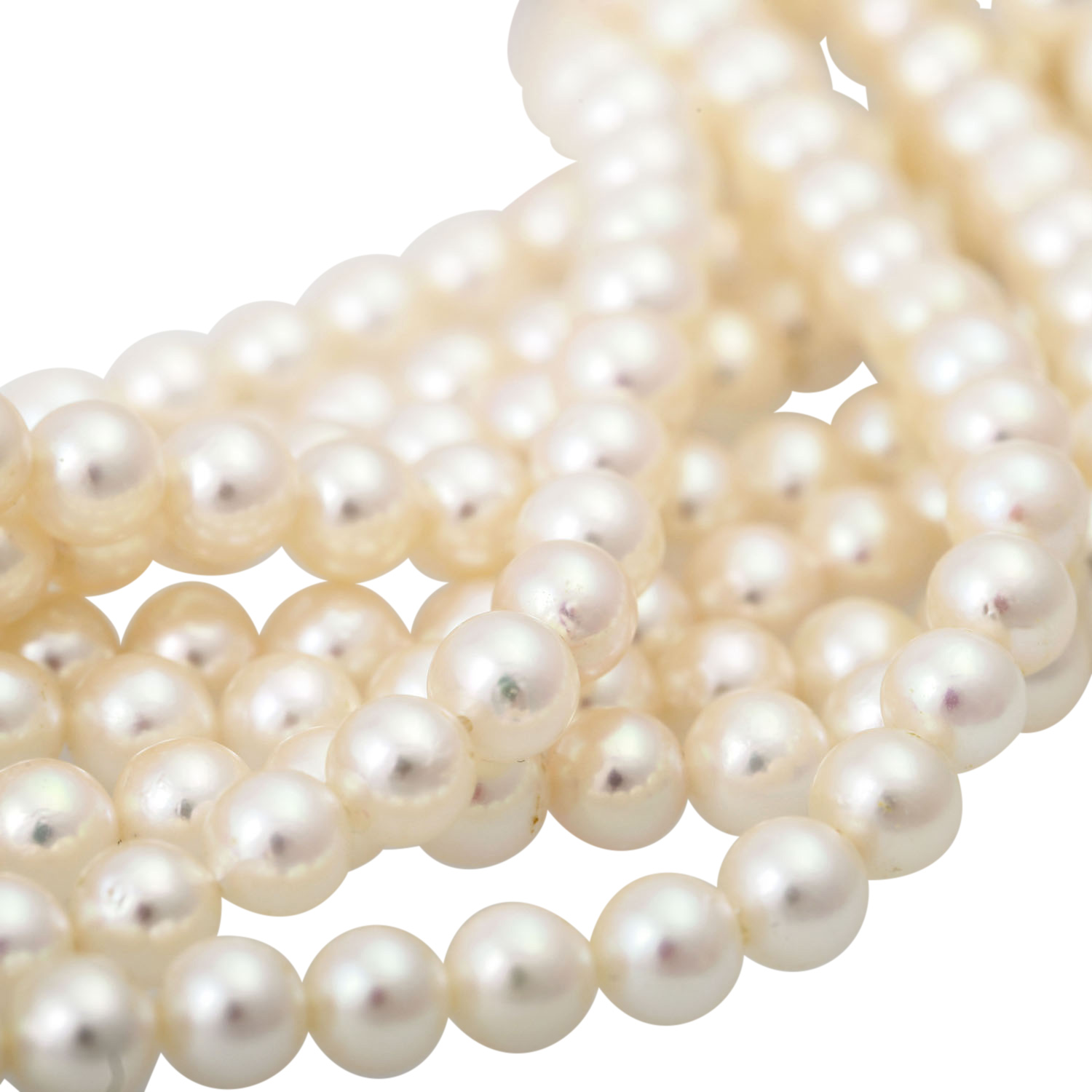 Pearl necklace made from 51 Akoya cultured pearls, cream-colored,
