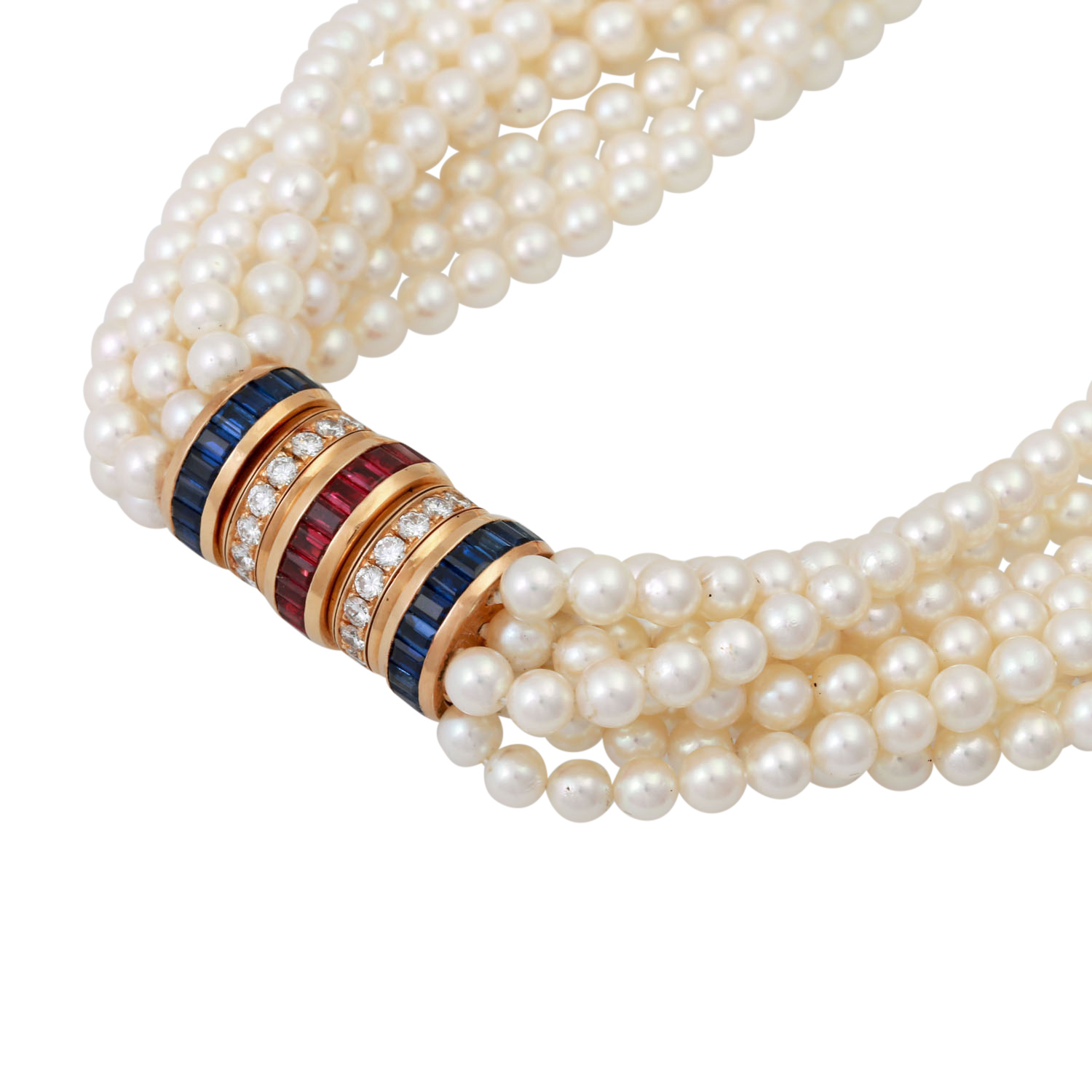 Necklace with 2 rows of fine Akoya pearls approx. 8.5 mm,