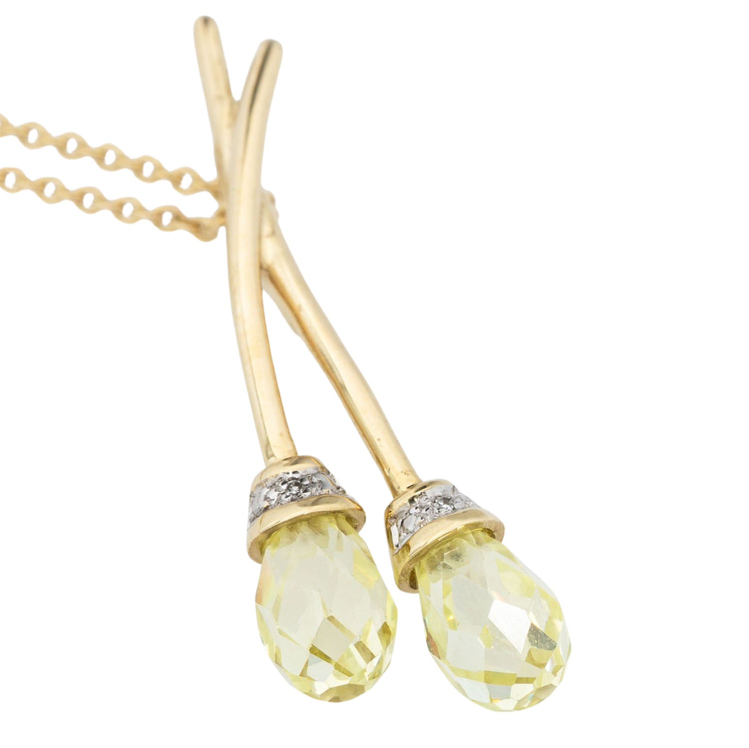 Nacklace and pendant with 4 cubic zirconia and 2 single-cut diamonds totalling approx. 0.02 ct, 14K yellow gold/white gold, 4.8 g, anchor chain L: approx. 45 cm, W: approx. 1.1 mm, eyelet D: approx. 3.1 mm, pendant L: approx. 32.4 mm, W: approx. 1.6 - 11.3 mm, eyelet D: approx. 3.2 mm, 20th/21st century, minimal signs of wear.