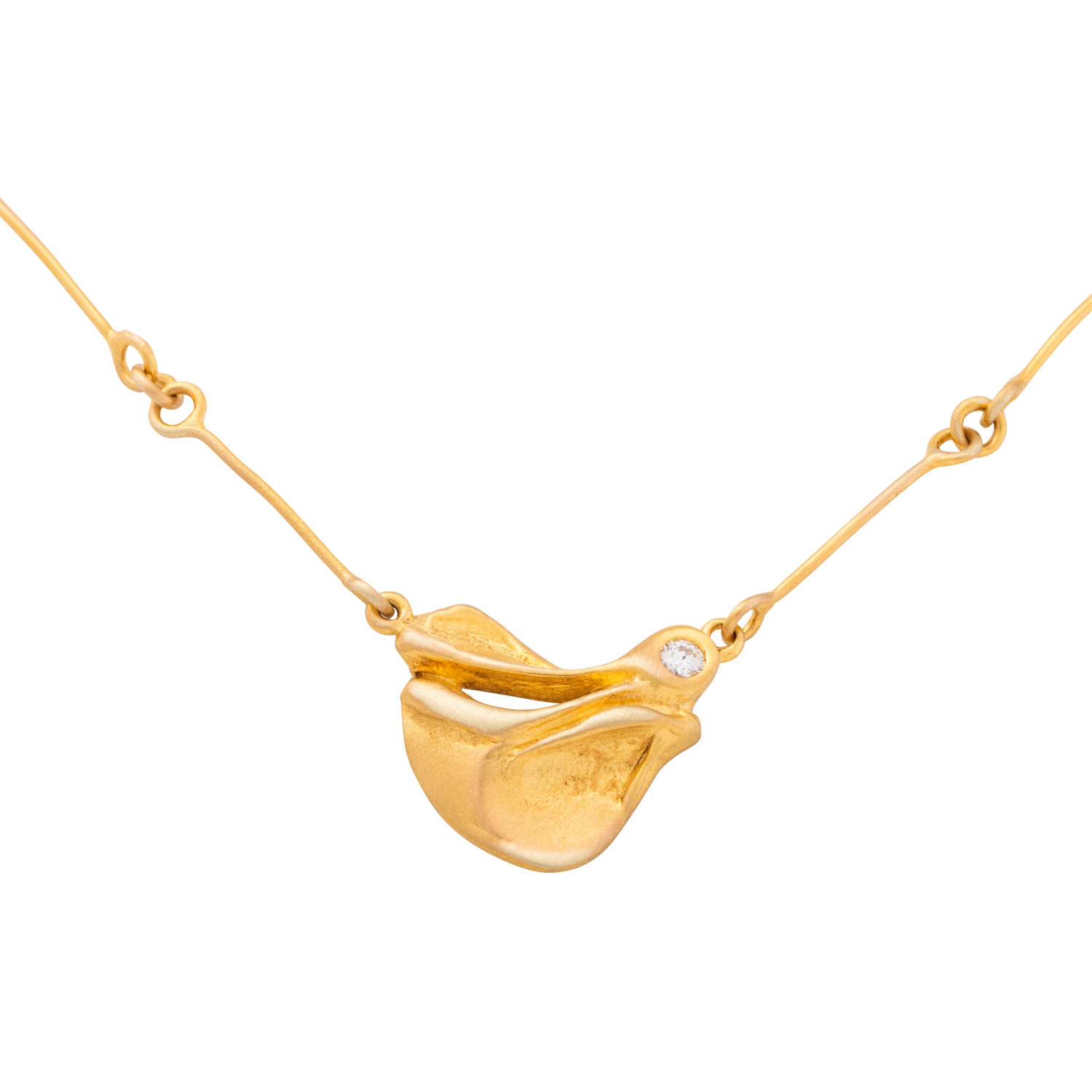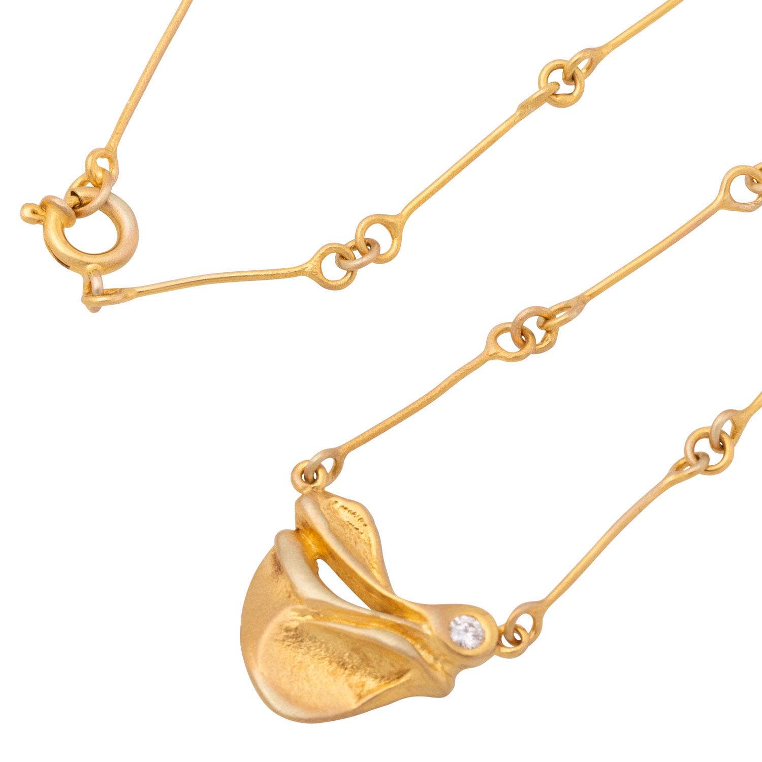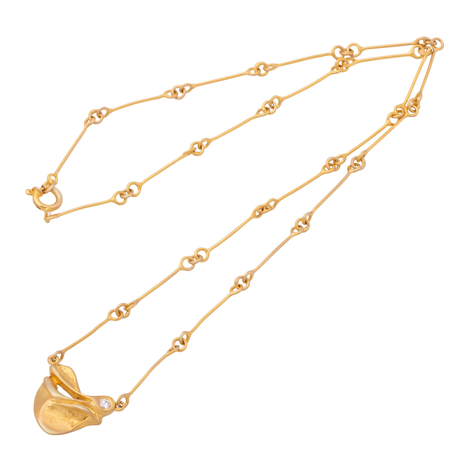 Nacklace and pendant with brilliant-cut diamond ca. 0.03 ct, good colour and clarity, 14K yellow gold, 5.7 g, chain: L: ca. 40.5 cm, W: ca. 0.06 cm, pendant: L: ca. 1.3 cm, W: ca. 1.5 cm, 21st century, minimal signs of wear, with hallmark.