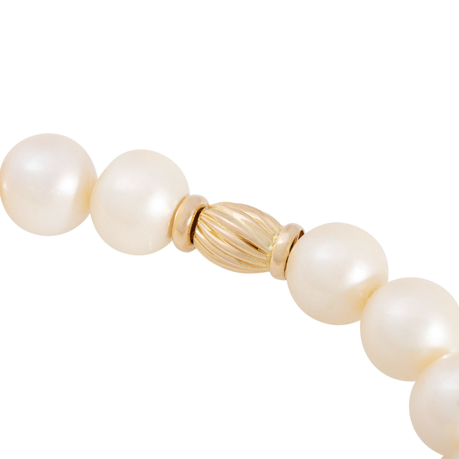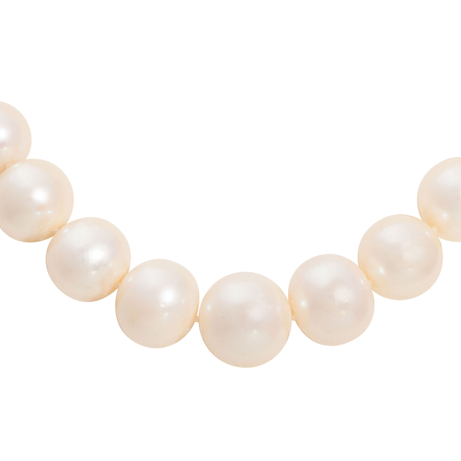 Necklace of South Sea cultured pearls graduating from 12.5 to 15 mm, partly slightly oval, L: 44 cm, clasp 14K yellow gold, 108.5 g, 20th/21st century, signs of wear.