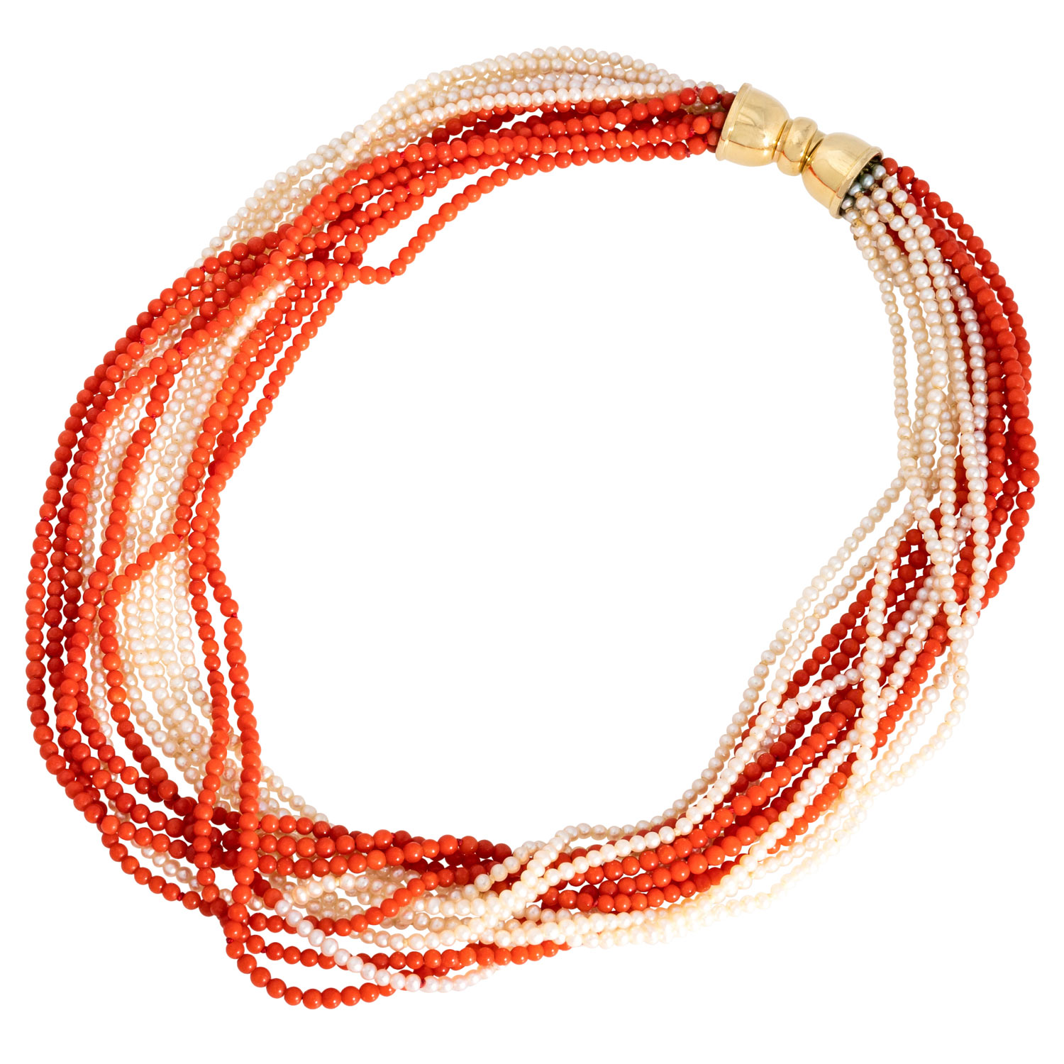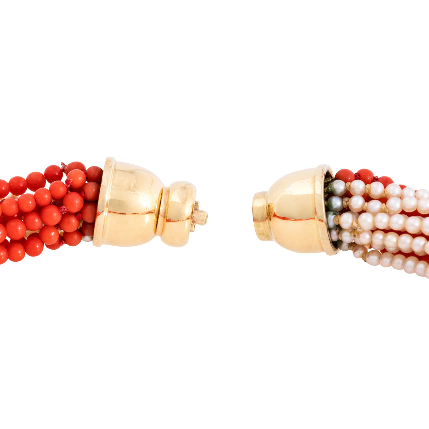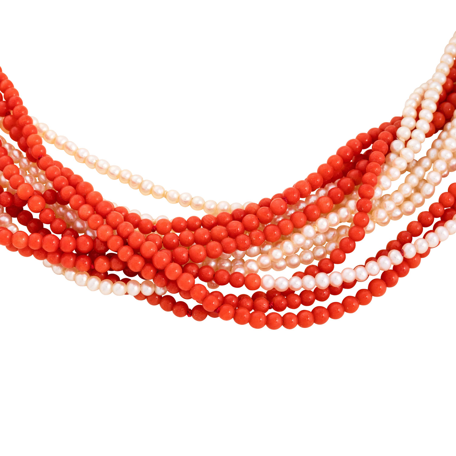 Necklace made of pearls and corals of ca. 2-3 mm, clasp 14K YG, necklace L: ca. 41 cm, 1990s, incl. replacement value appraisal of 3,860 € and case. IMPORT/EXPORT RESTRICTIONS OUTSIDE THE EU!