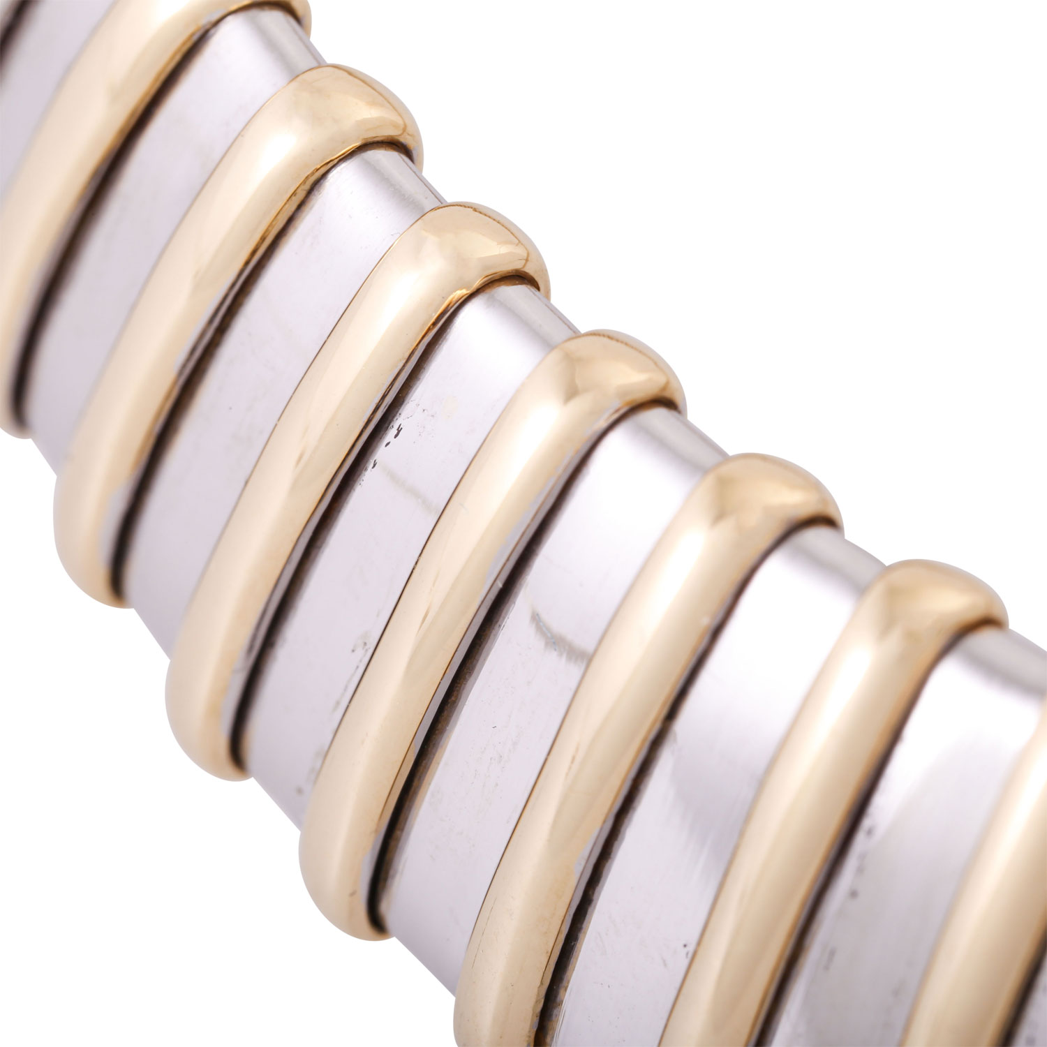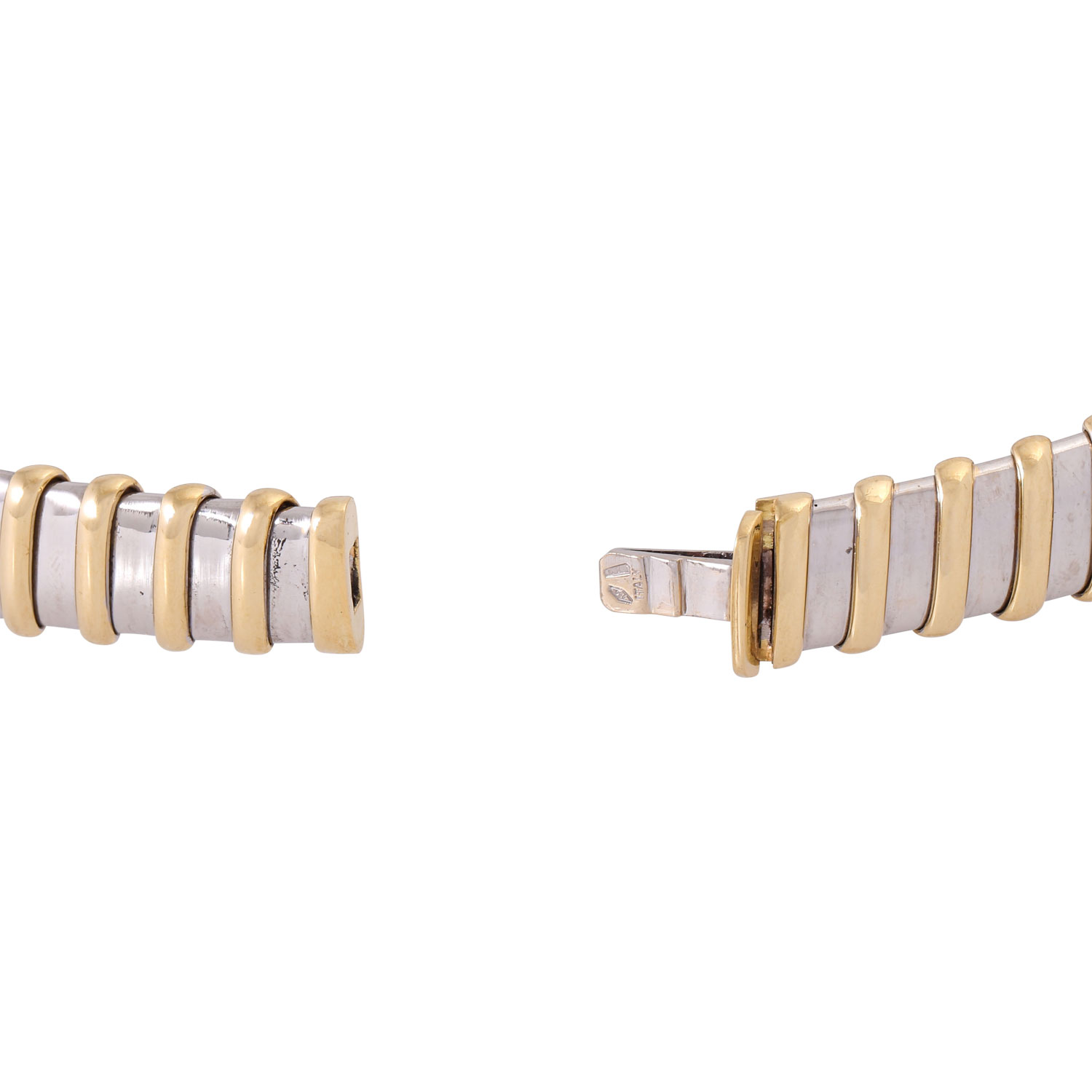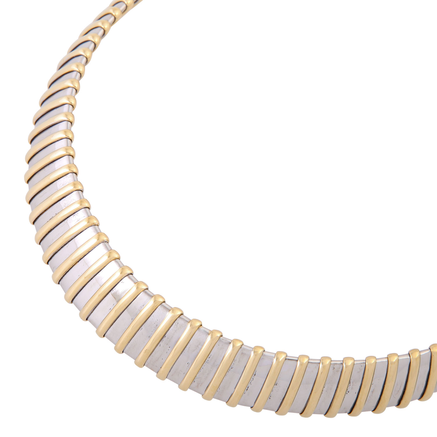Necklace spiral winding yellow/white, 18K yellow and white gold, 103.3 g, L: 41 cm, W: according to course from 11 to 20 mm, box clasp with double catch, late 20th century, minimal signs of wear.