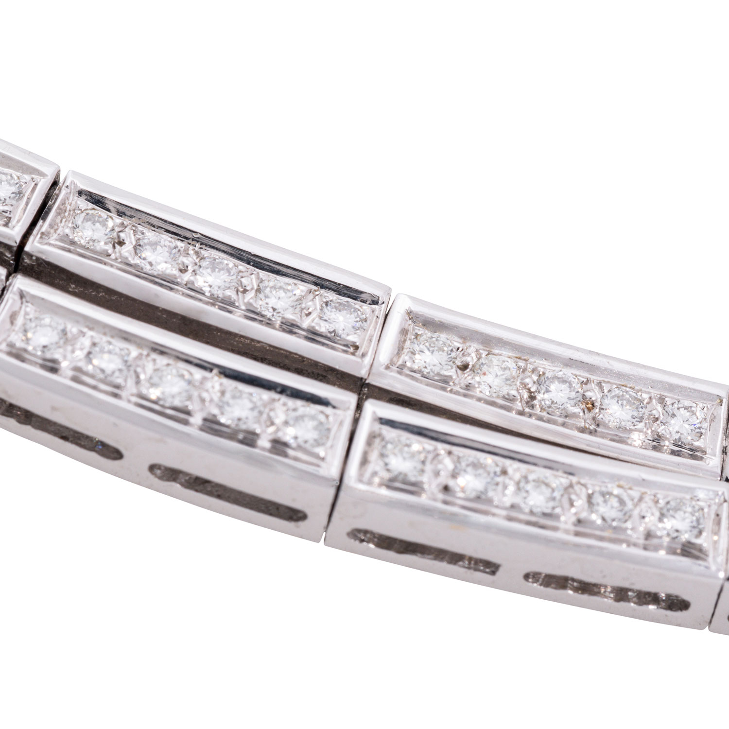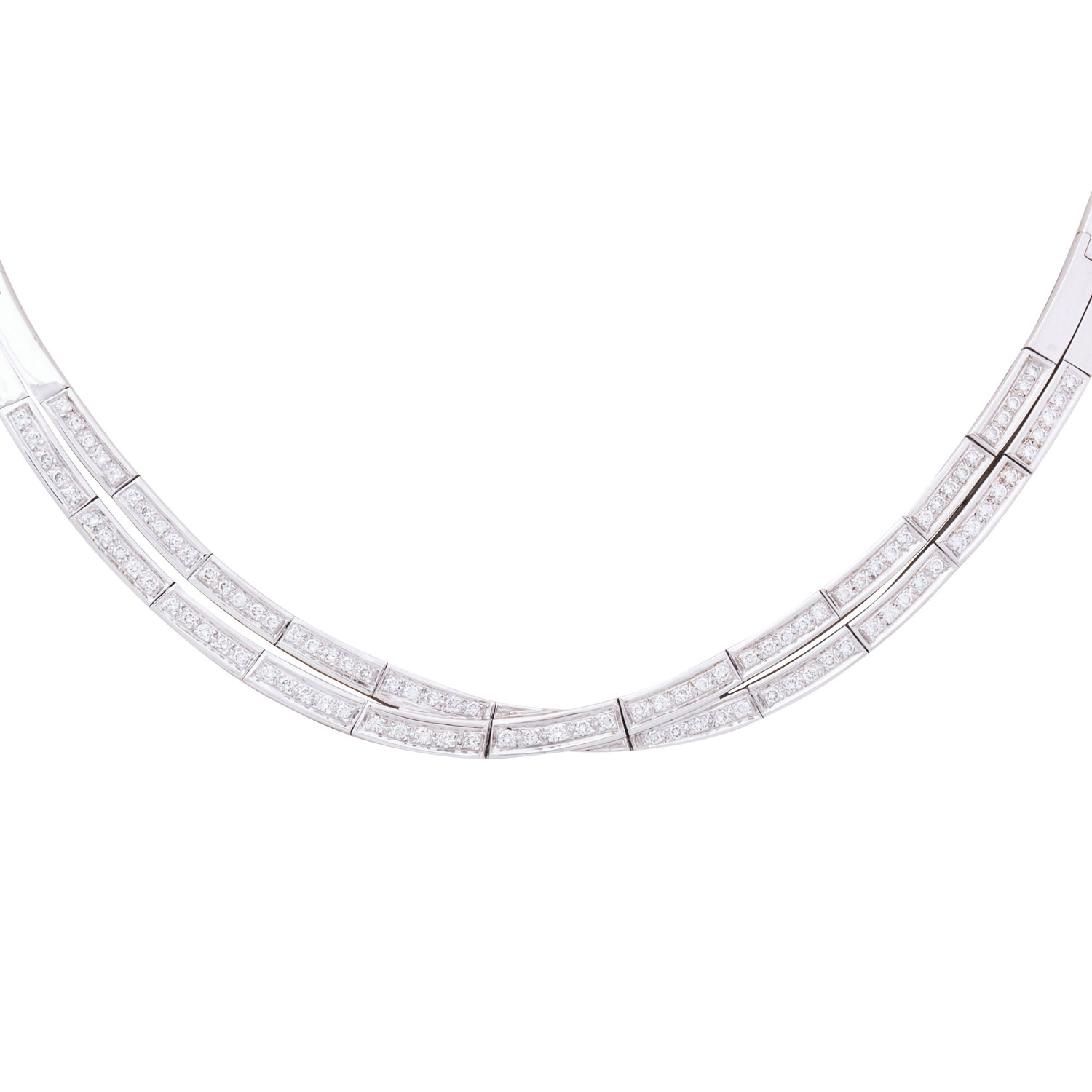 Necklace with 105 brilliant cut diamonds, totalling 1.64 ct (cert.), FW (F-G)/VVS, (cert.), 18K white gold, 84,6 g, L: 41 cm, box clasp with safety catch, 1998, minimal signs of wear, handcrafted, accessory: certificate of guarantee.