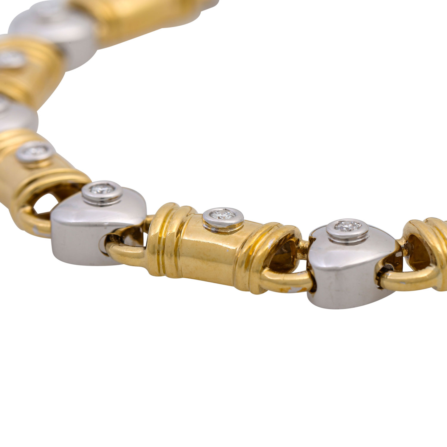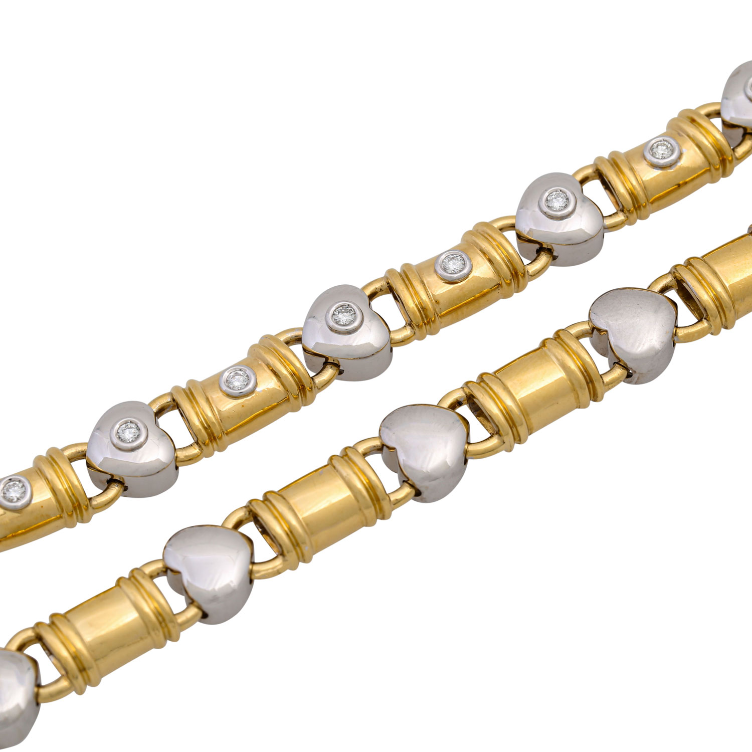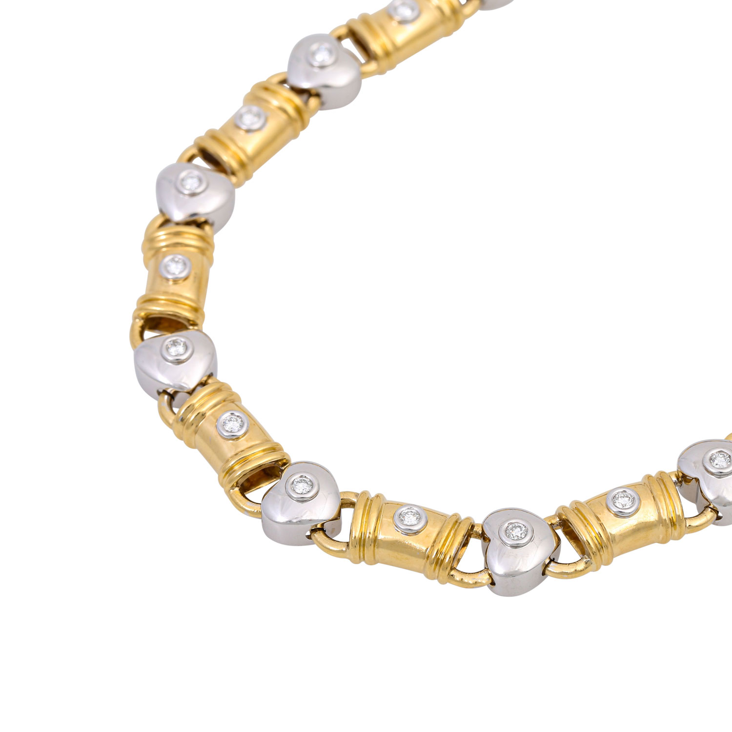 Necklace with 15 brilliant-cut diamonds totalling ca. 0.7 ct, ( engraved ) WHITE (H) /VVS, WG/GG 18K, 76.7 g, l: ca. 40 cm, late 20th century, minor signs of wear, handcrafted!