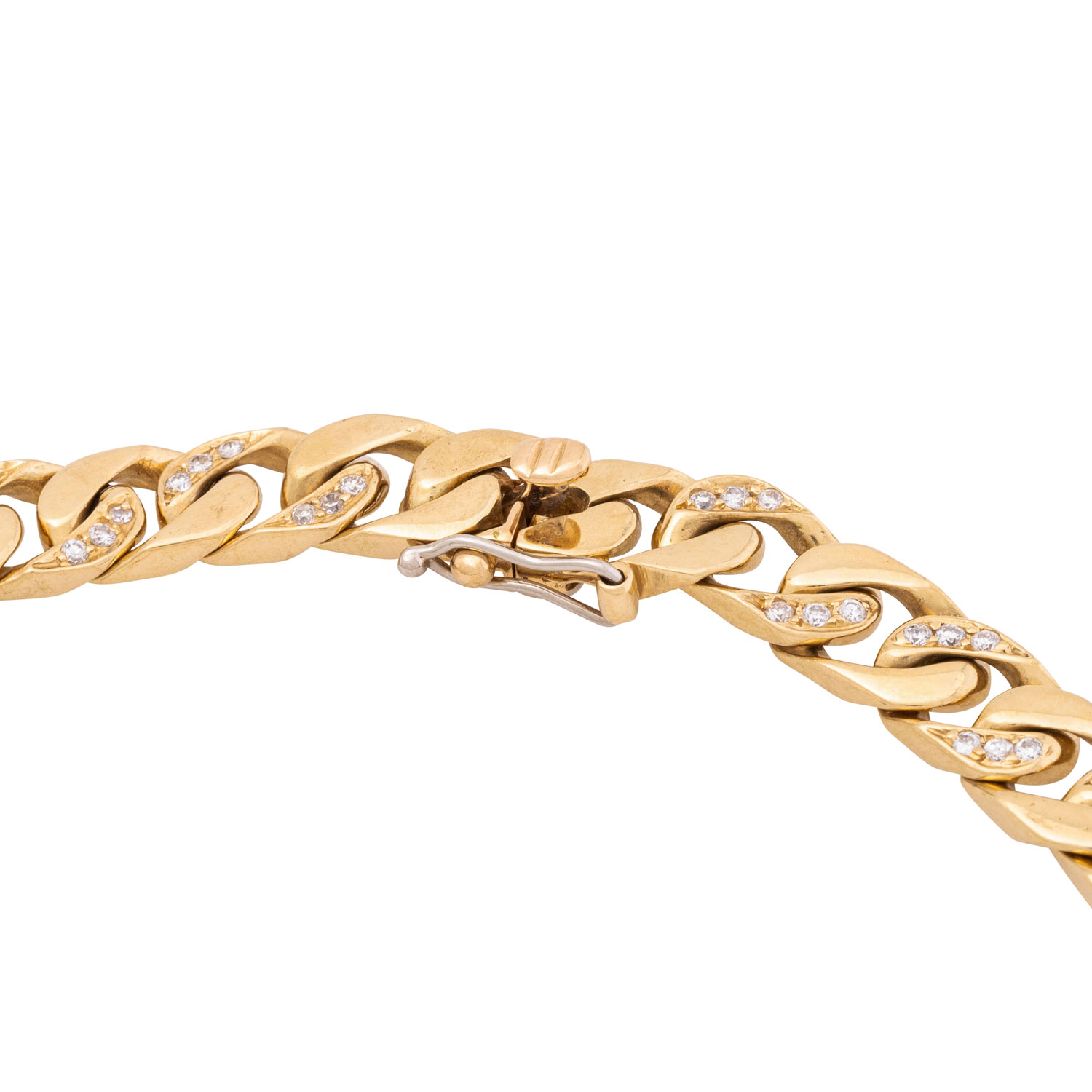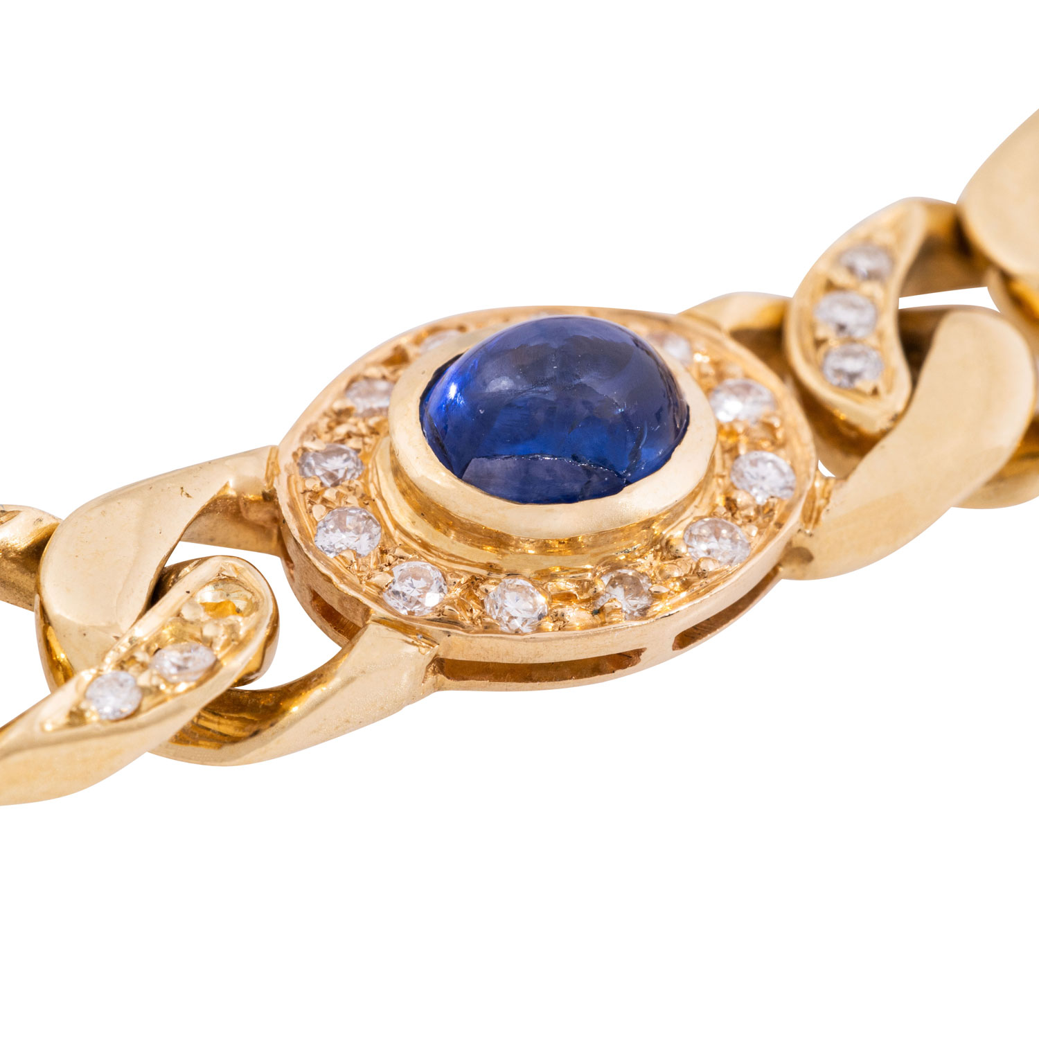 Necklace, curb chain with 3 sapphire cabochons and 36 octagonal diamonds
