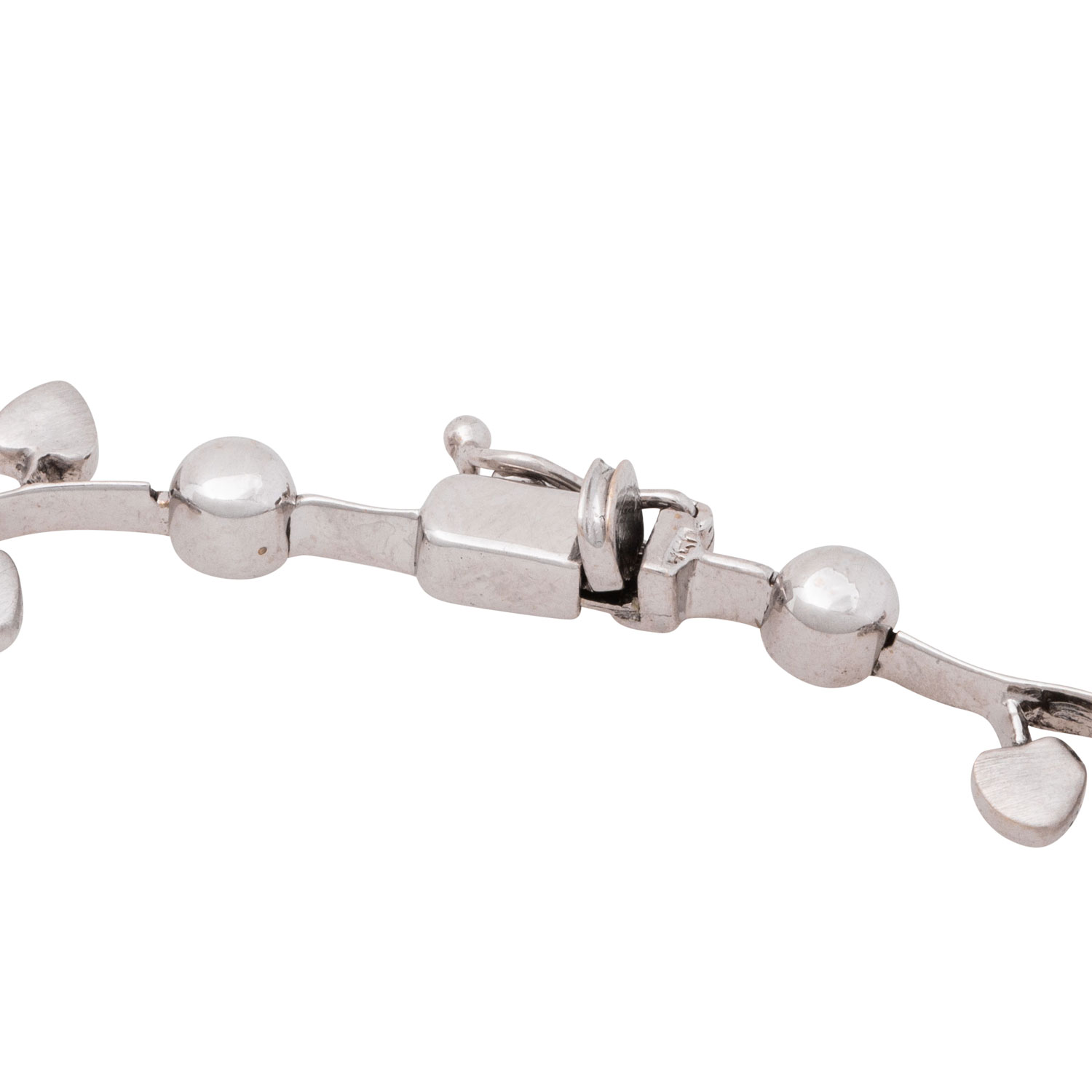 Necklace with 38 champagne-colored brilliant-cut diamonds totalling ca. 0.19 ct, ca. very light brown/P, WG 18K, 31.8 g, polished/satin finished, L: ca. 41 cm, W: ca. 1 cm, 21. century, minimal signs of wear.