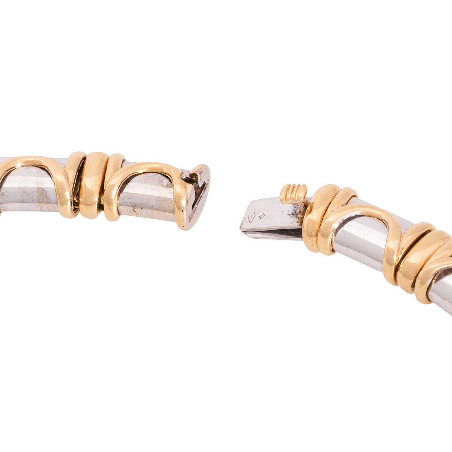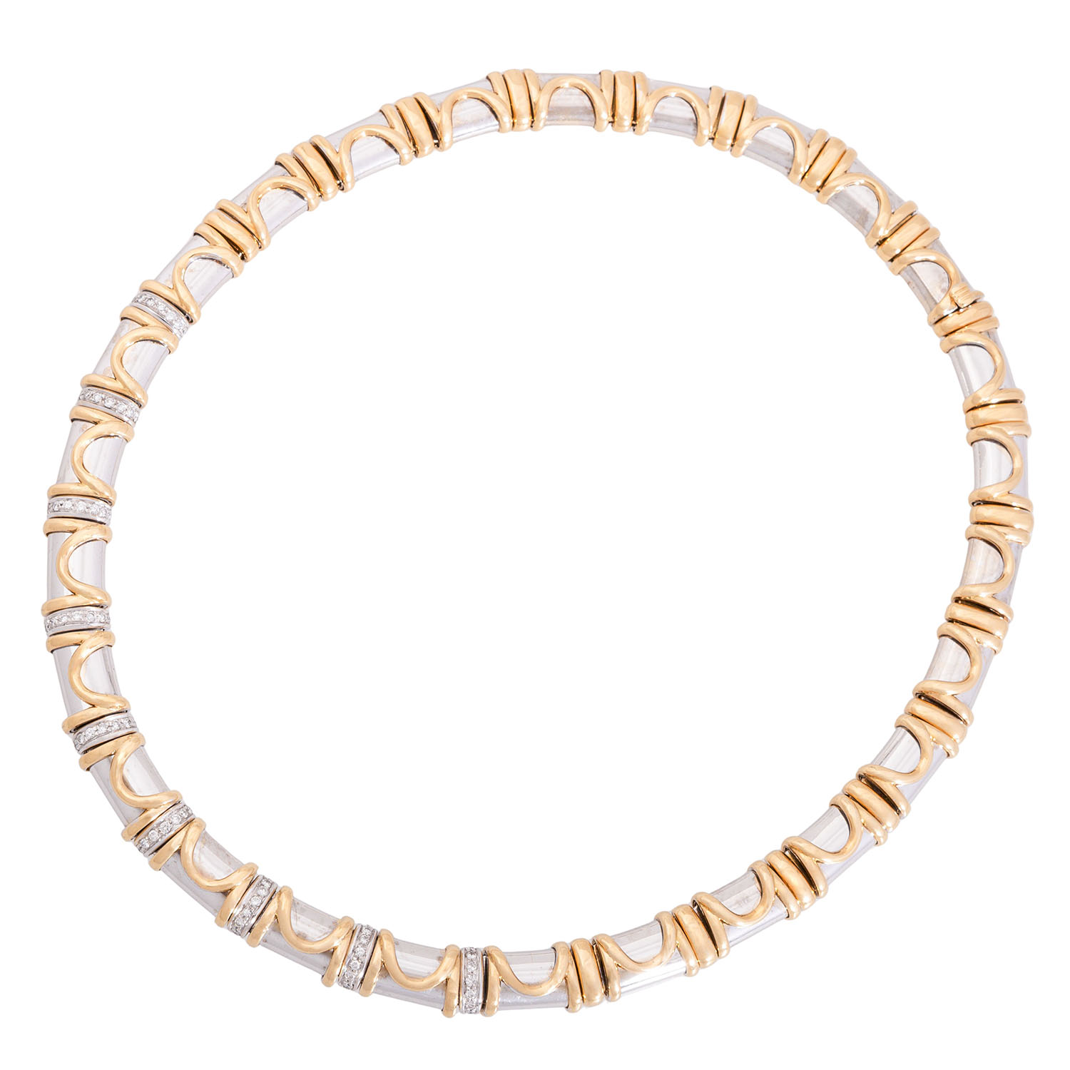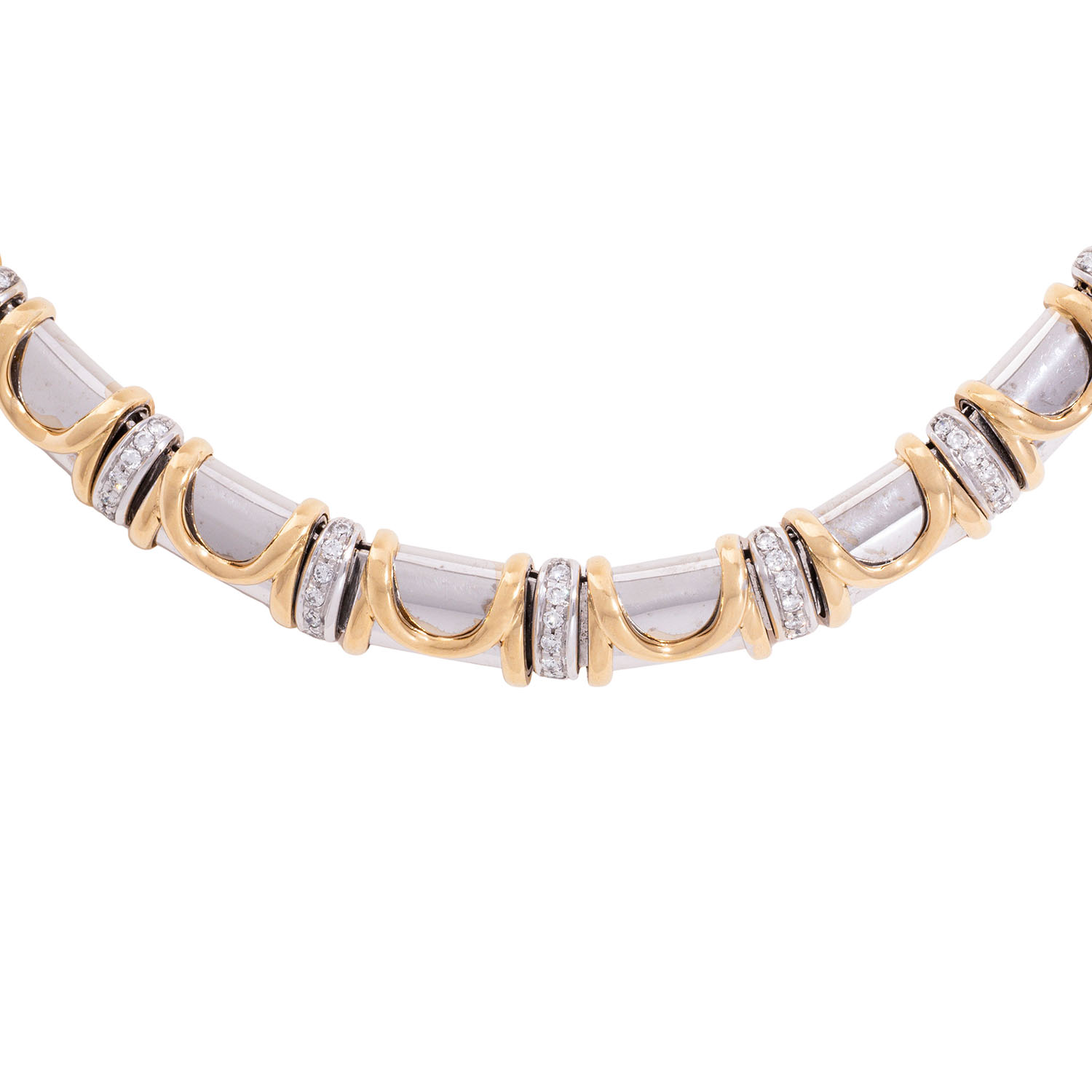 Necklace with 63 brilliant-cut diamonds totalling approx. 0.76 ct, RW (G)/VS, 18K white gold/yellow gold, 98.9 g, L: approx. 40 cm, W: approx. 9.7 mm, 20th/21st century, minor signs of wear, with hallmark 'H'.