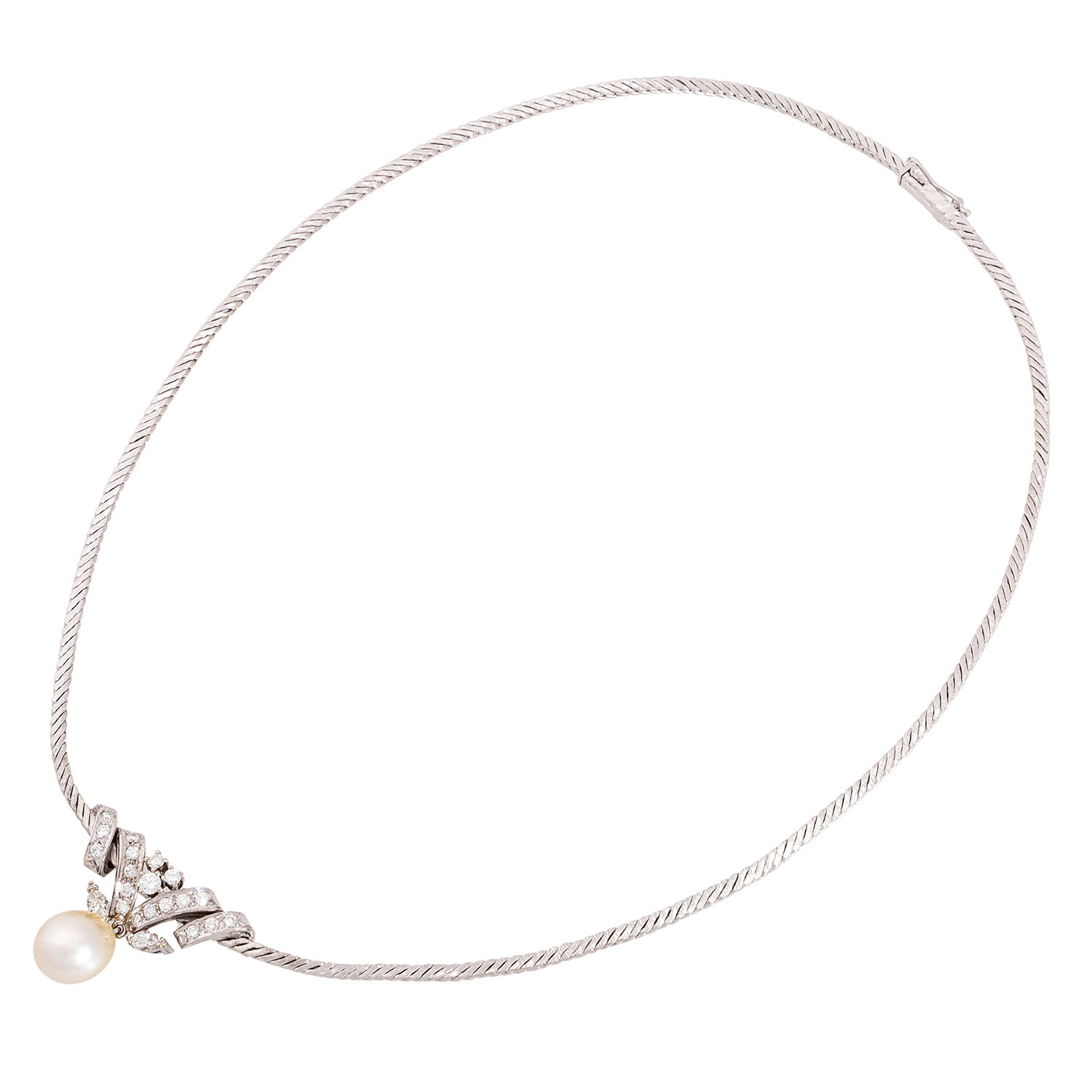 Necklace with a pearl drop and diamonds totaling approx. 1.2 ct,