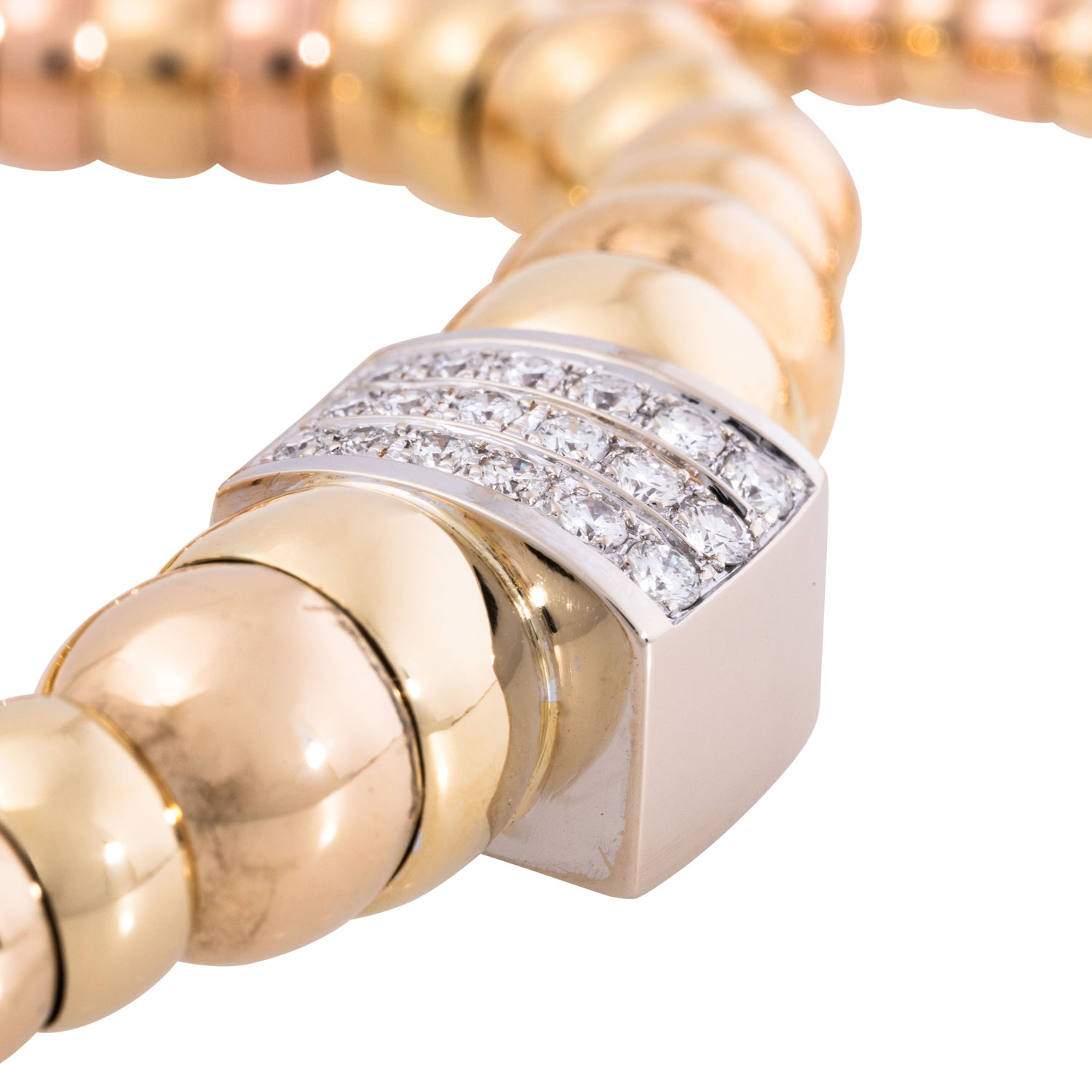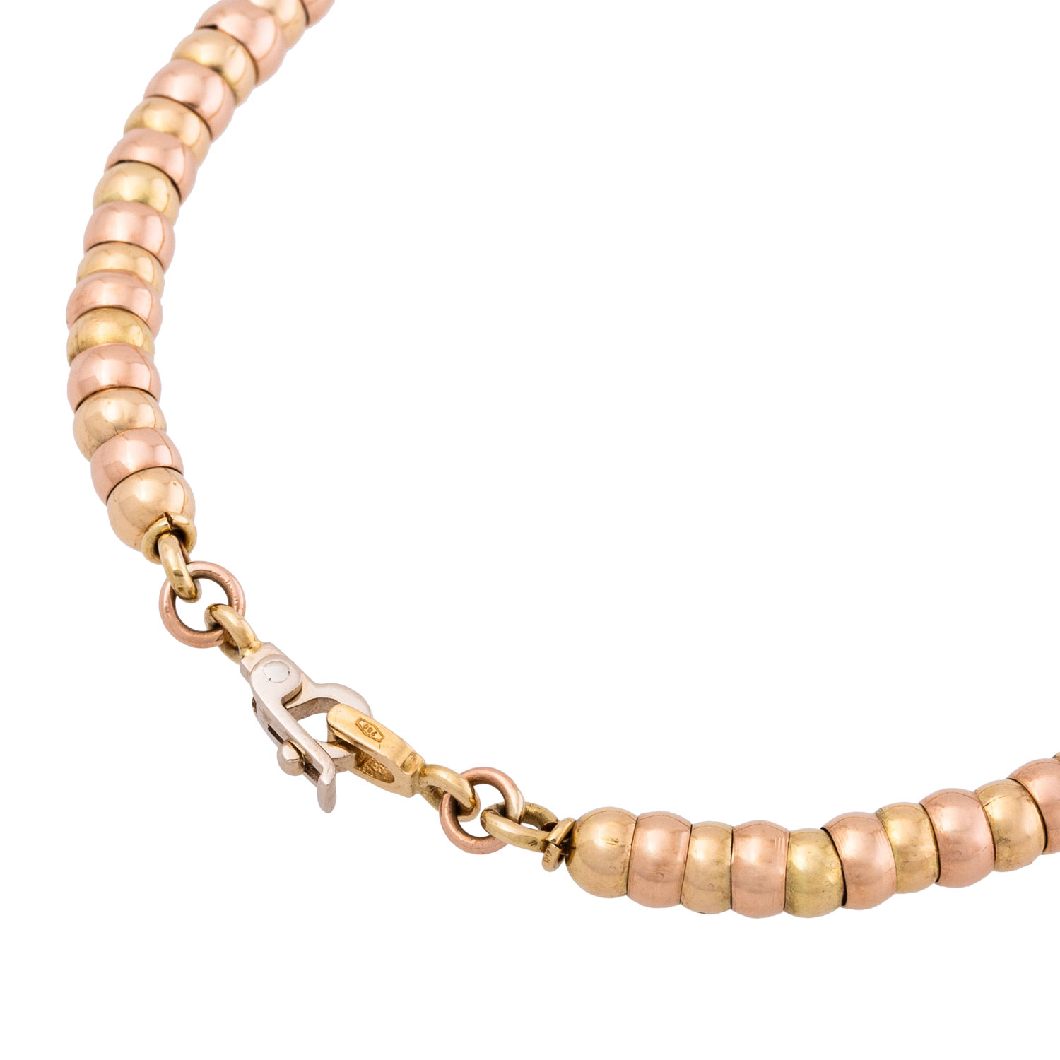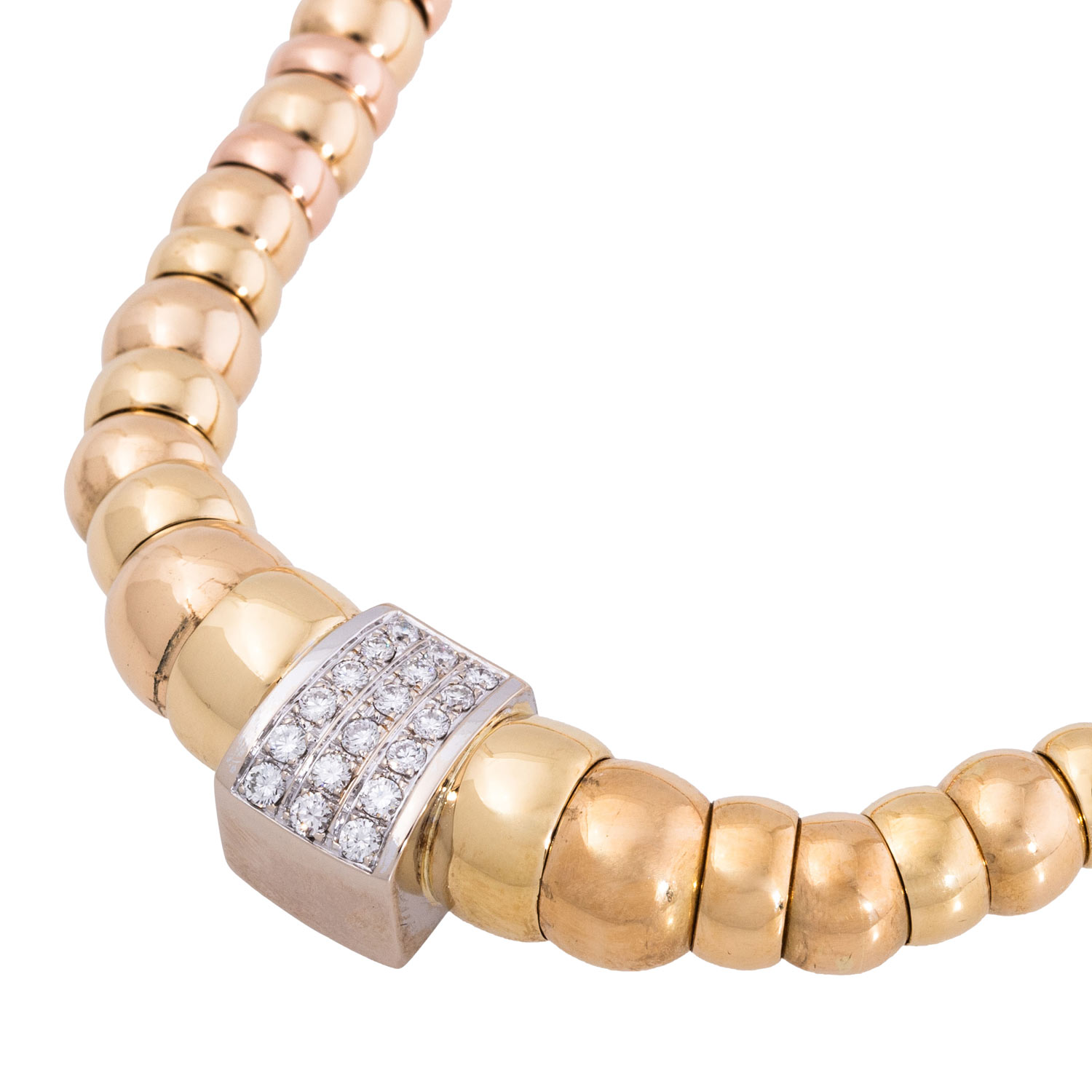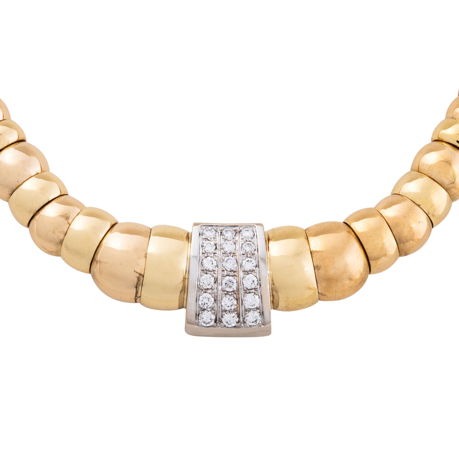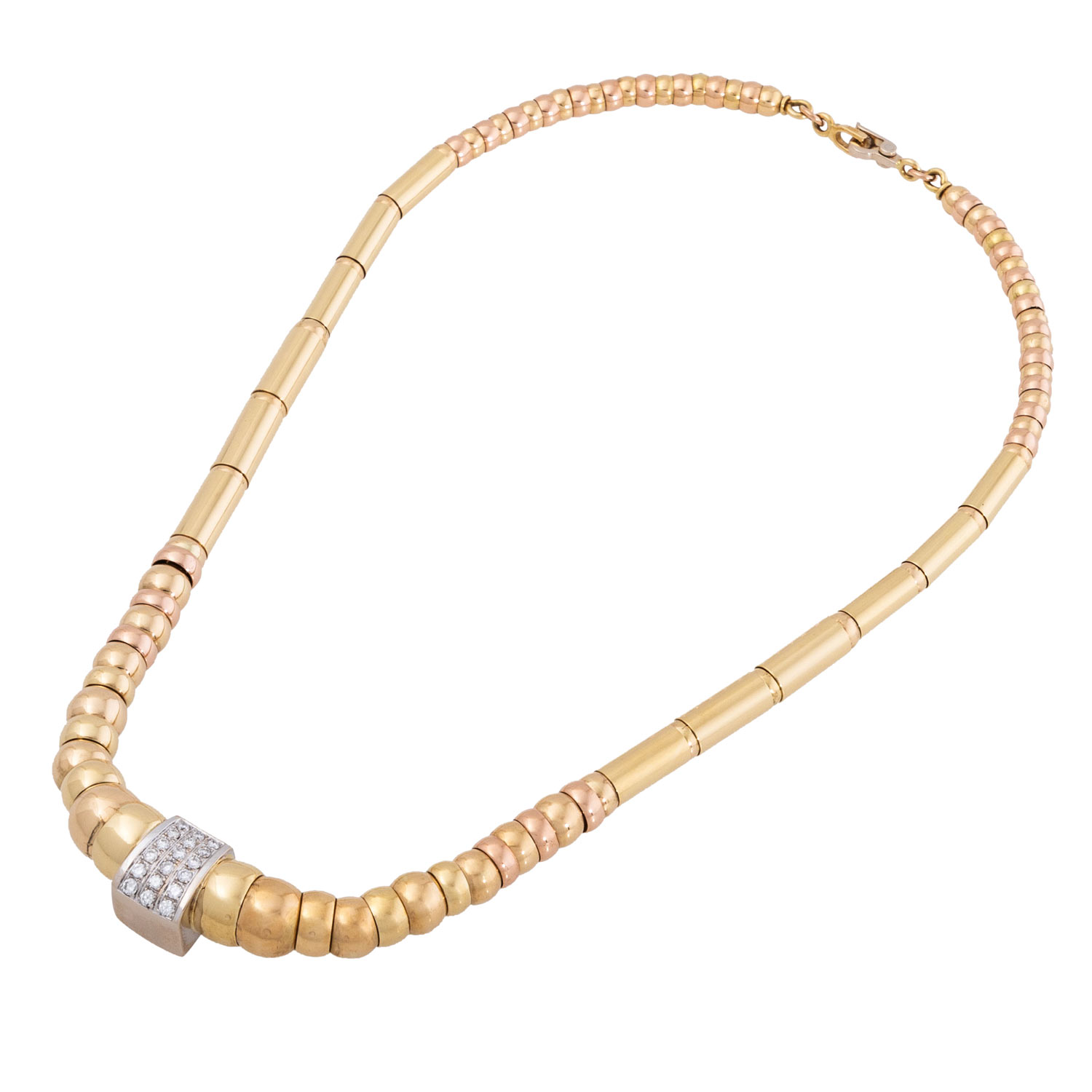 Casual necklace with alternating round and elongated links, centered with 18 brilliant-cut diamonds totalling ca. 0,38 ct, RW (G)/VS-SI, YG/WG, 47.4 g. 21st century, very good condition. Handcrafted.