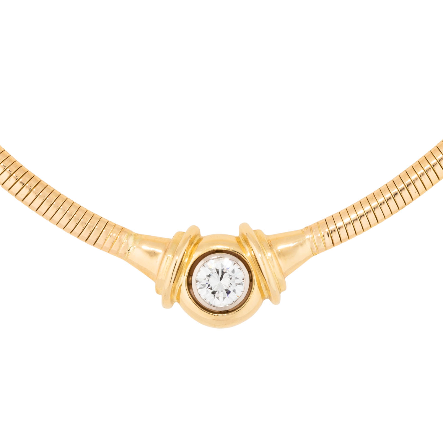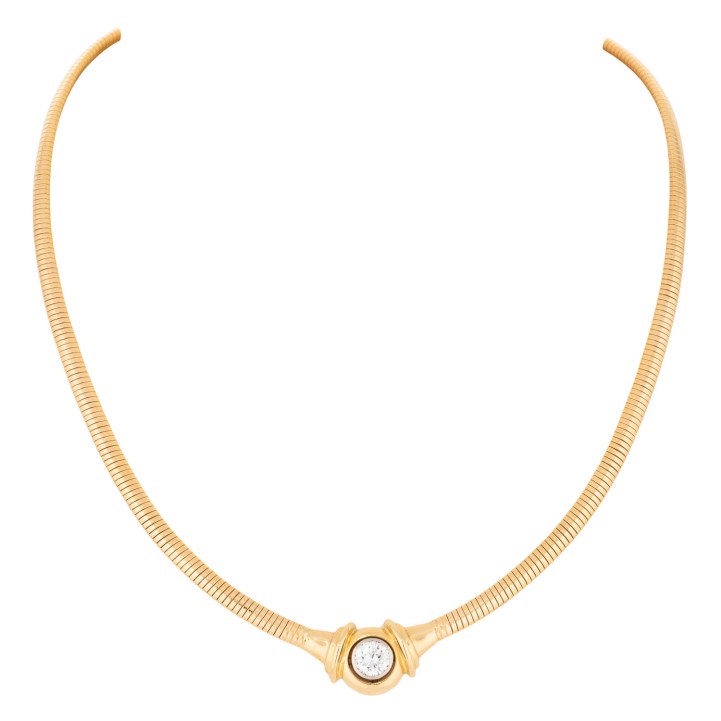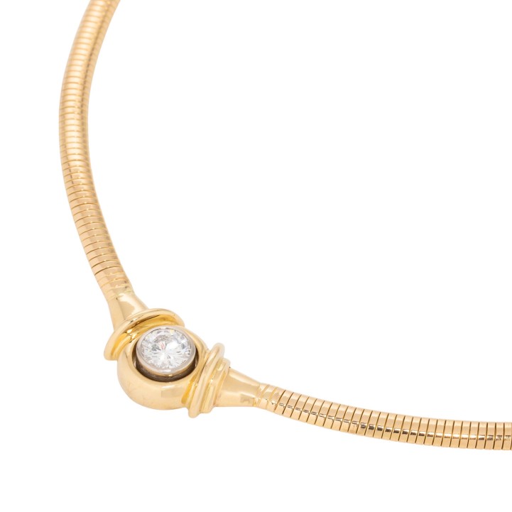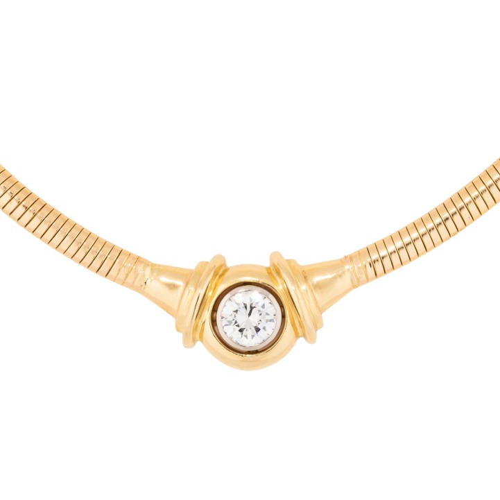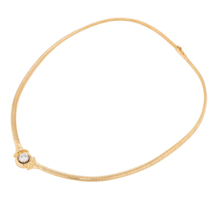 Necklace with brilliant-cut diamond ca. 1.04 ct, ca. RW (F-G)/I1, 18K YG, 34.7 g, necklace L. ca. 42 cm, around 2000, minor signs of wear, incl. insurance appraisal of 12,400 €.