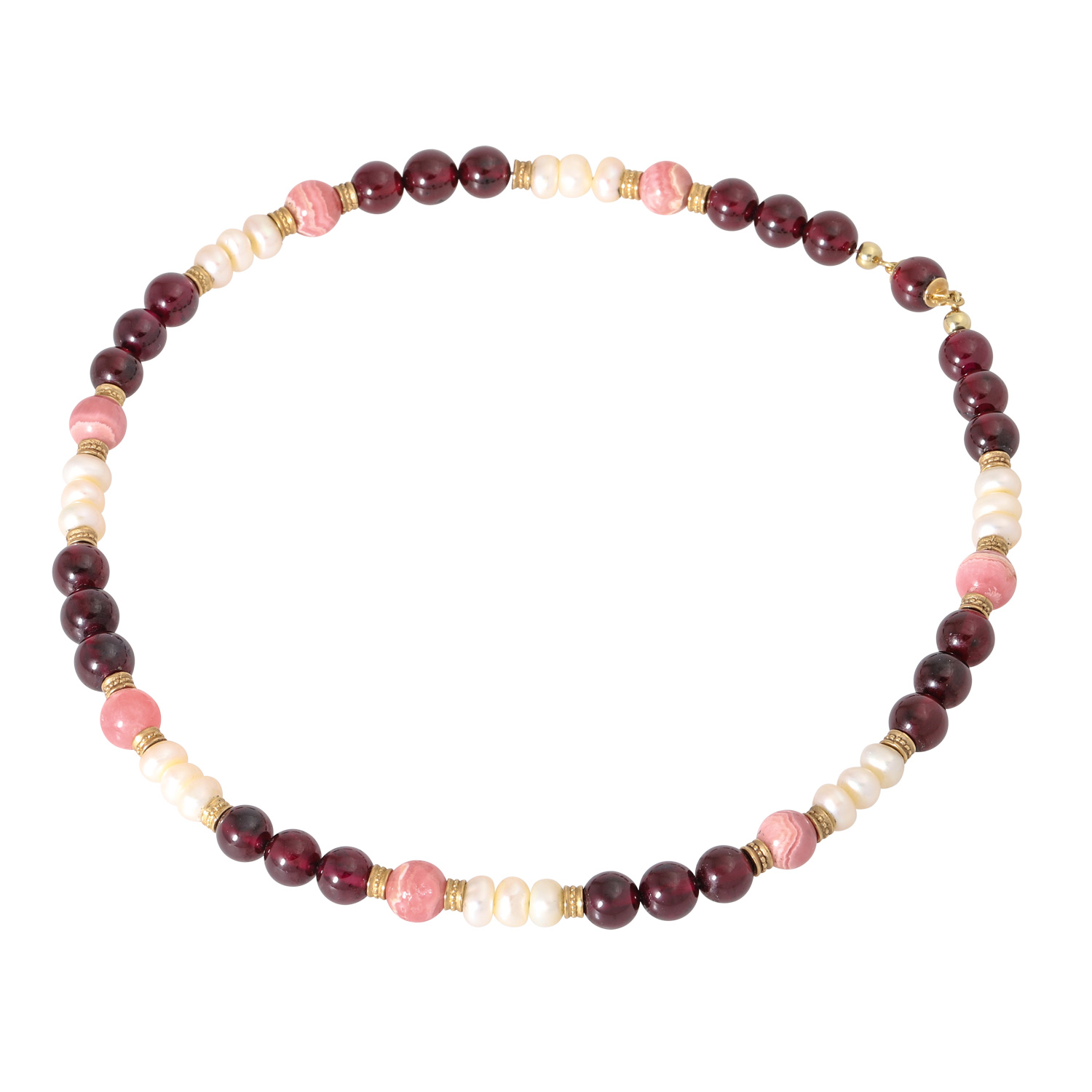 Necklace with pearls, garnets and rhodochrosite,