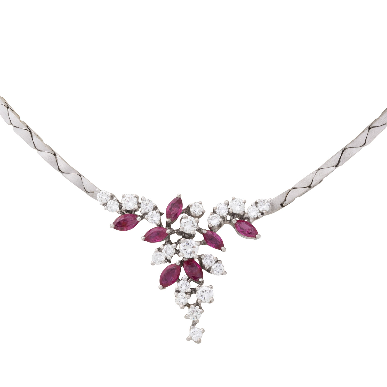 Necklace with ruby navettes and 22 brilliant-cut diamonds,